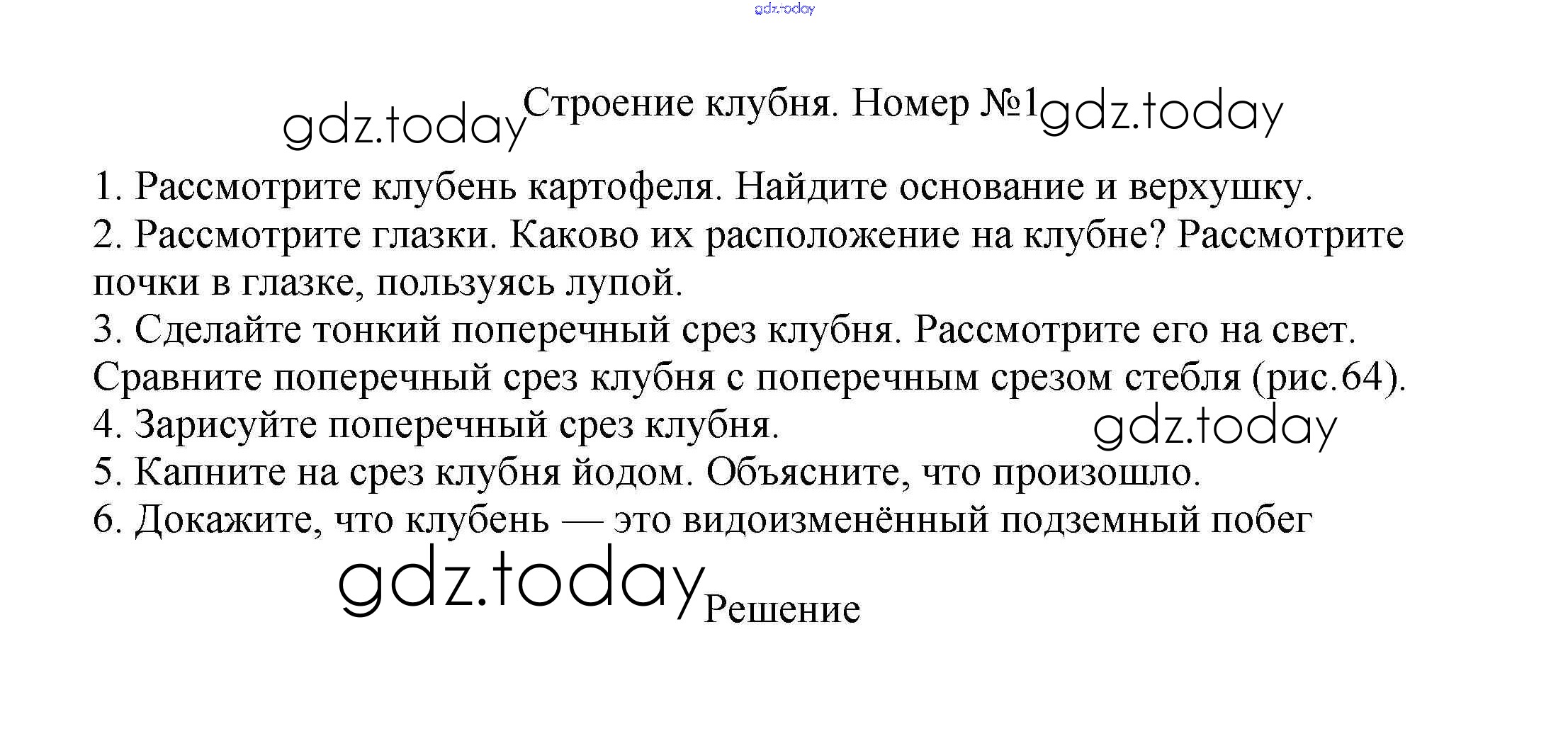 На страницах сайта gdz.today вы найдете учебный и вспомогательный материал, направленный на улучшения знаний школьной программы. ГДЗ - онлайн мир знаний Строение клубня Решение к §16 1 Учебнику по Биологии для 6 класса Пасечник Линейный курс Дрофа 2020