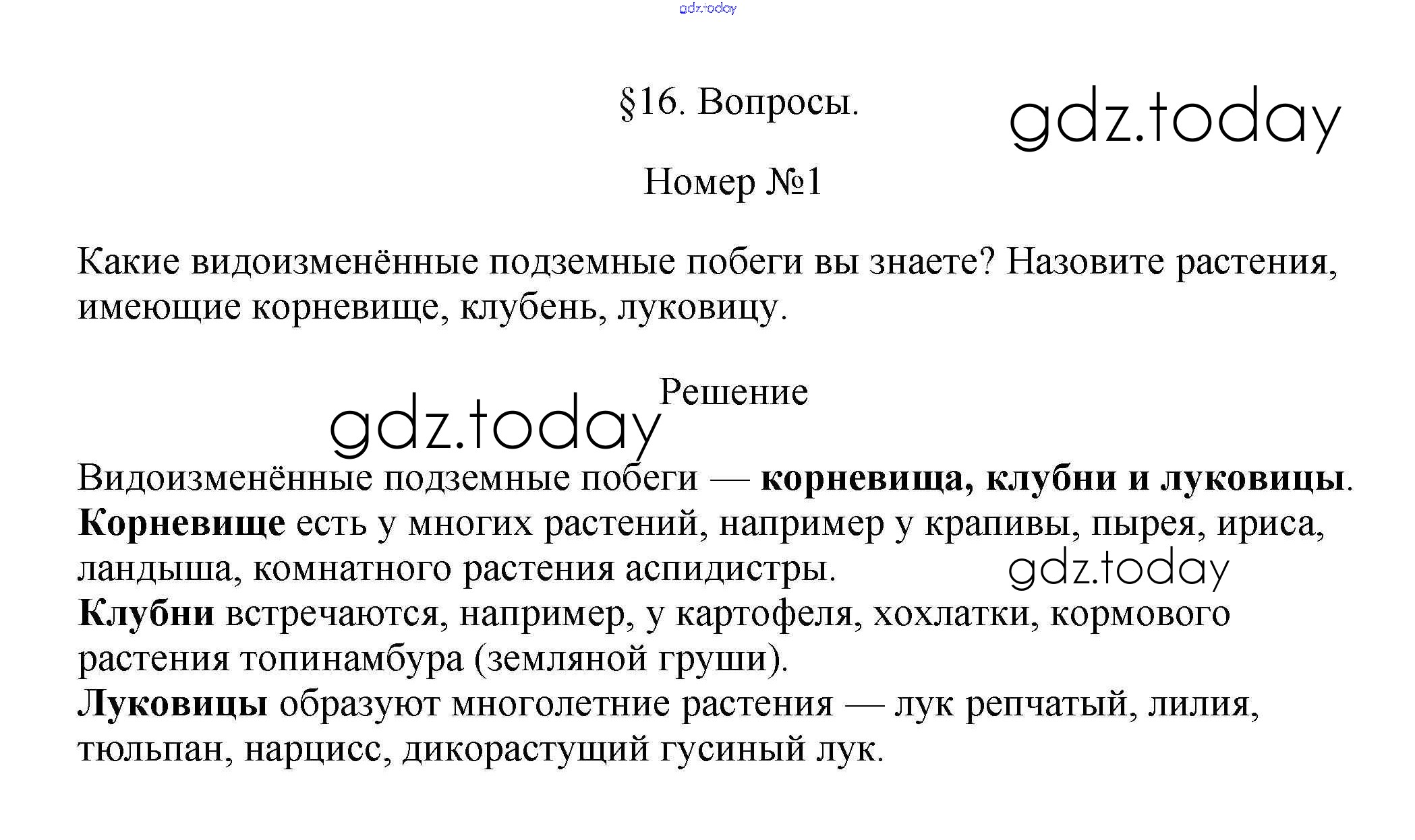 На страницах сайта gdz.today вы найдете учебный и вспомогательный материал, направленный на улучшения знаний школьной программы. ГДЗ - онлайн мир знаний Вопросы Решение к §16 1 Учебнику по Биологии для 6 класса Пасечник Линейный курс Дрофа 2020