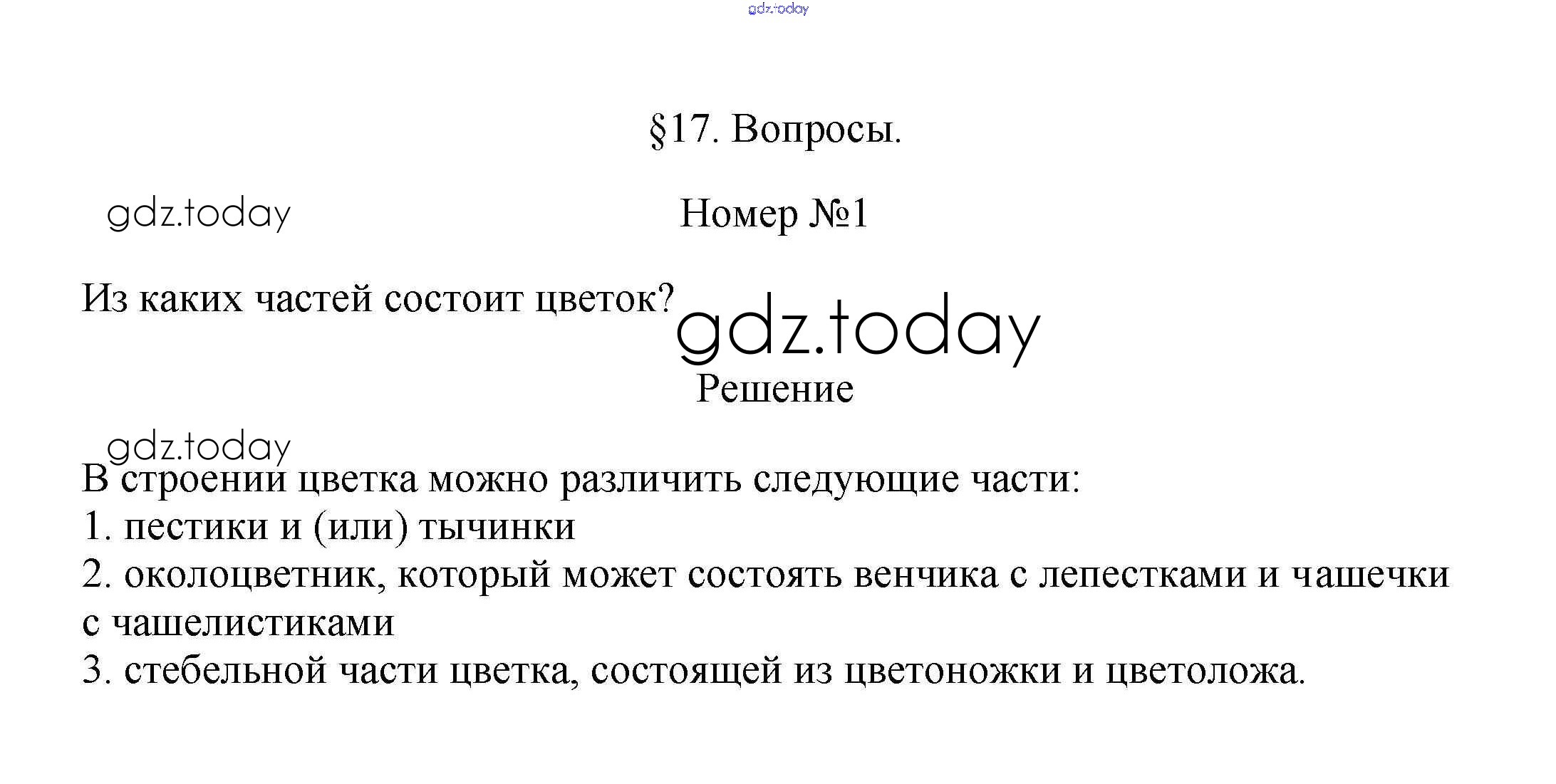На страницах сайта gdz.today вы найдете учебный и вспомогательный материал, направленный на улучшения знаний школьной программы. ГДЗ - онлайн мир знаний Вопросы Решение к §17 1 Учебнику по Биологии для 6 класса Пасечник Линейный курс Дрофа 2020