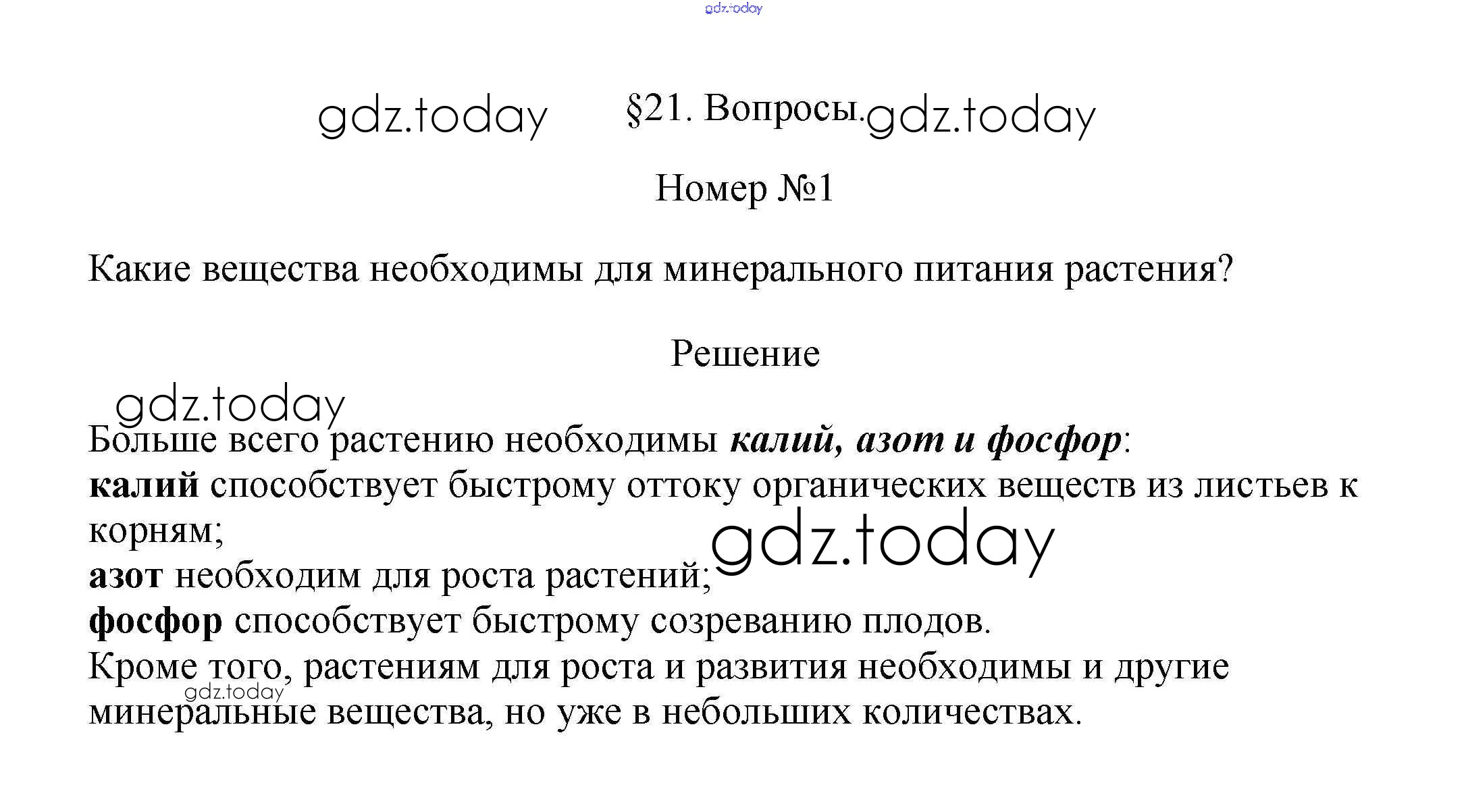 На страницах сайта gdz.today вы найдете учебный и вспомогательный материал, направленный на улучшения знаний школьной программы. ГДЗ - онлайн мир знаний Вопросы Решение к §21 1 Учебнику по Биологии для 6 класса Пасечник Линейный курс Дрофа 2020