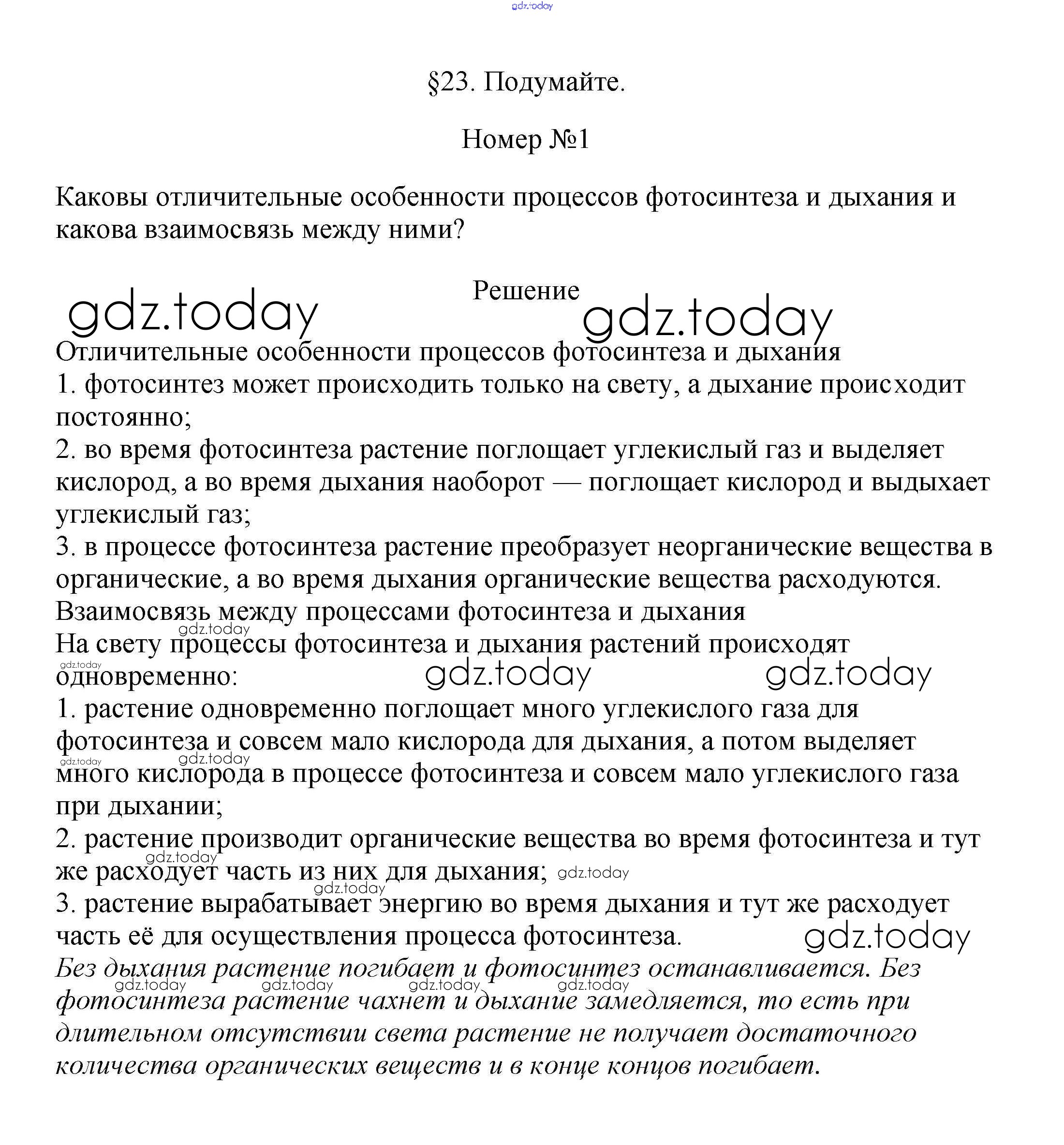 На страницах сайта gdz.today вы найдете учебный и вспомогательный материал, направленный на улучшения знаний школьной программы. ГДЗ - онлайн мир знаний Подумайте Решение к §23 1 Учебнику по Биологии для 6 класса Пасечник Линейный курс Дрофа 2020