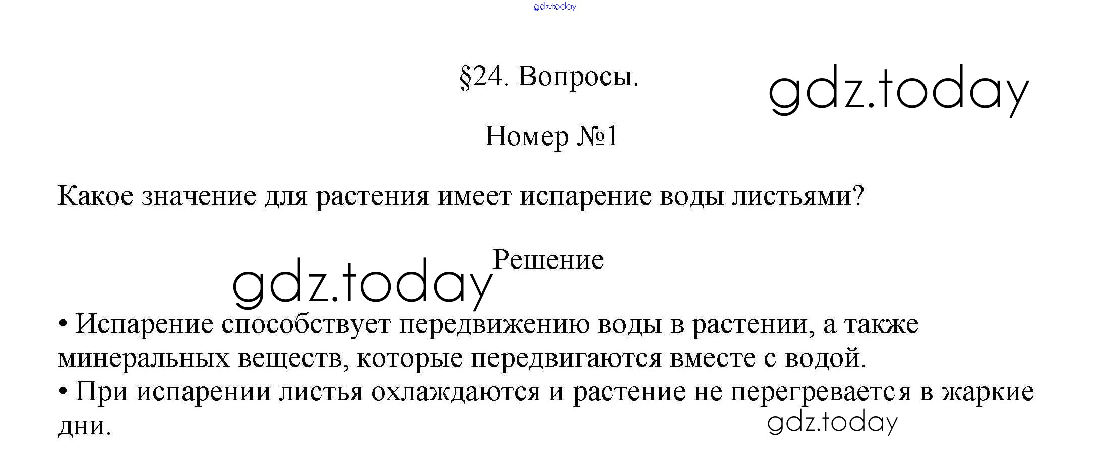 На страницах сайта gdz.today вы найдете учебный и вспомогательный материал, направленный на улучшения знаний школьной программы. ГДЗ - онлайн мир знаний Вопросы Решение к §24 1 Учебнику по Биологии для 6 класса Пасечник Линейный курс Дрофа 2020
