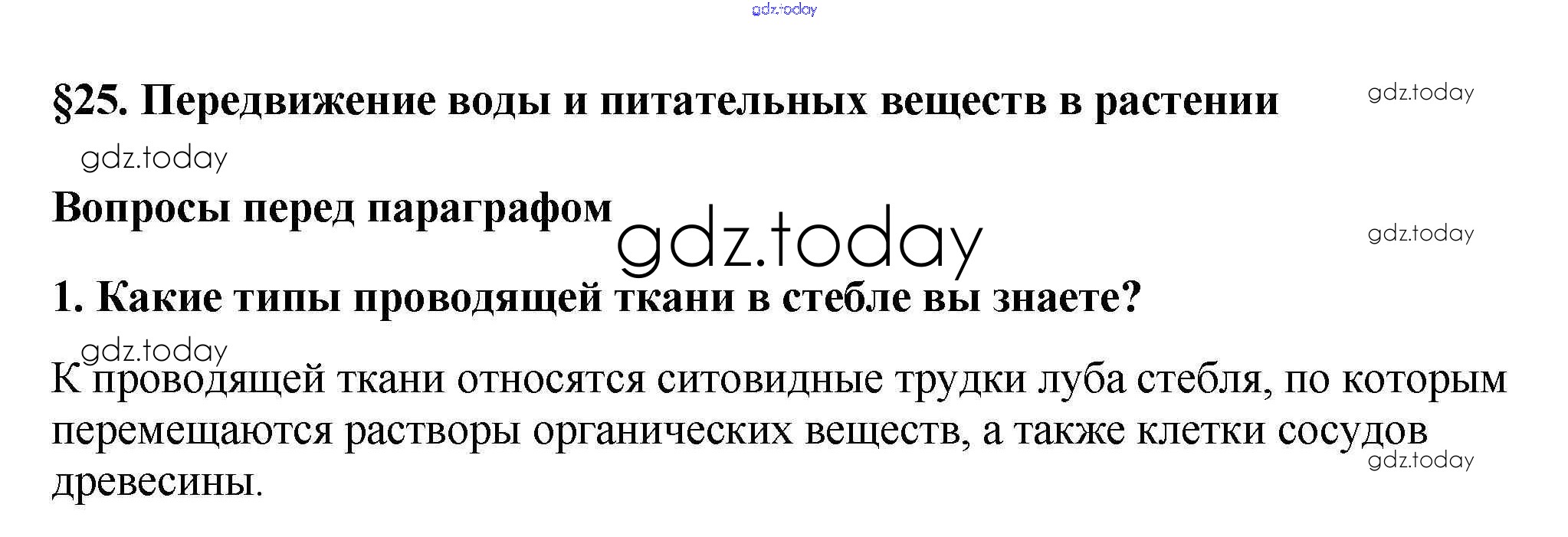 На страницах сайта gdz.today вы найдете учебный и вспомогательный материал, направленный на улучшения знаний школьной программы. ГДЗ - онлайн мир знаний Вопросы перед параграфом Решение к §25 1 Учебнику по Биологии для 6 класса Пасечник Линейный курс Дрофа 2020