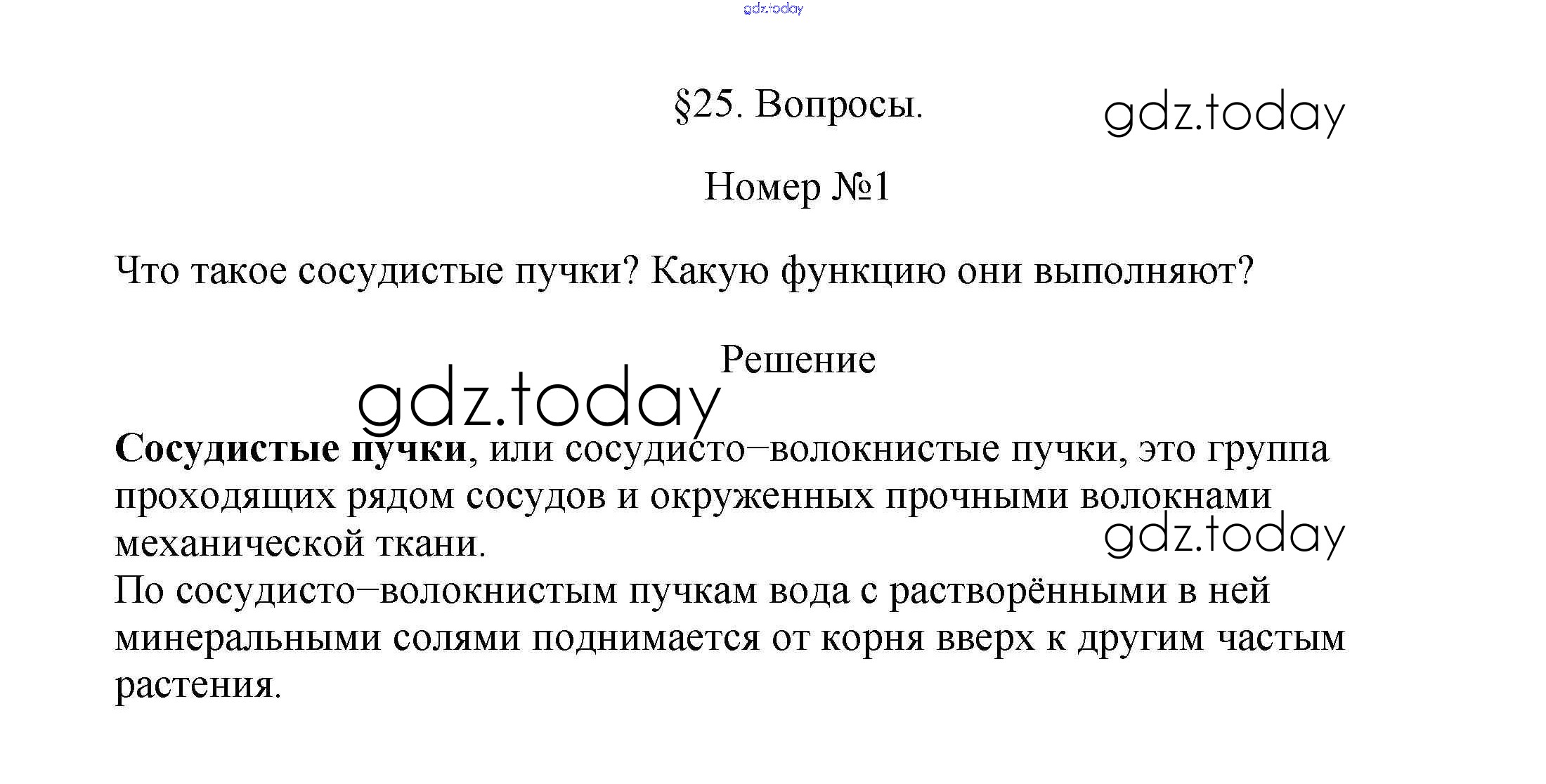 На страницах сайта gdz.today вы найдете учебный и вспомогательный материал, направленный на улучшения знаний школьной программы. ГДЗ - онлайн мир знаний Вопросы Решение к §25 1 Учебнику по Биологии для 6 класса Пасечник Линейный курс Дрофа 2020