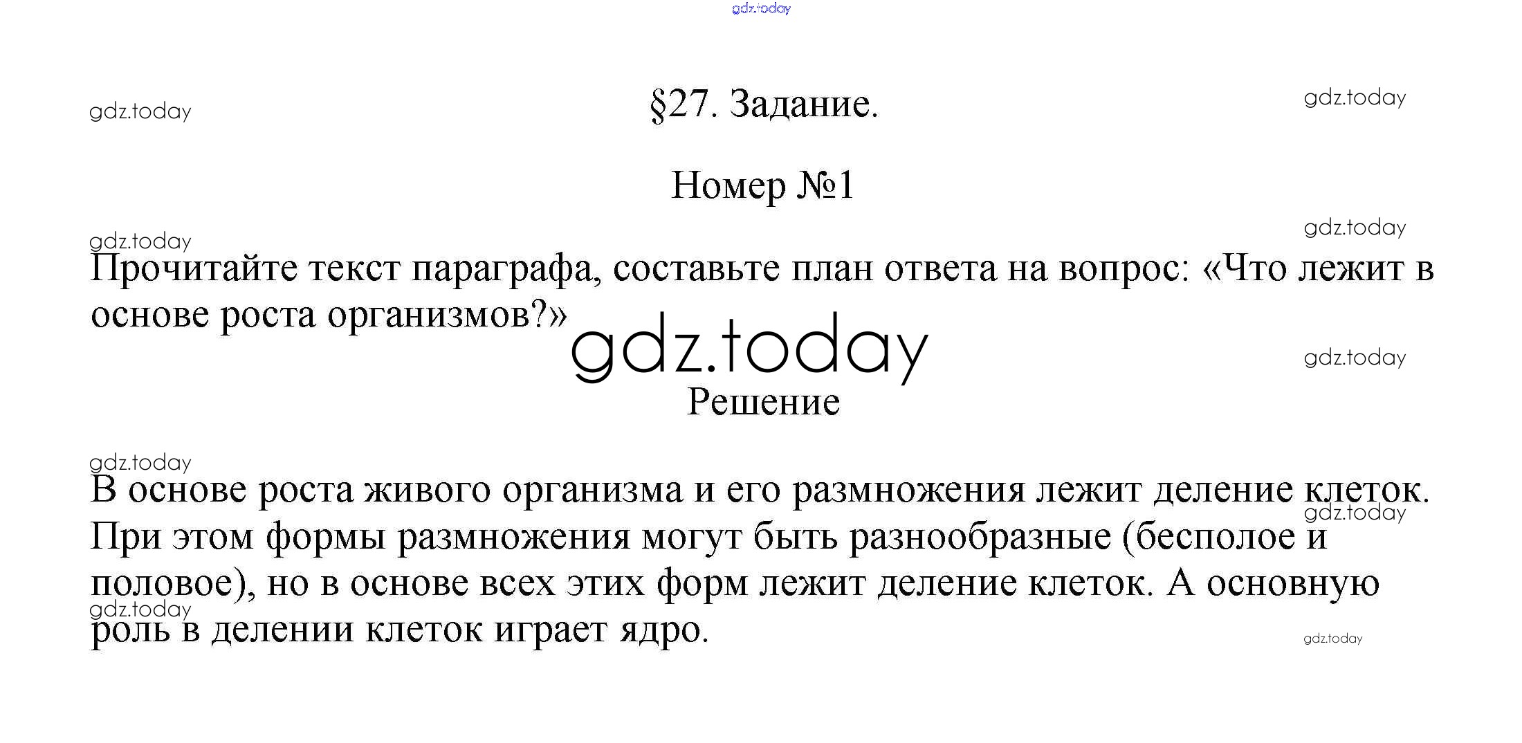 На страницах сайта gdz.today вы найдете учебный и вспомогательный материал, направленный на улучшения знаний школьной программы. ГДЗ - онлайн мир знаний Задание Решение к §27 1 Учебнику по Биологии для 6 класса Пасечник Линейный курс Дрофа 2020