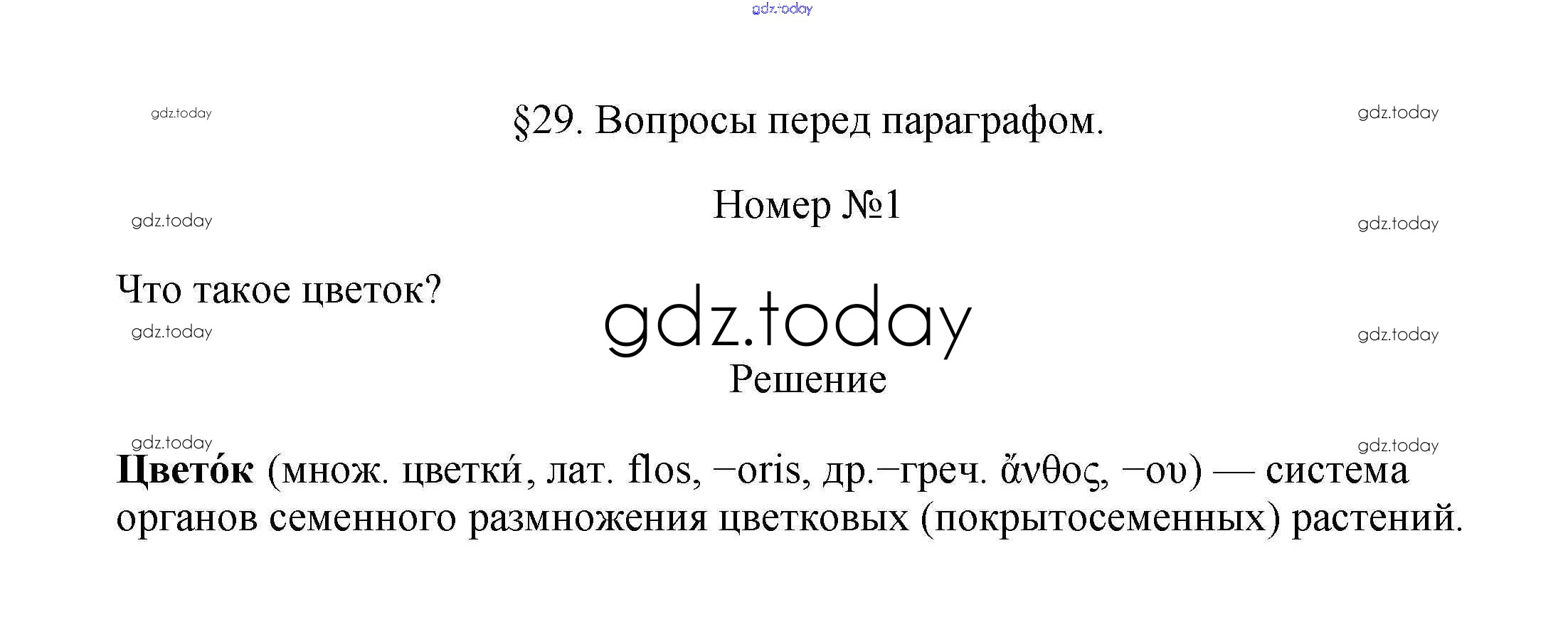На страницах сайта gdz.today вы найдете учебный и вспомогательный материал, направленный на улучшения знаний школьной программы. ГДЗ - онлайн мир знаний Вопросы перед параграфом Решение к §29 1 Учебнику по Биологии для 6 класса Пасечник Линейный курс Дрофа 2020