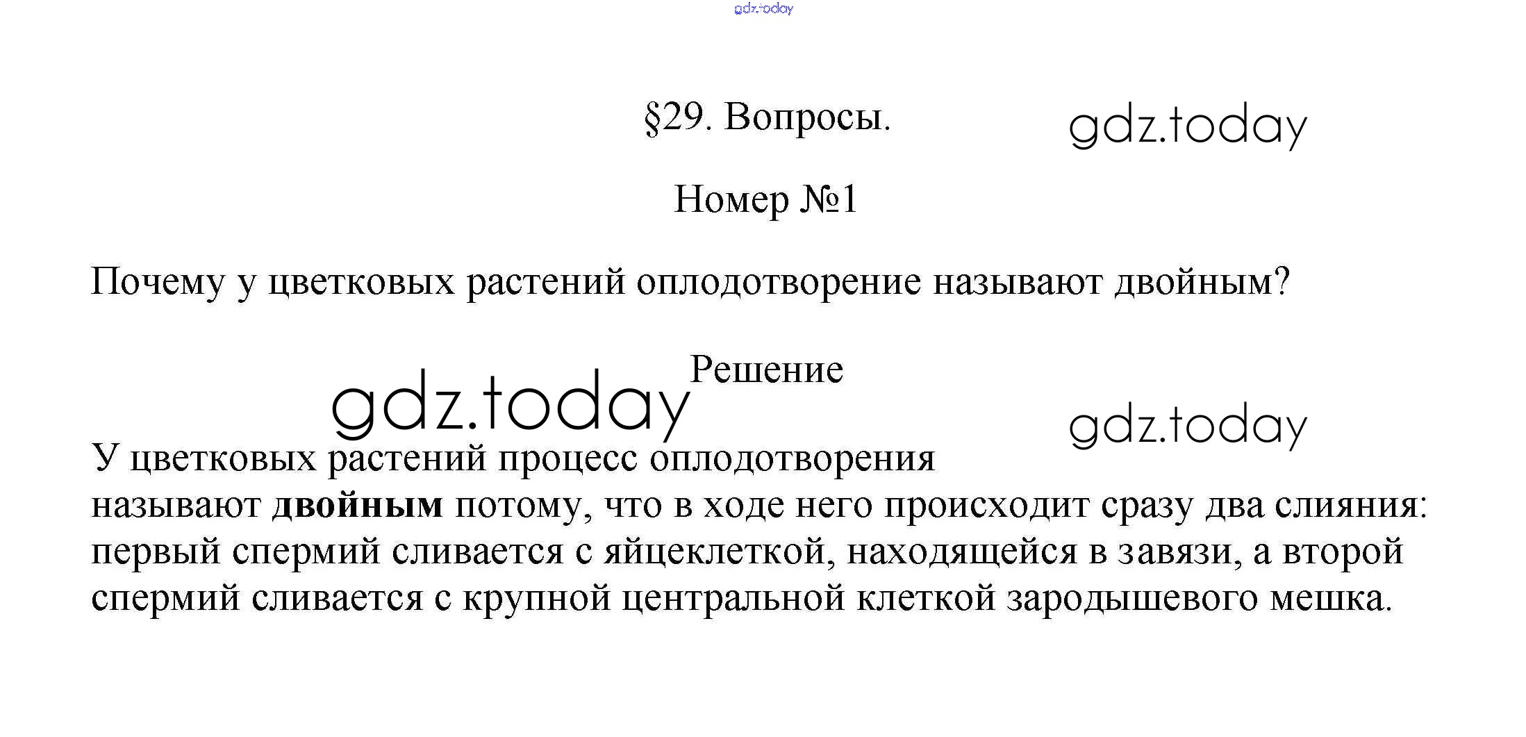 На страницах сайта gdz.today вы найдете учебный и вспомогательный материал, направленный на улучшения знаний школьной программы. ГДЗ - онлайн мир знаний Вопросы Решение к §29 1 Учебнику по Биологии для 6 класса Пасечник Линейный курс Дрофа 2020