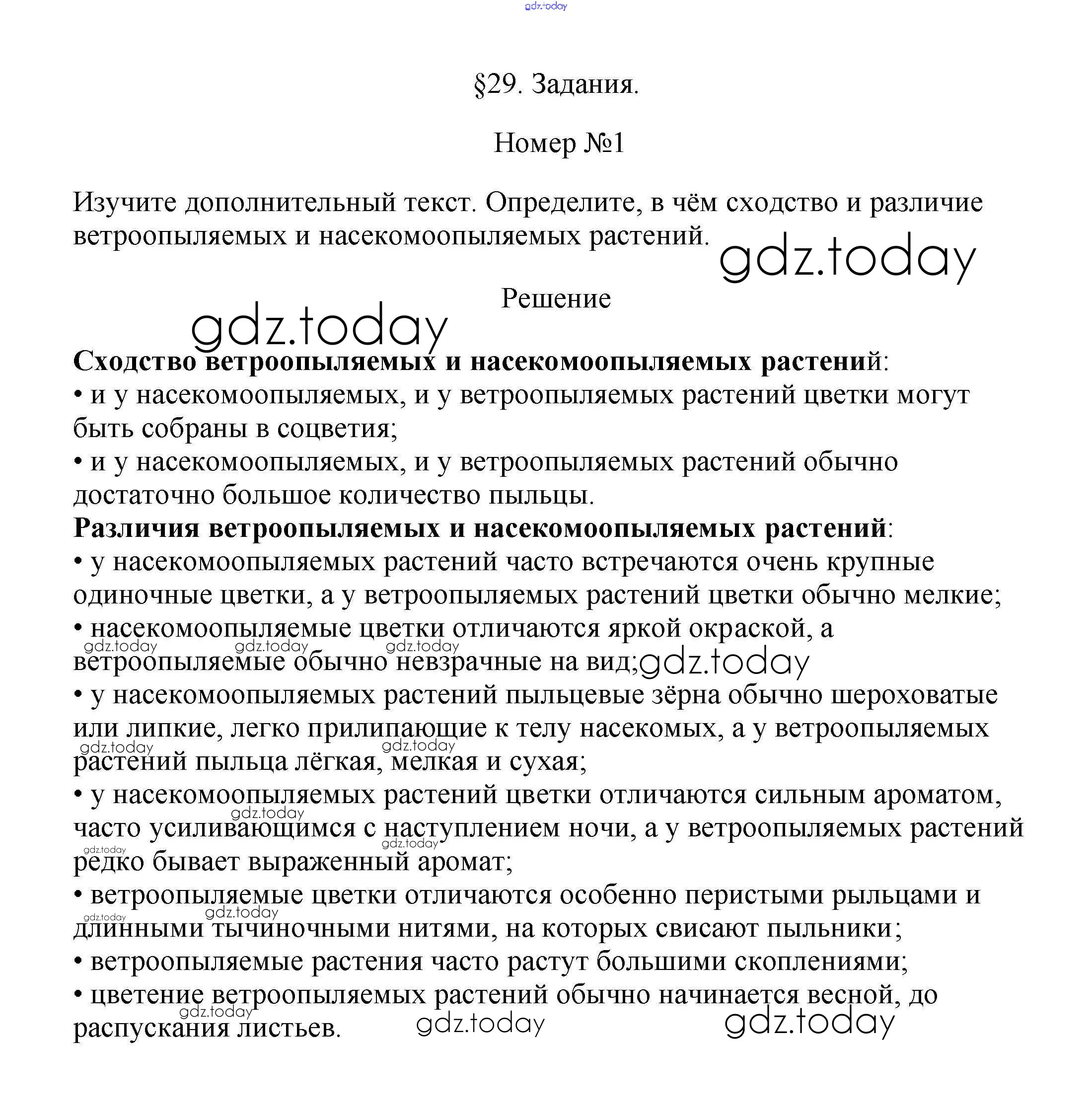 Ответы к Задания Решение к §29 1 Учебнику по Биологии для 6 класса Пасечник Линейный курс Дрофа 2020