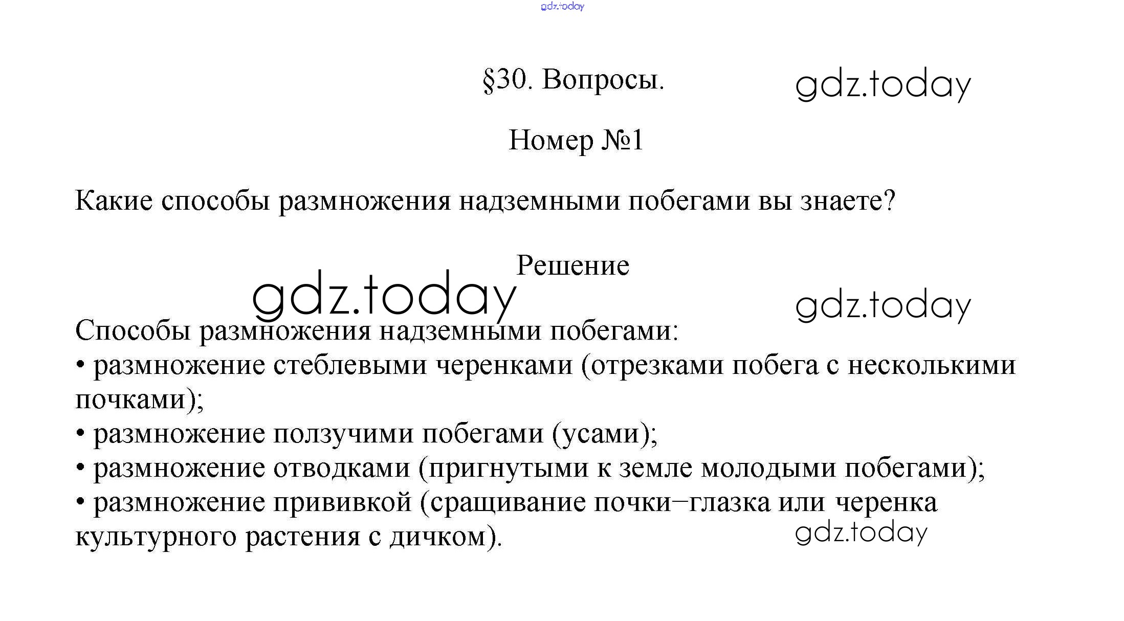 На страницах сайта gdz.today вы найдете учебный и вспомогательный материал, направленный на улучшения знаний школьной программы. ГДЗ - онлайн мир знаний Вопросы Решение к §30 1 Учебнику по Биологии для 6 класса Пасечник Линейный курс Дрофа 2020
