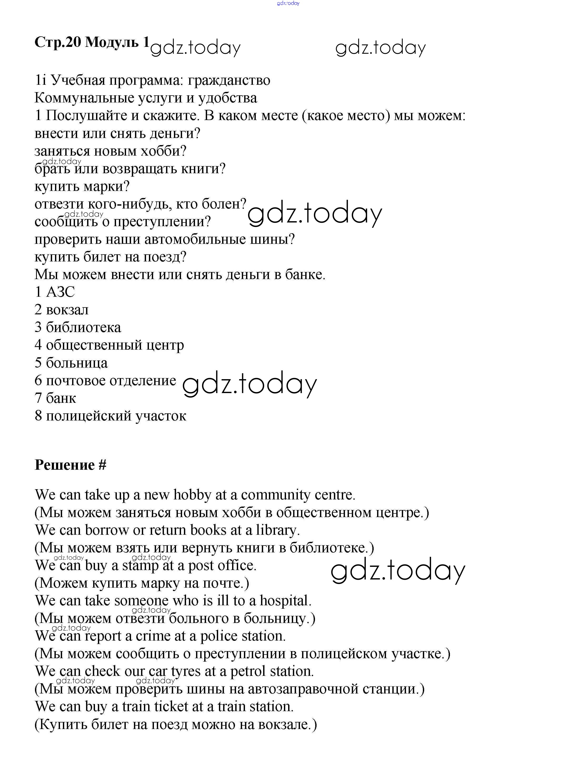 Ответы к Решение к Module 1. Home and away стр.20 Учебнику по Английскому языку для 6 класса Баранова, Дули Углубленный уровень Просвещение Starlight 2017