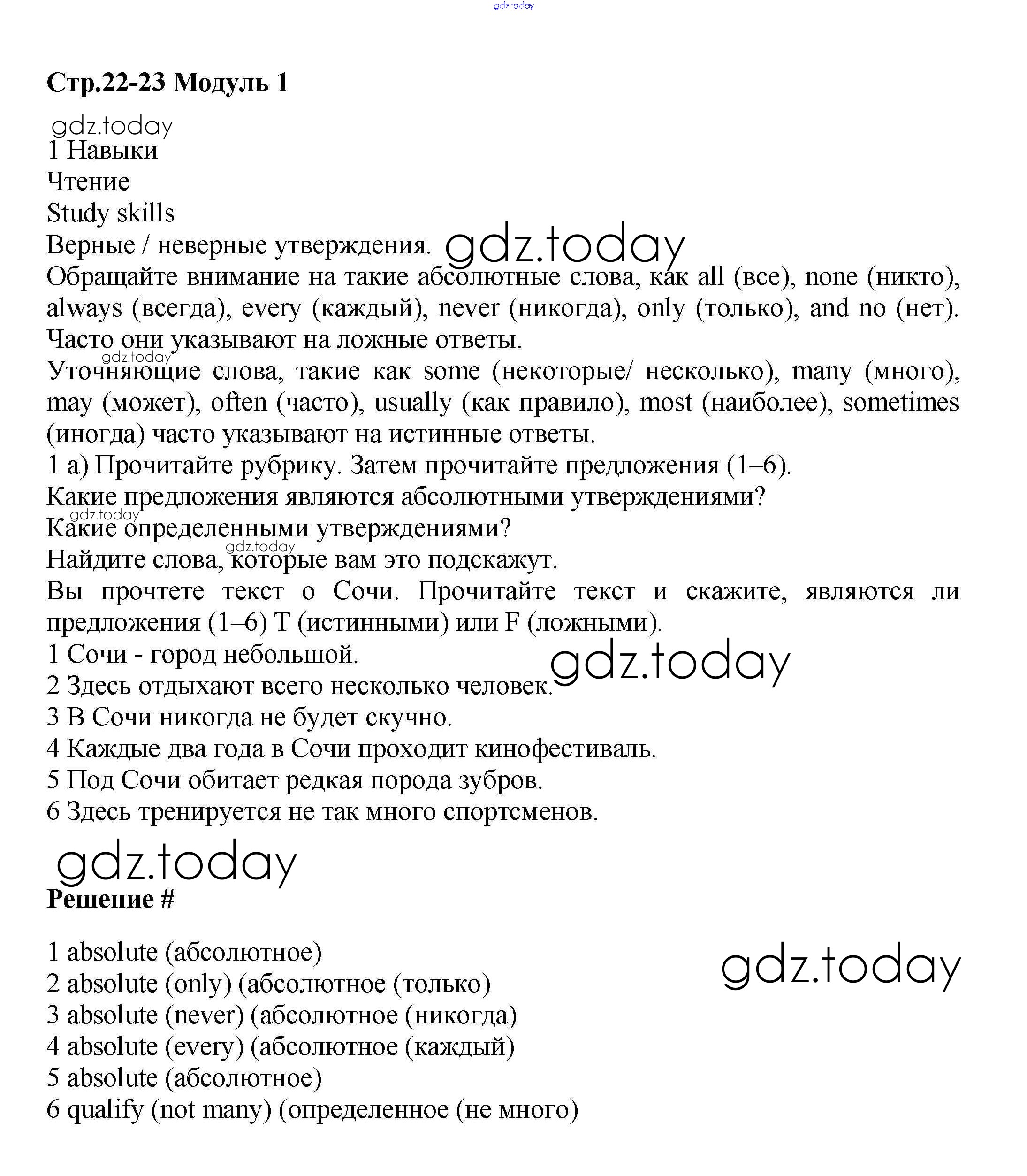 Ответы к Решение к Module 1. Home and away стр.22-23 Учебнику по Английскому языку для 6 класса Баранова, Дули Углубленный уровень Просвещение Starlight 2017