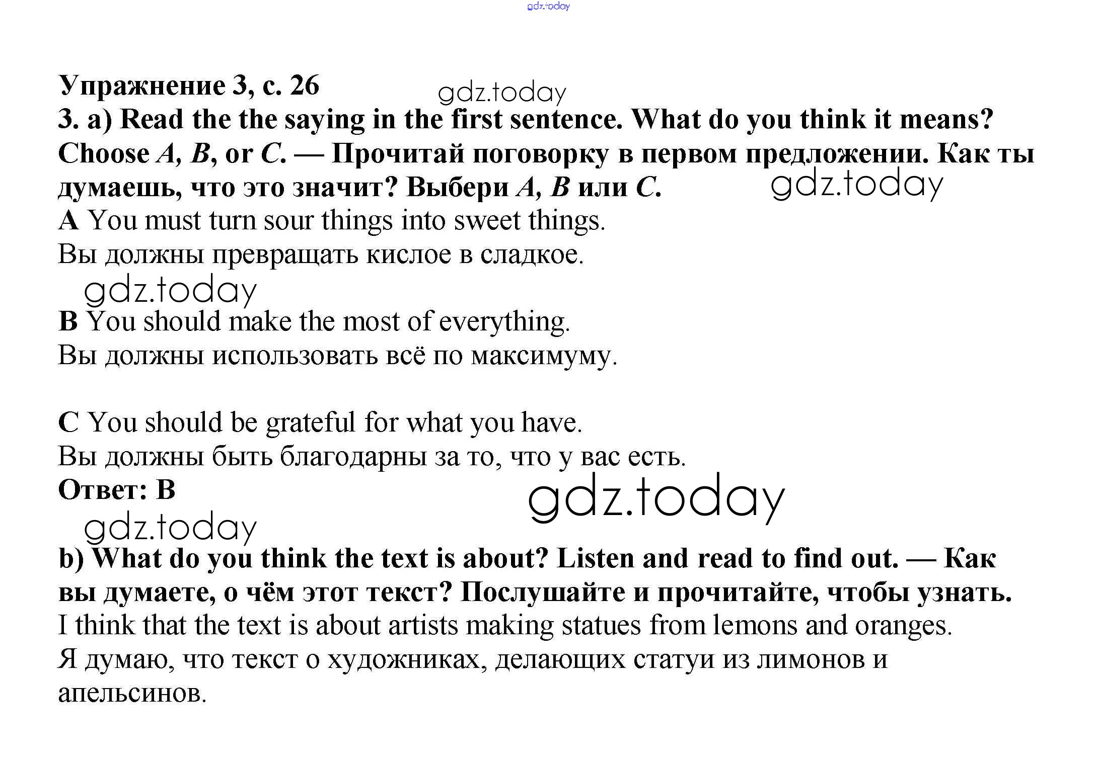 На страницах сайта gdz.today вы найдете учебный и вспомогательный материал, направленный на улучшения знаний школьной программы. ГДЗ - онлайн мир знаний Решение к Module 2. Food & Drinks стр.26-27 Учебнику по Английскому языку для 6 класса Баранова, Дули Углубленный уровень Просвещение Starlight 2017