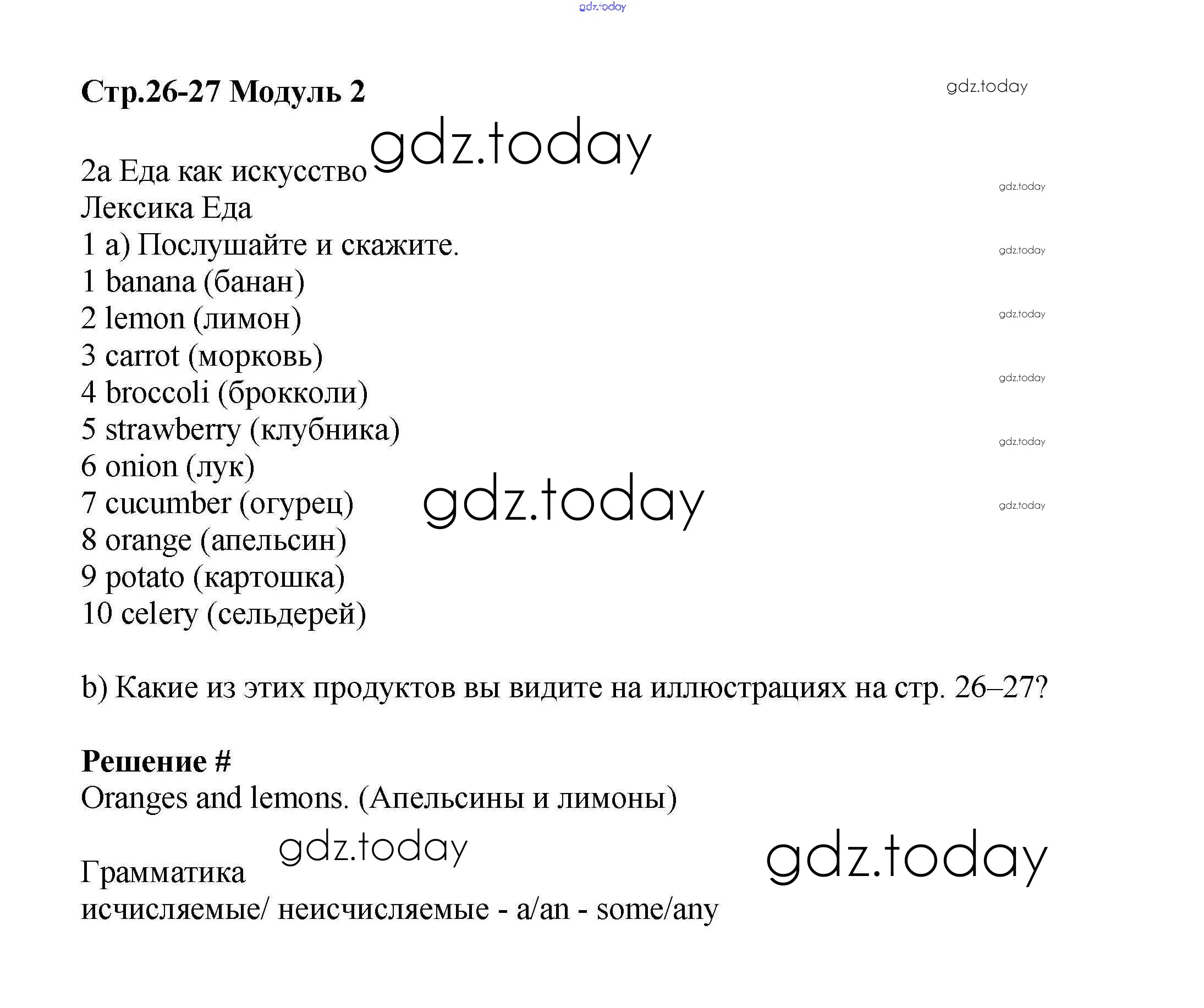 Ответы к Решение к Module 2. Food & Drinks стр.26-27 Учебнику по Английскому языку для 6 класса Баранова, Дули Углубленный уровень Просвещение Starlight 2017