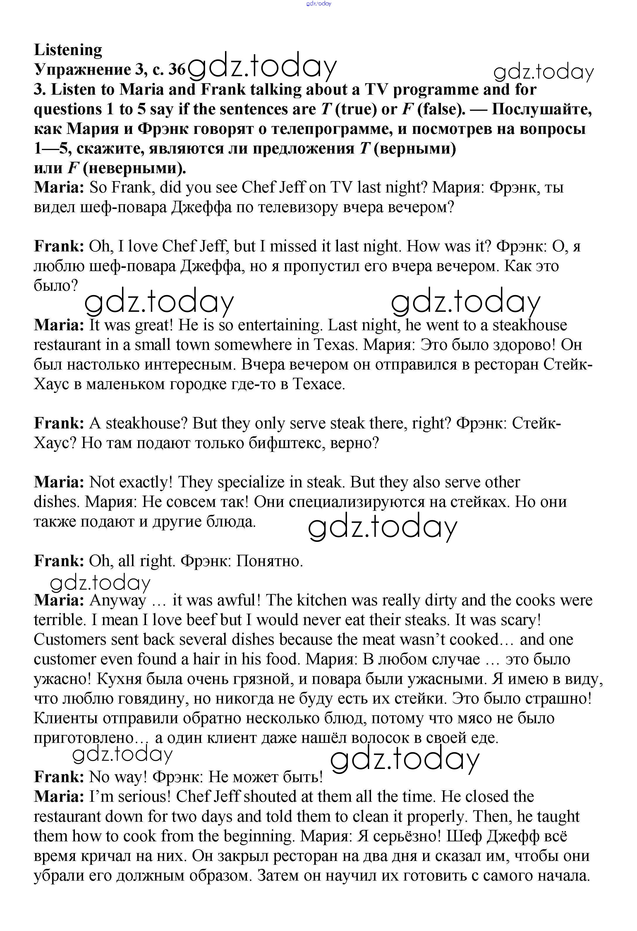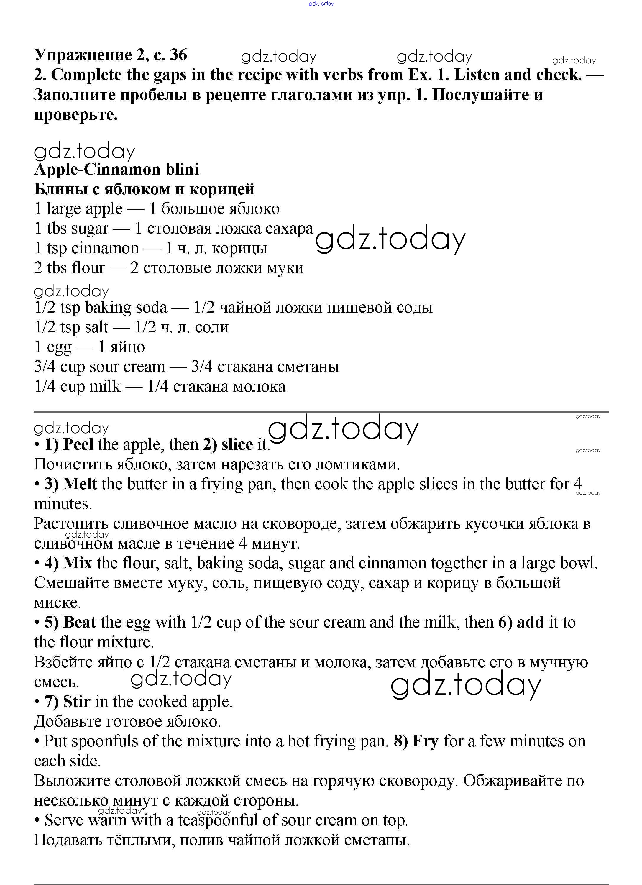 На страницах сайта gdz.today вы найдете учебный и вспомогательный материал, направленный на улучшения знаний школьной программы. ГДЗ - онлайн мир знаний Решение к Module 2. Food & Drinks стр.36 Учебнику по Английскому языку для 6 класса Баранова, Дули Углубленный уровень Просвещение Starlight 2017