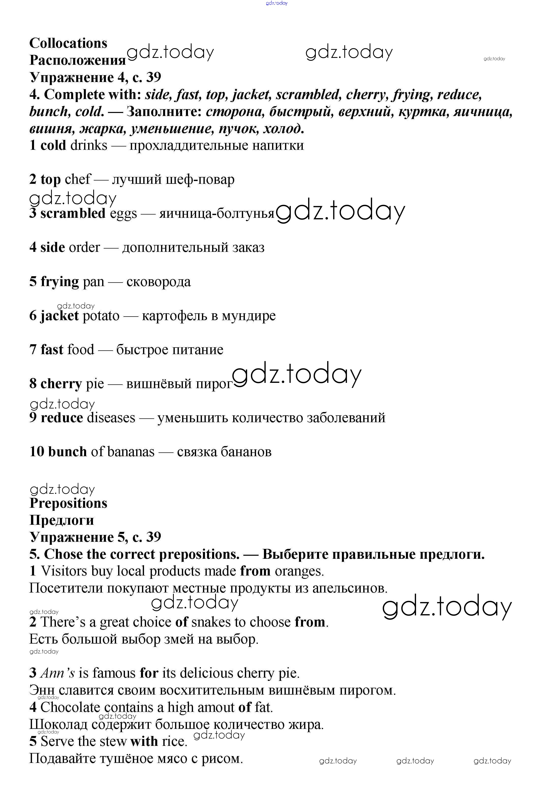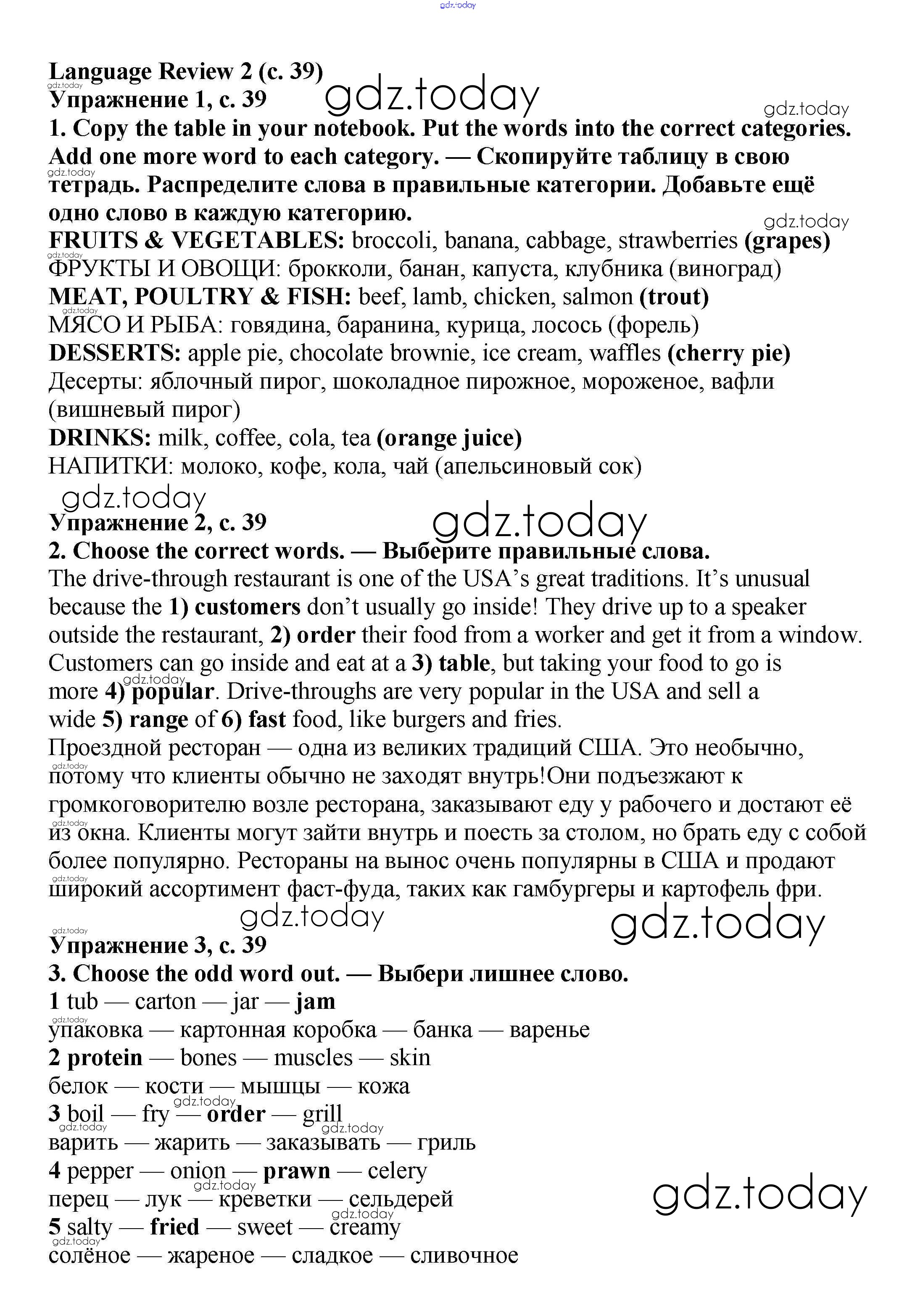 Ответы к Решение к Module 2. Food & Drinks стр.39 Учебнику по Английскому языку для 6 класса Баранова, Дули Углубленный уровень Просвещение Starlight 2017