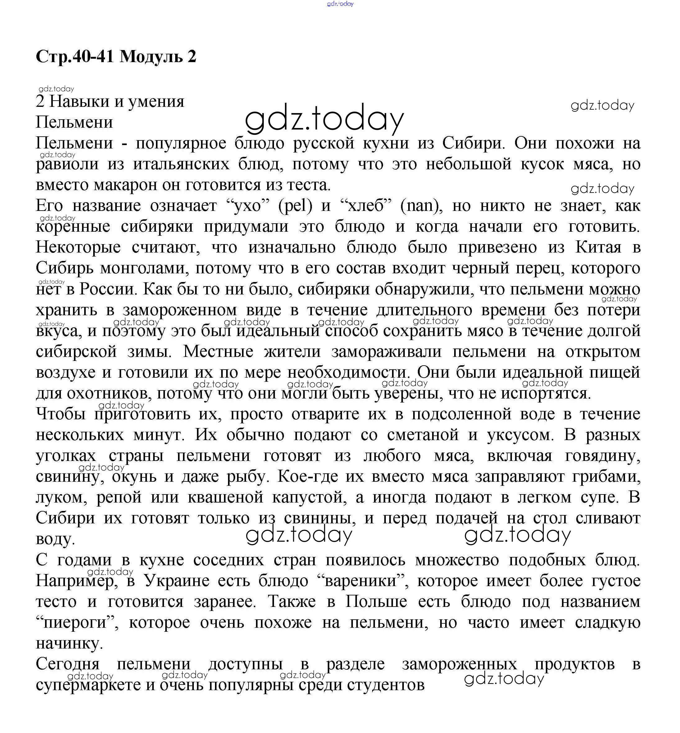 Ответы к Решение к Module 2. Food & Drinks стр.40-41 Учебнику по Английскому языку для 6 класса Баранова, Дули Углубленный уровень Просвещение Starlight 2017