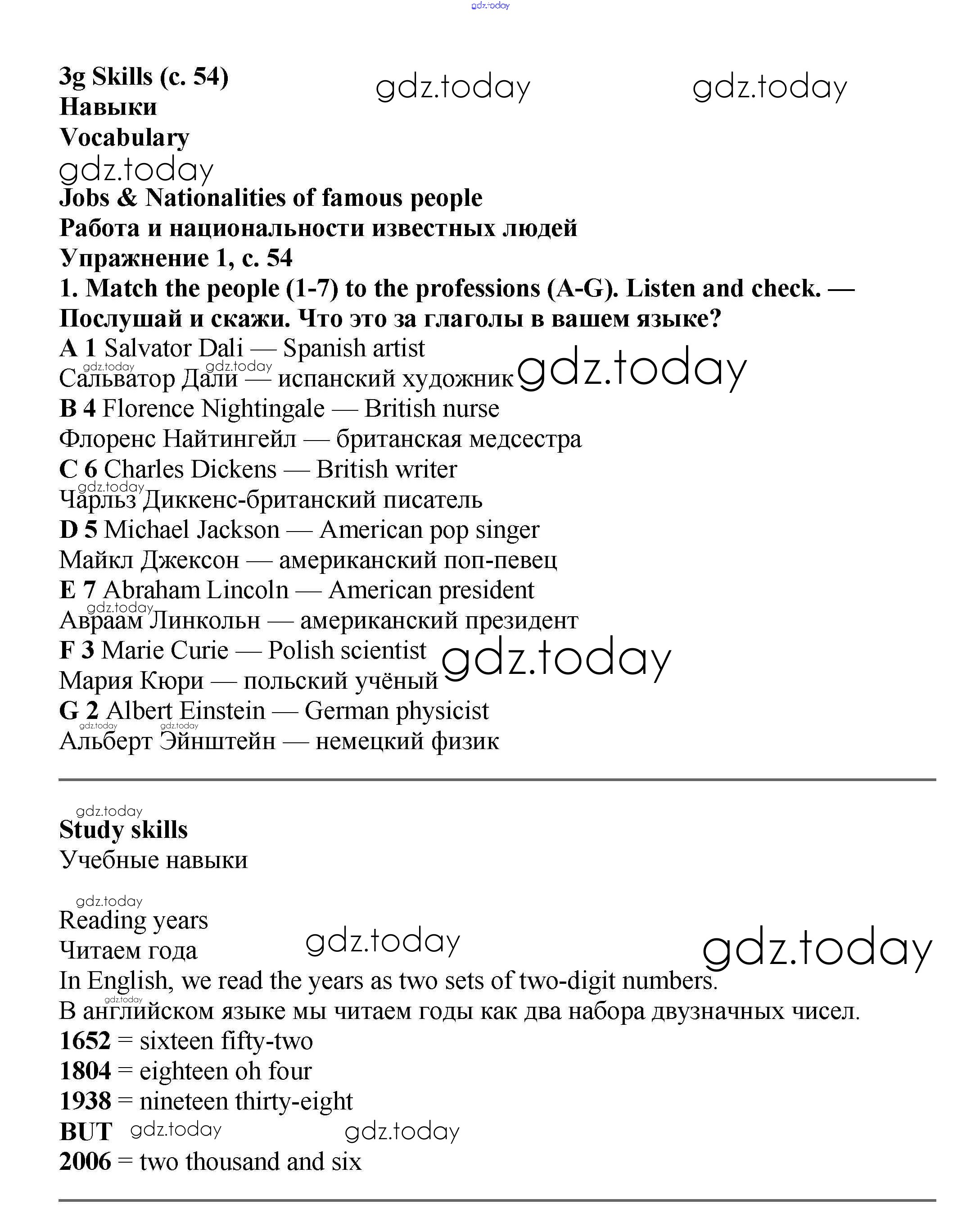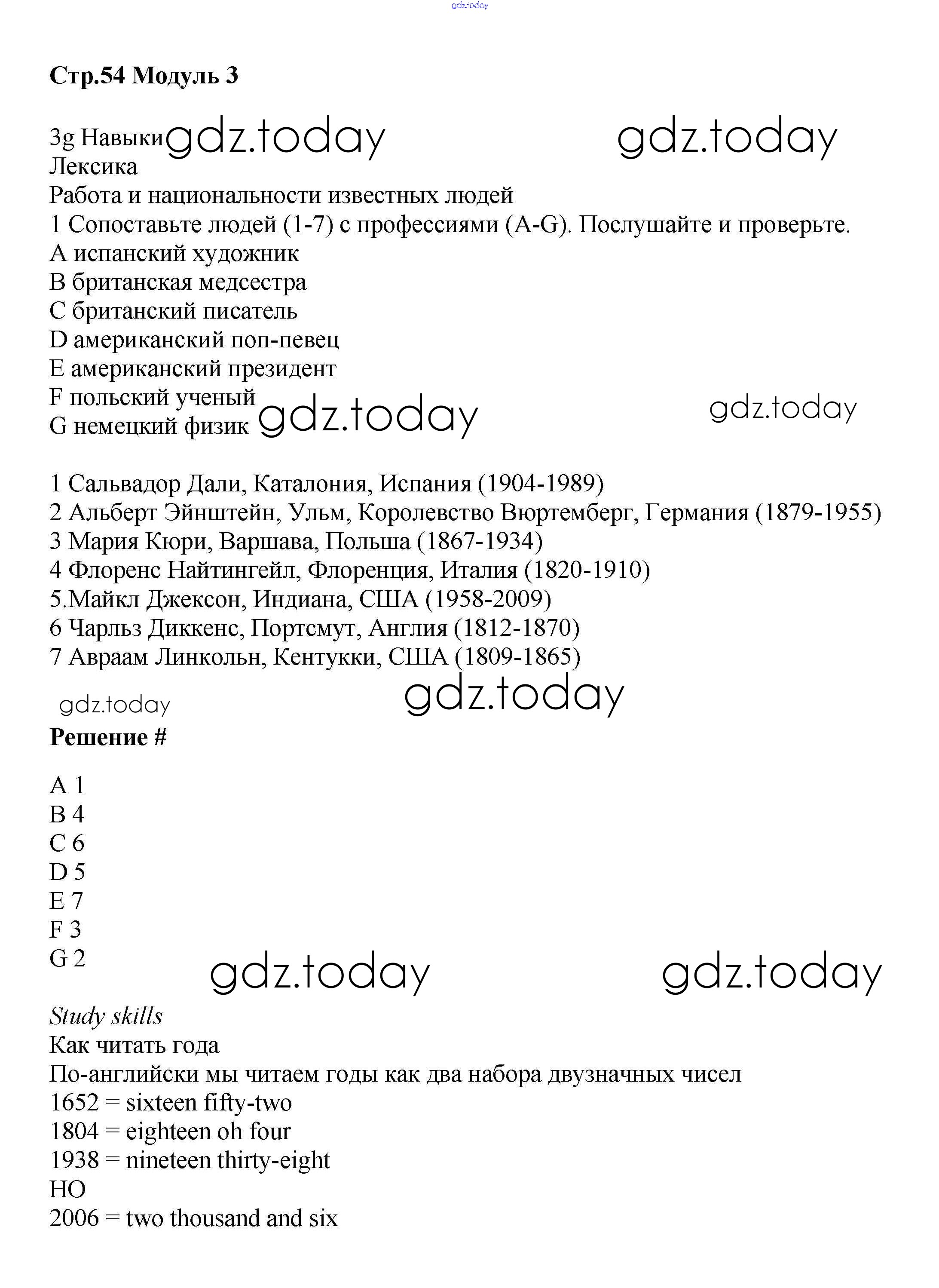 Ответы к Решение к Module 3. Great people & legends стр.54 Учебнику по Английскому языку для 6 класса Баранова, Дули Углубленный уровень Просвещение Starlight 2017