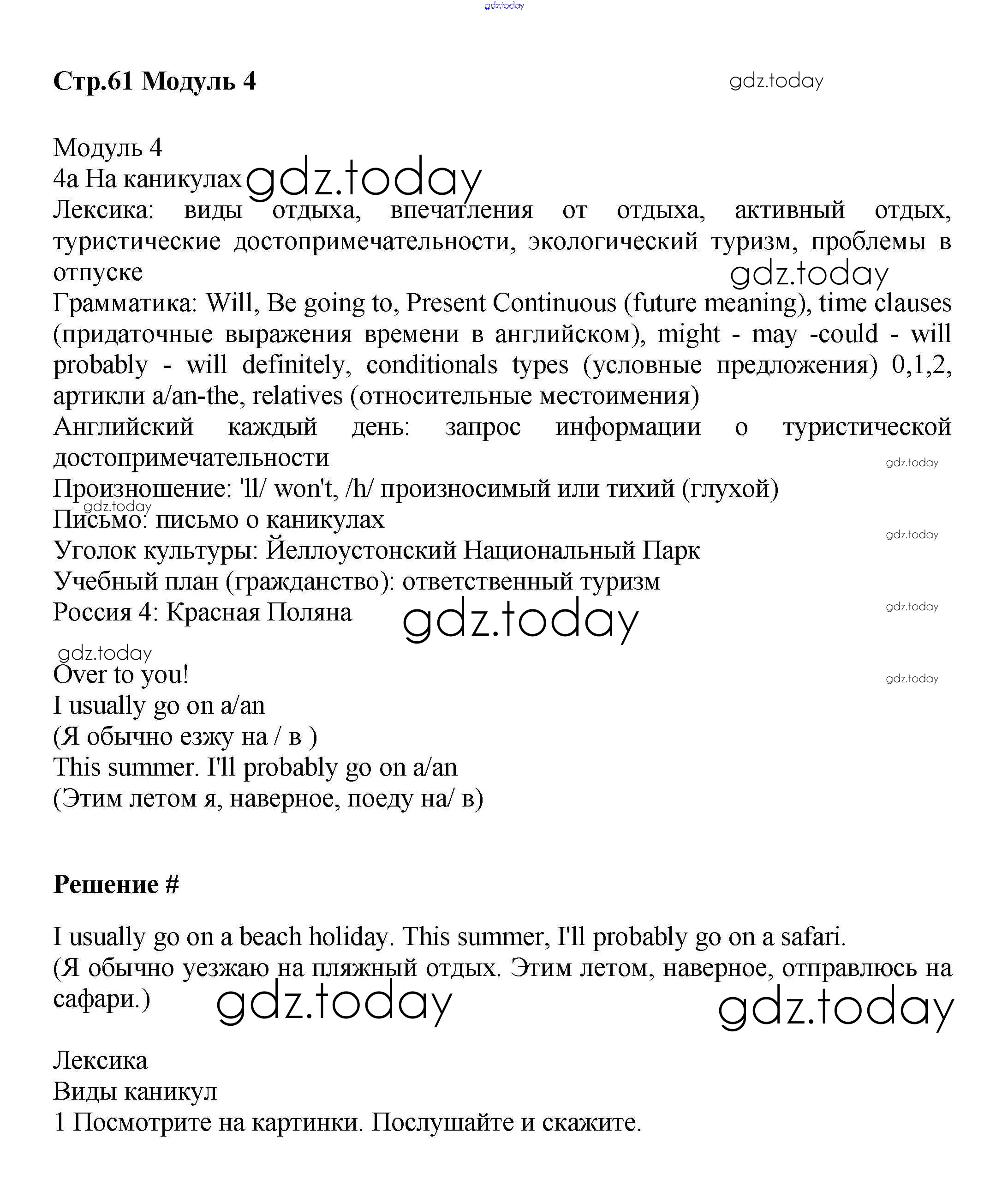 Ответы к Решение к Module 4. On holiday стр.61 Учебнику по Английскому языку для 6 класса Баранова, Дули Углубленный уровень Просвещение Starlight 2017