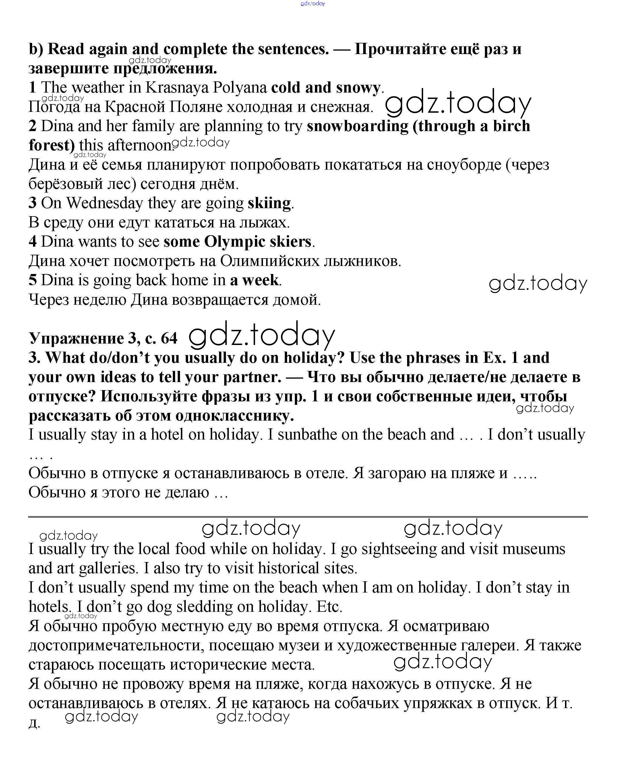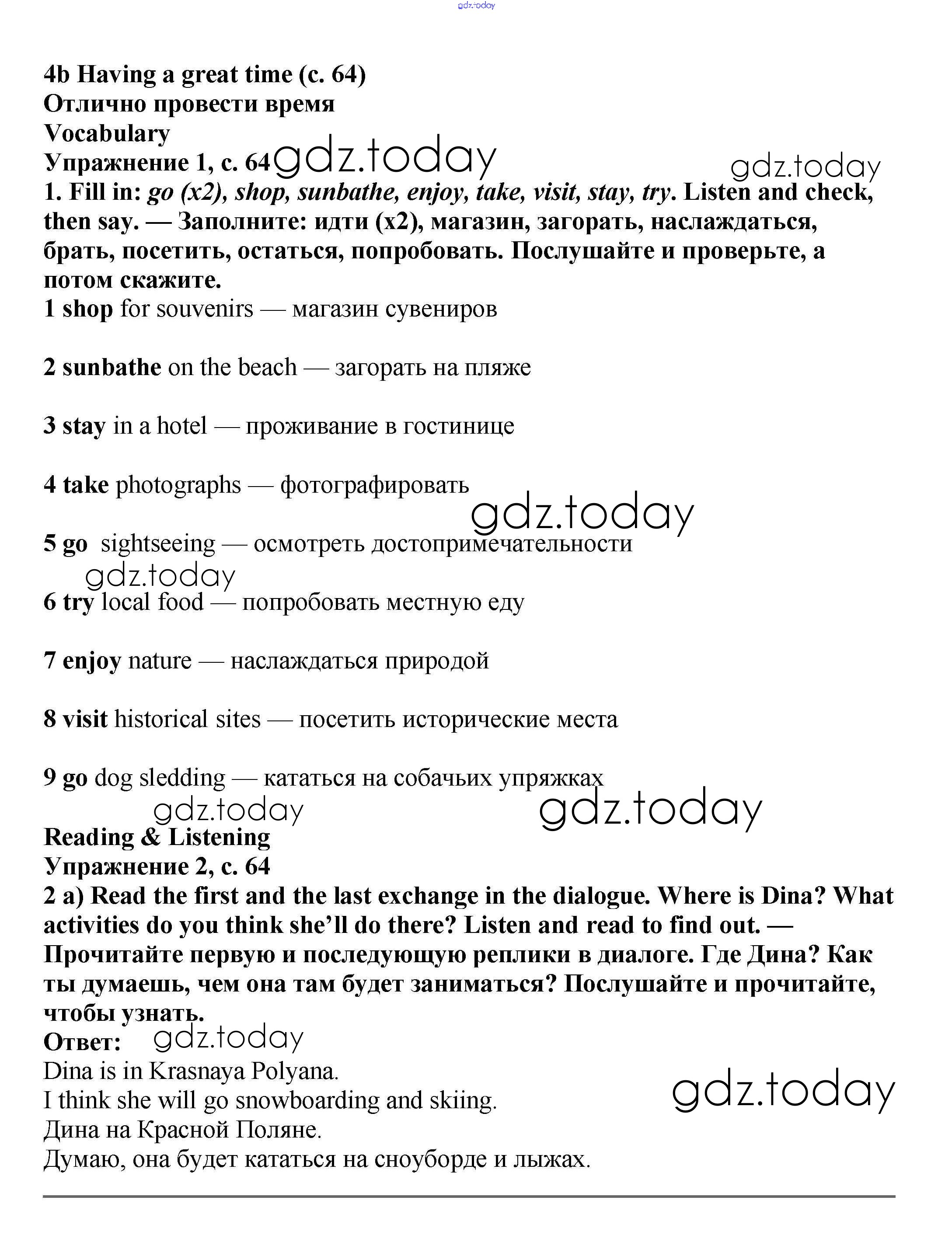 Ответы к Решение к Module 4. On holiday стр.64-65 Учебнику по Английскому языку для 6 класса Баранова, Дули Углубленный уровень Просвещение Starlight 2017