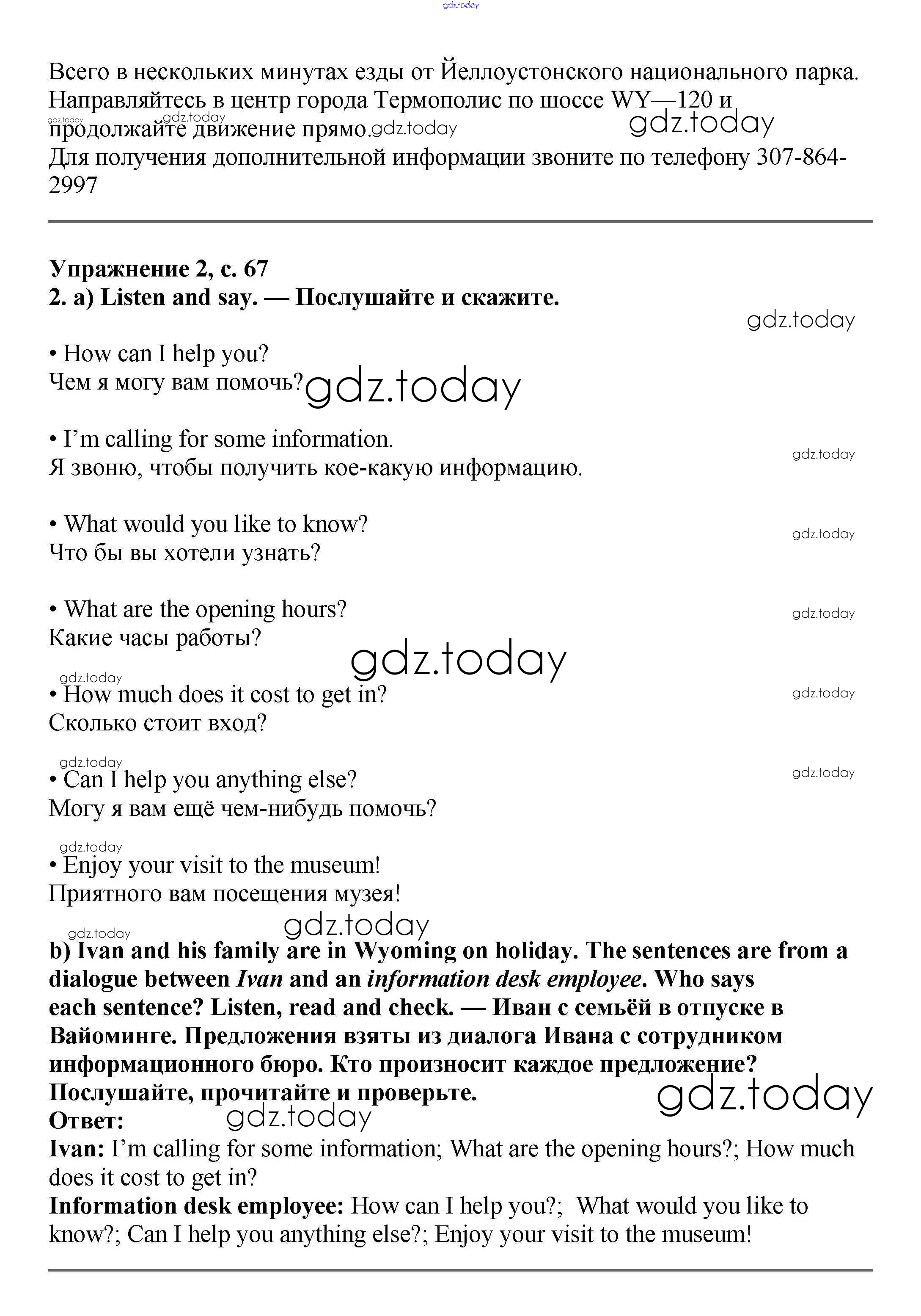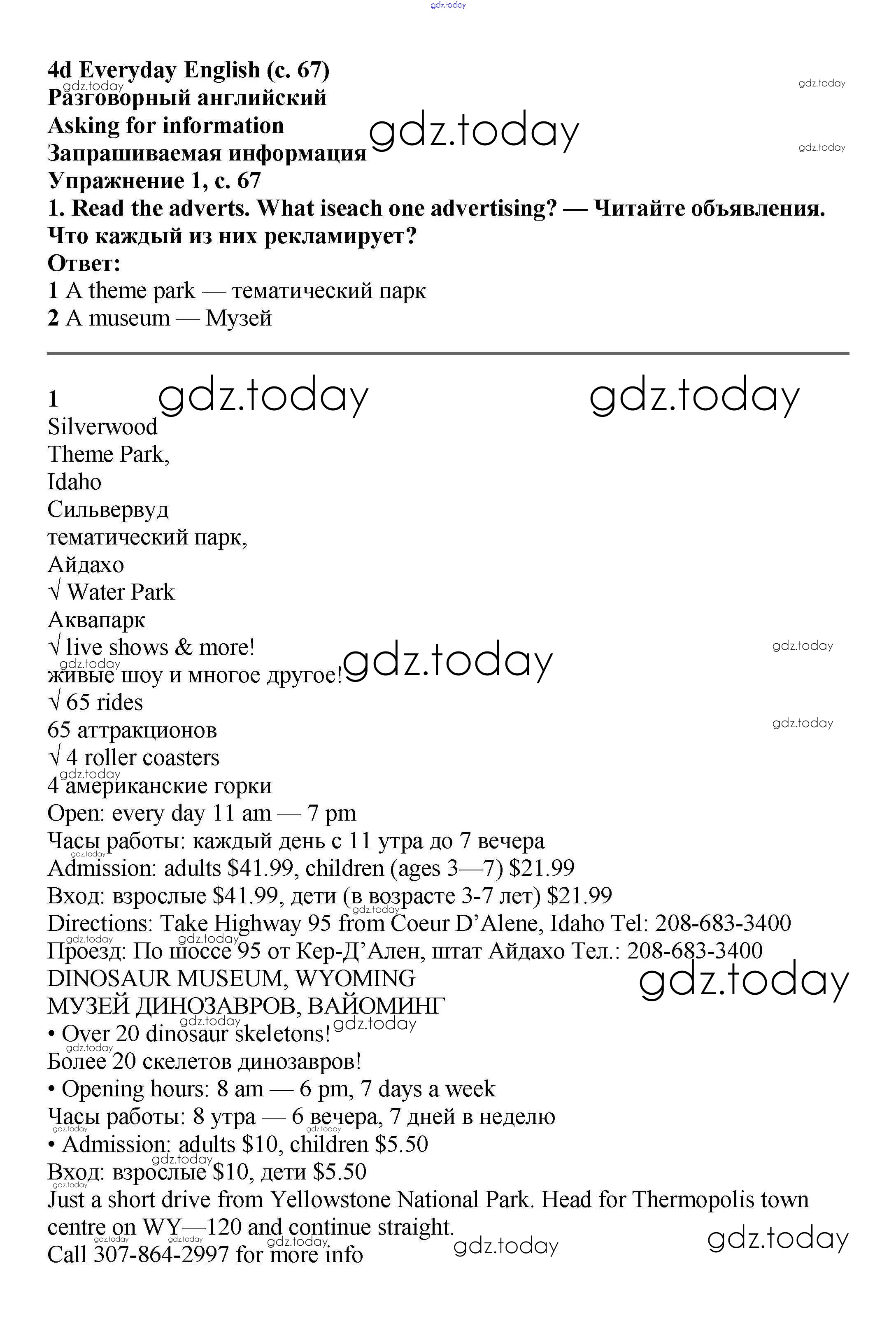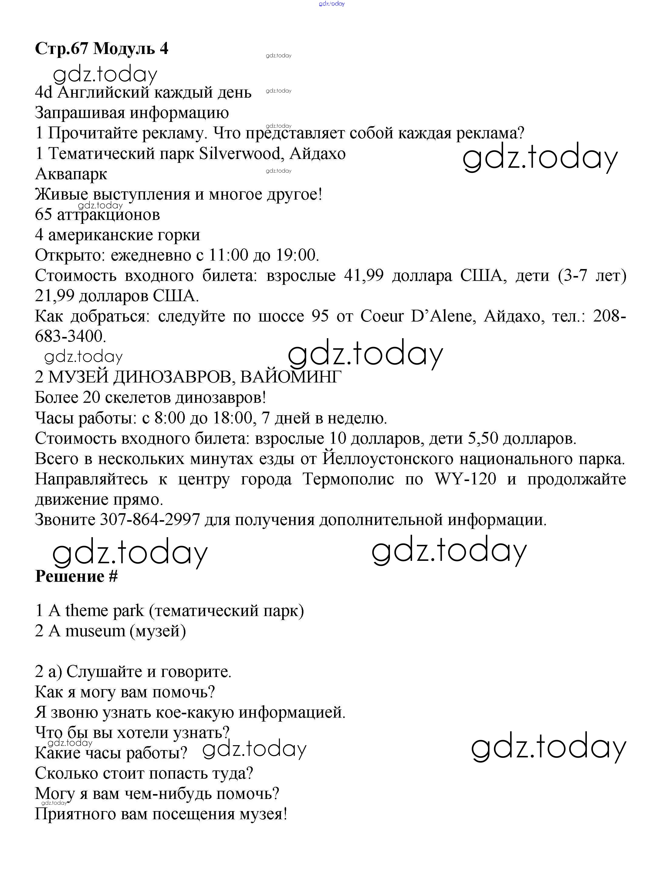 На страницах сайта gdz.today вы найдете учебный и вспомогательный материал, направленный на улучшения знаний школьной программы. ГДЗ - онлайн мир знаний Решение к Module 4. On holiday стр.67 Учебнику по Английскому языку для 6 класса Баранова, Дули Углубленный уровень Просвещение Starlight 2017