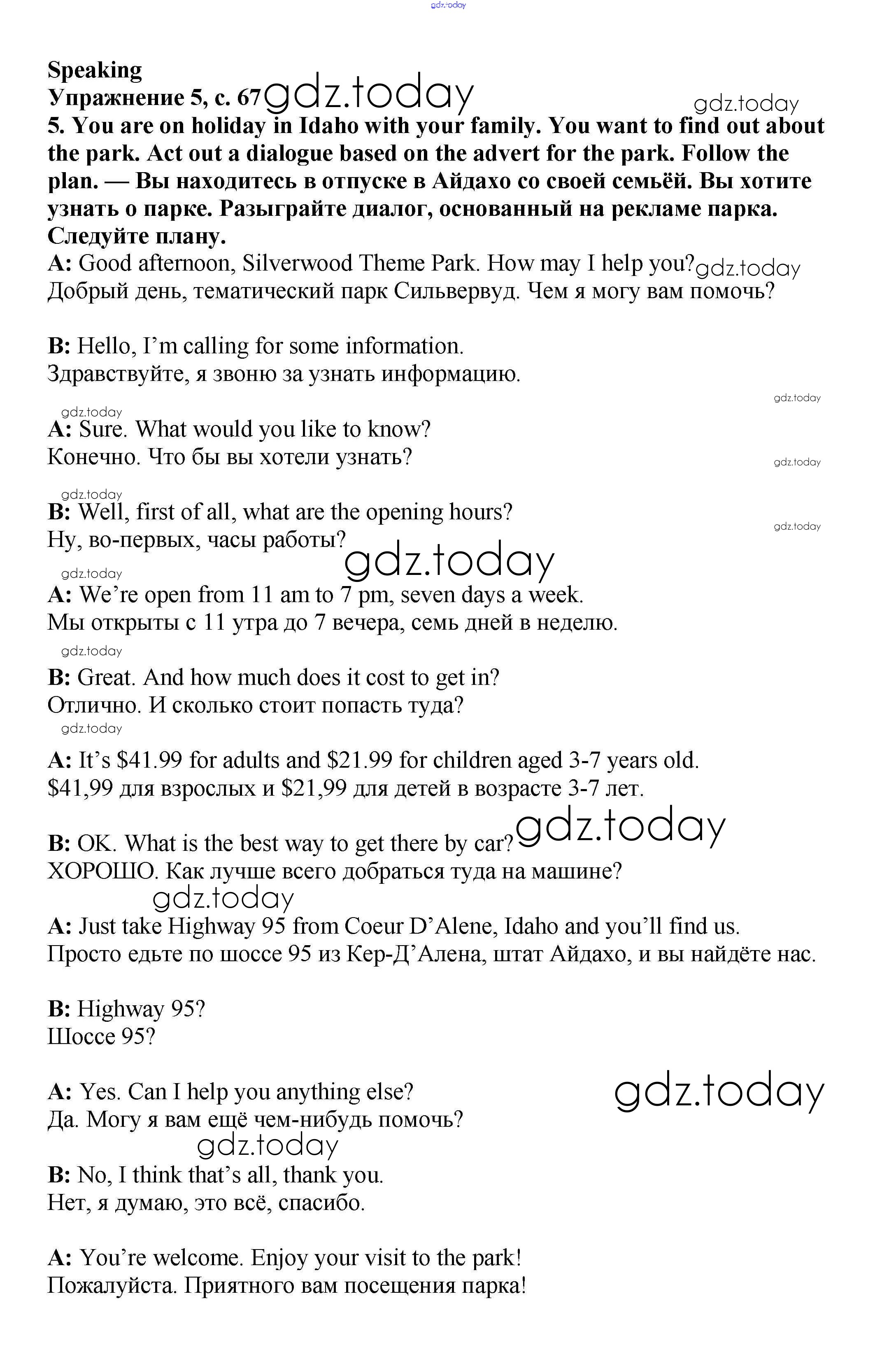 Ответы к Решение к Module 4. On holiday стр.67 Учебнику по Английскому языку для 6 класса Баранова, Дули Углубленный уровень Просвещение Starlight 2017