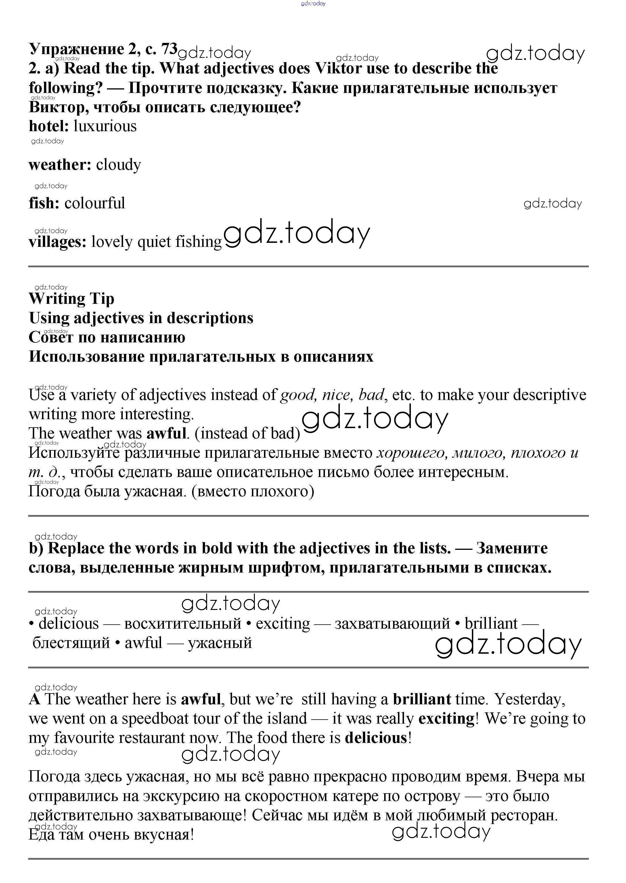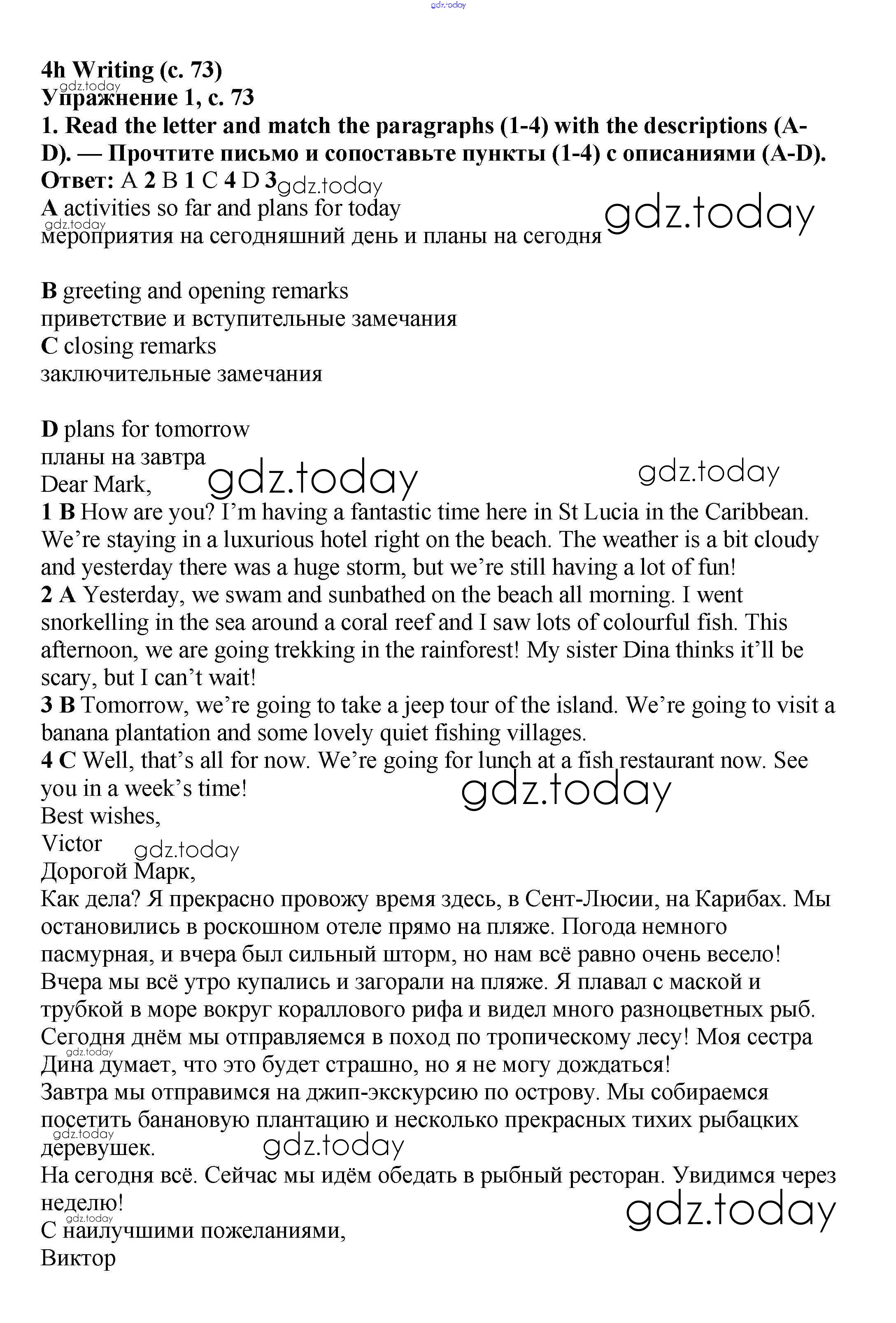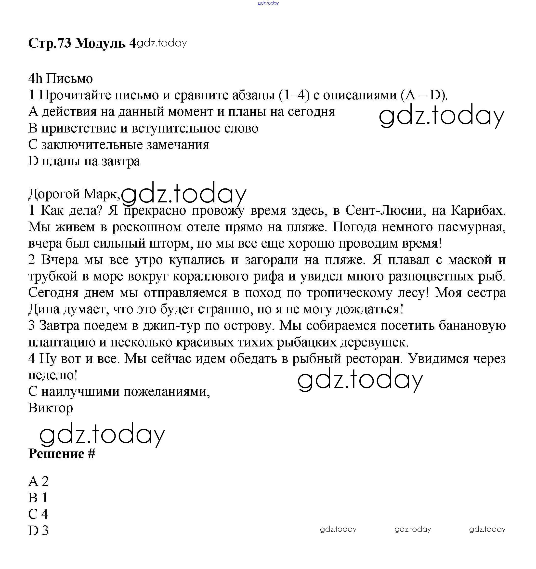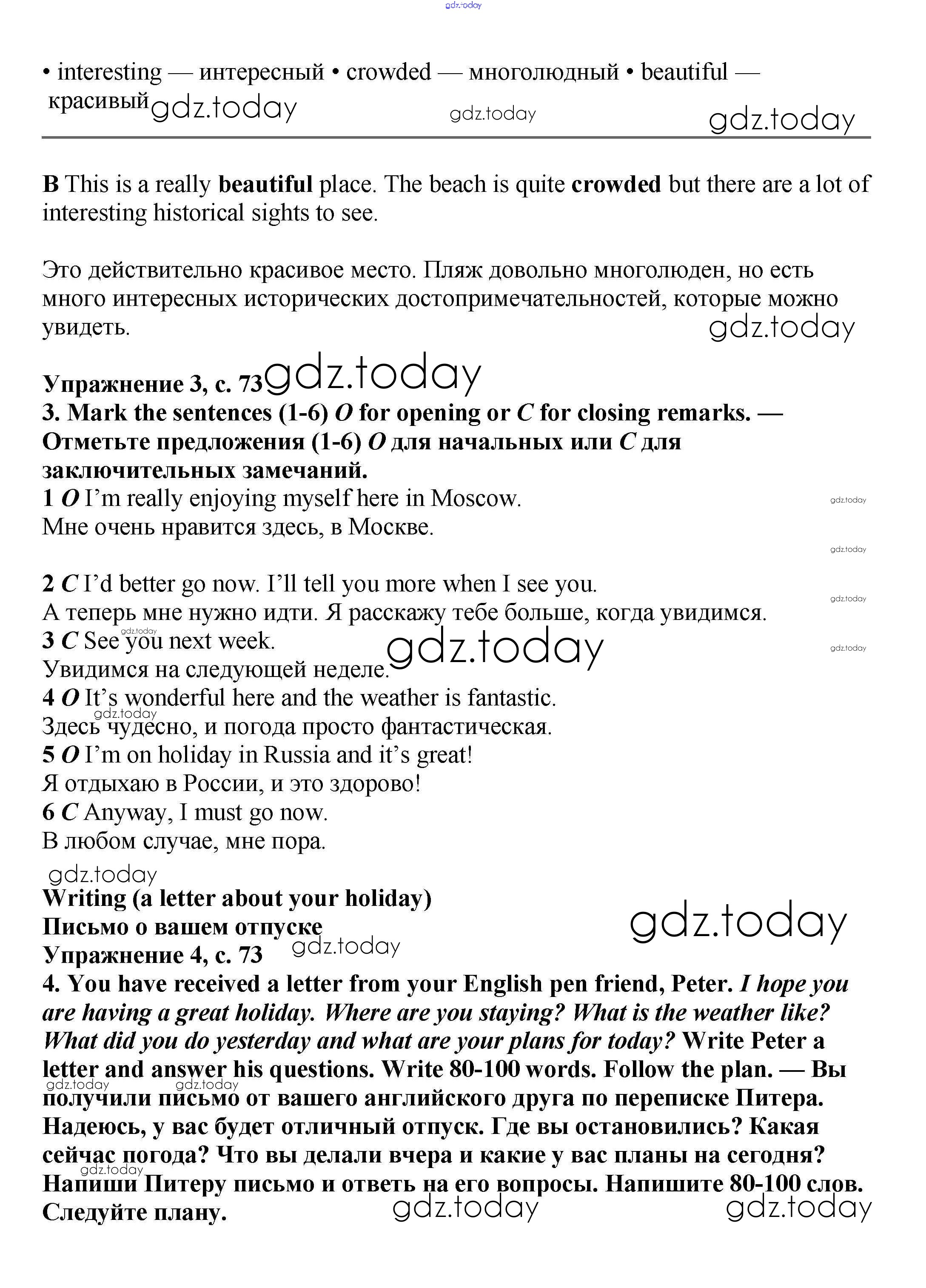 Ответы к Решение к Module 4. On holiday стр.73 Учебнику по Английскому языку для 6 класса Баранова, Дули Углубленный уровень Просвещение Starlight 2017