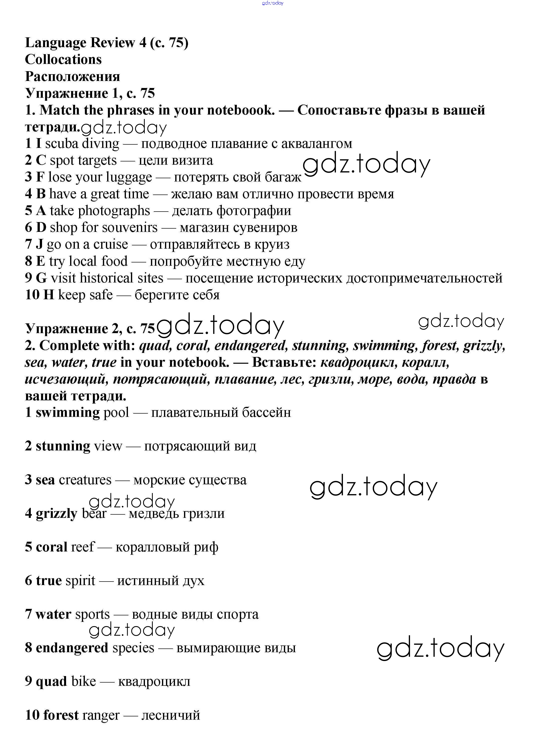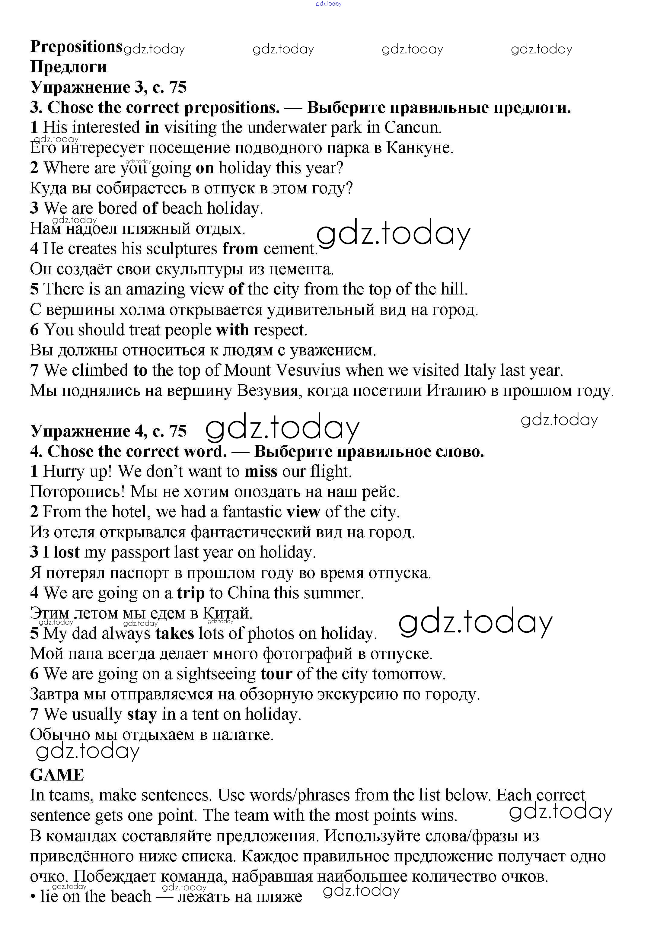 Ответы к Решение к Module 4. On holiday стр.75 Учебнику по Английскому языку для 6 класса Баранова, Дули Углубленный уровень Просвещение Starlight 2017