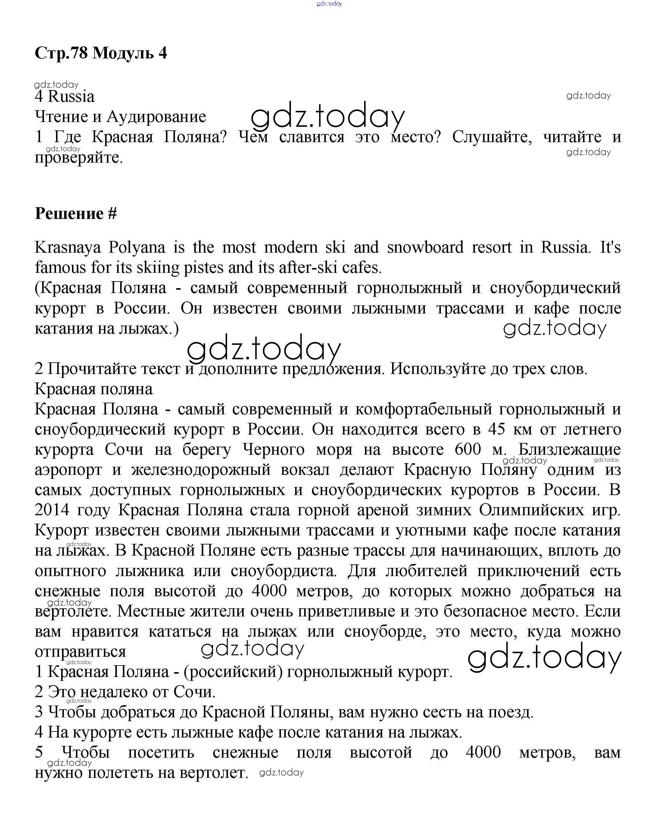 Ответы к Решение к Module 4. On holiday стр.78 Учебнику по Английскому языку для 6 класса Баранова, Дули Углубленный уровень Просвещение Starlight 2017