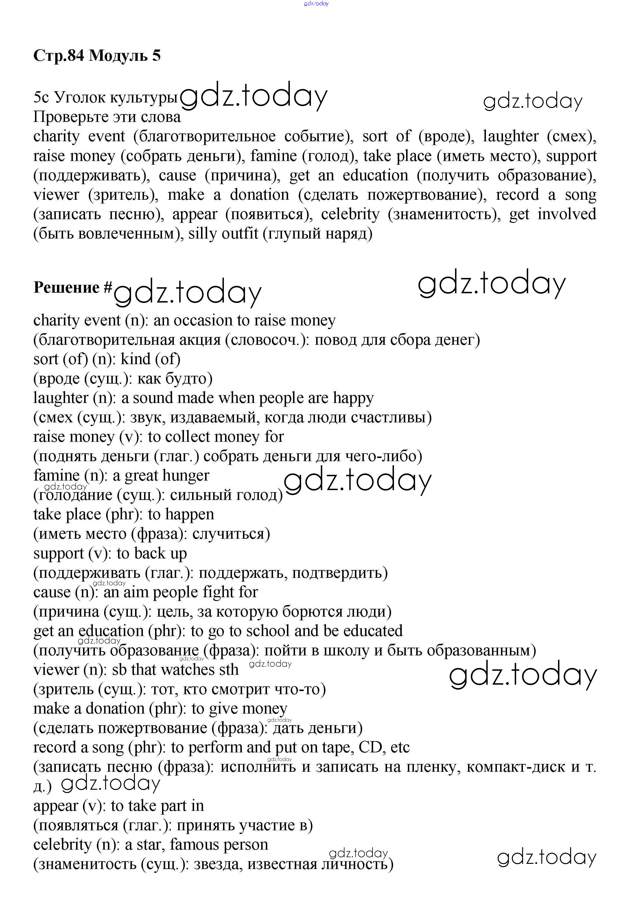 Ответы к Решение к Module 5. Helping hands стр.84 Учебнику по Английскому языку для 6 класса Баранова, Дули Углубленный уровень Просвещение Starlight 2017