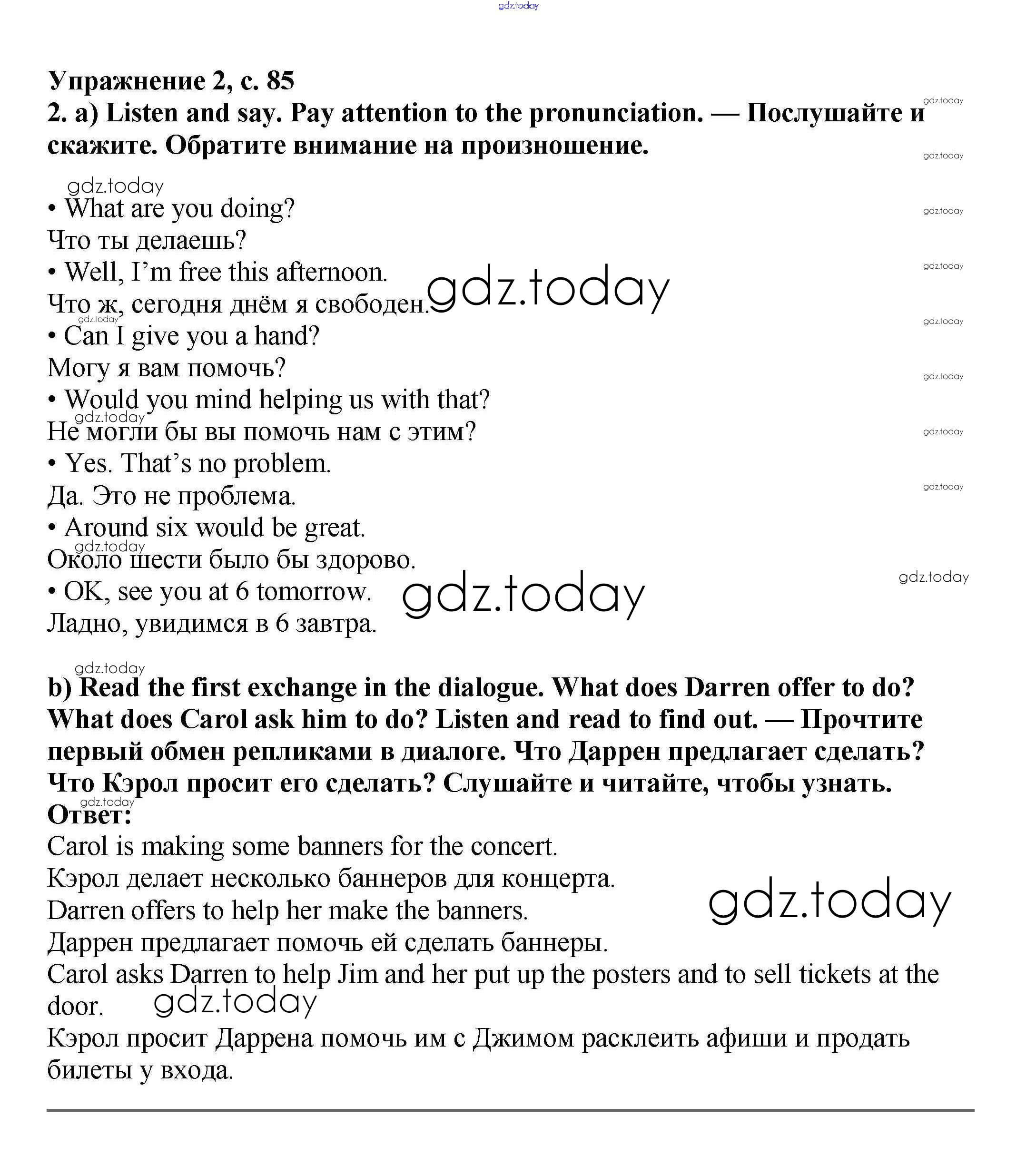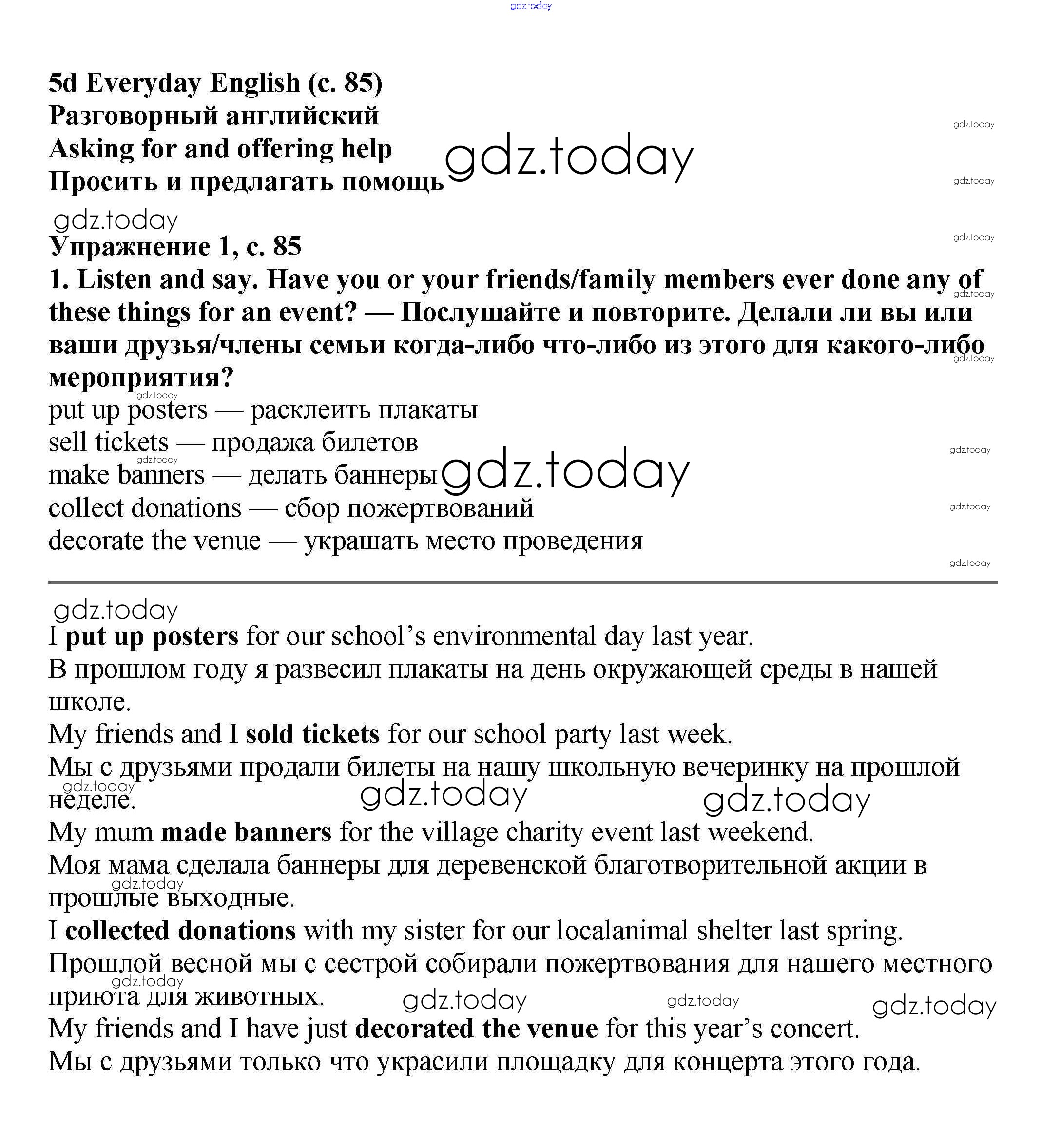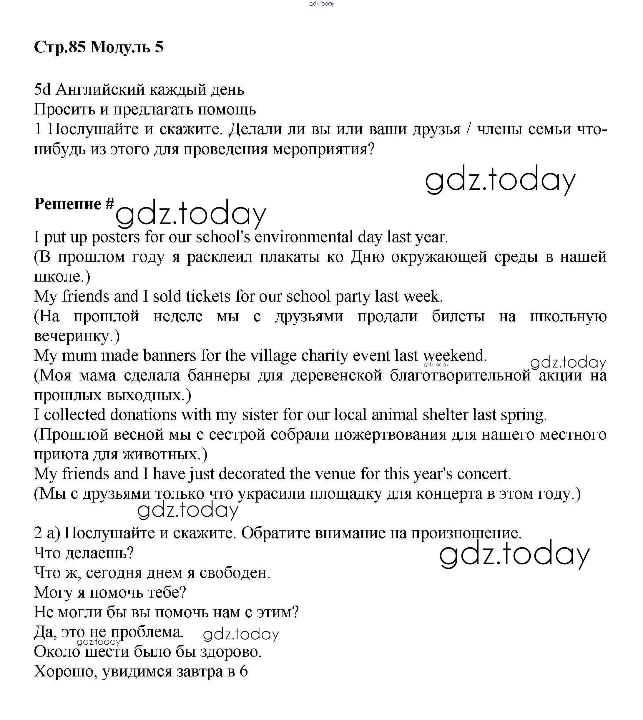 На страницах сайта gdz.today вы найдете учебный и вспомогательный материал, направленный на улучшения знаний школьной программы. ГДЗ - онлайн мир знаний Решение к Module 5. Helping hands стр.85 Учебнику по Английскому языку для 6 класса Баранова, Дули Углубленный уровень Просвещение Starlight 2017