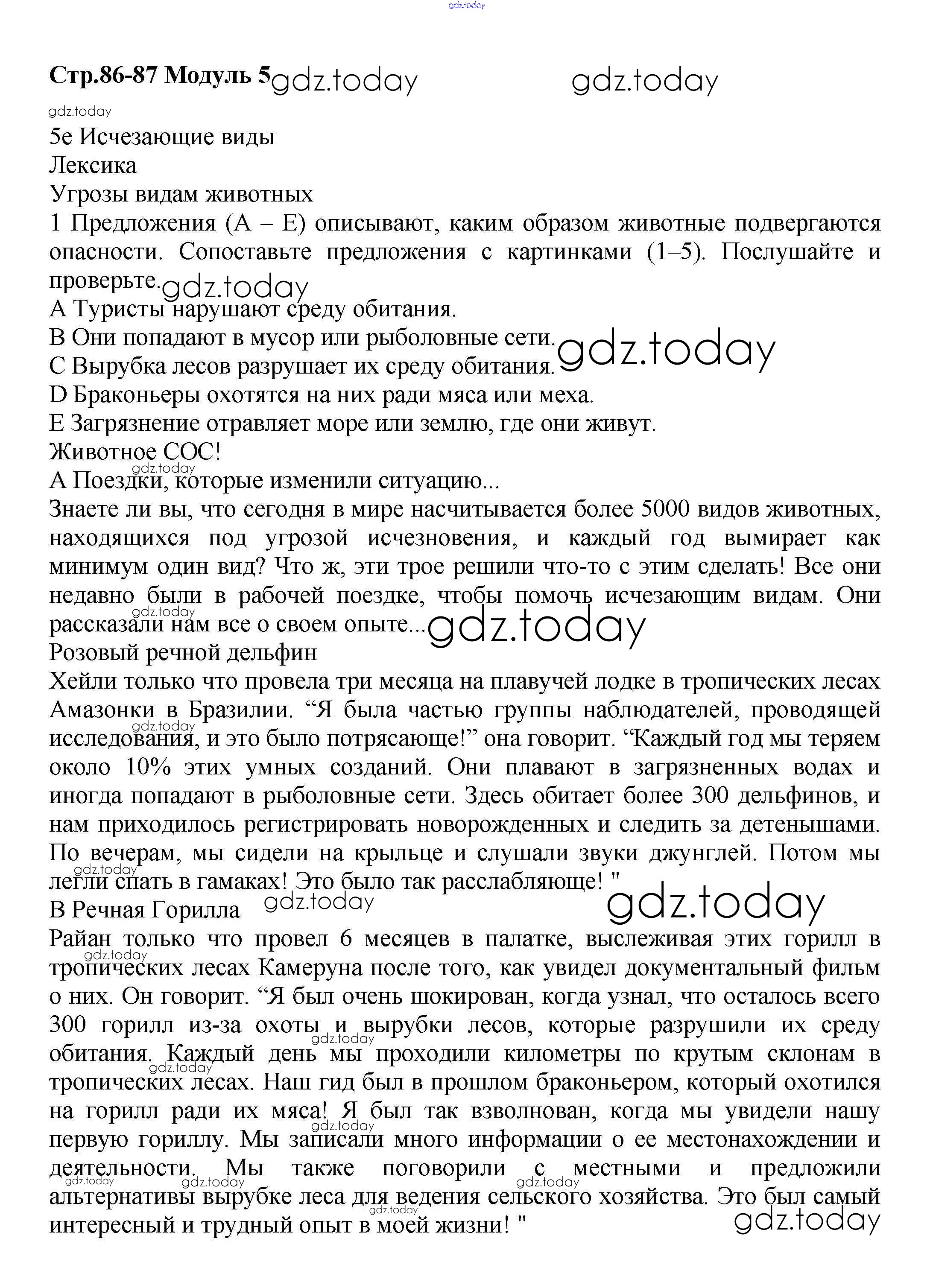 На страницах сайта gdz.today вы найдете учебный и вспомогательный материал, направленный на улучшения знаний школьной программы. ГДЗ - онлайн мир знаний Решение к Module 5. Helping hands стр.86-87 Учебнику по Английскому языку для 6 класса Баранова, Дули Углубленный уровень Просвещение Starlight 2017