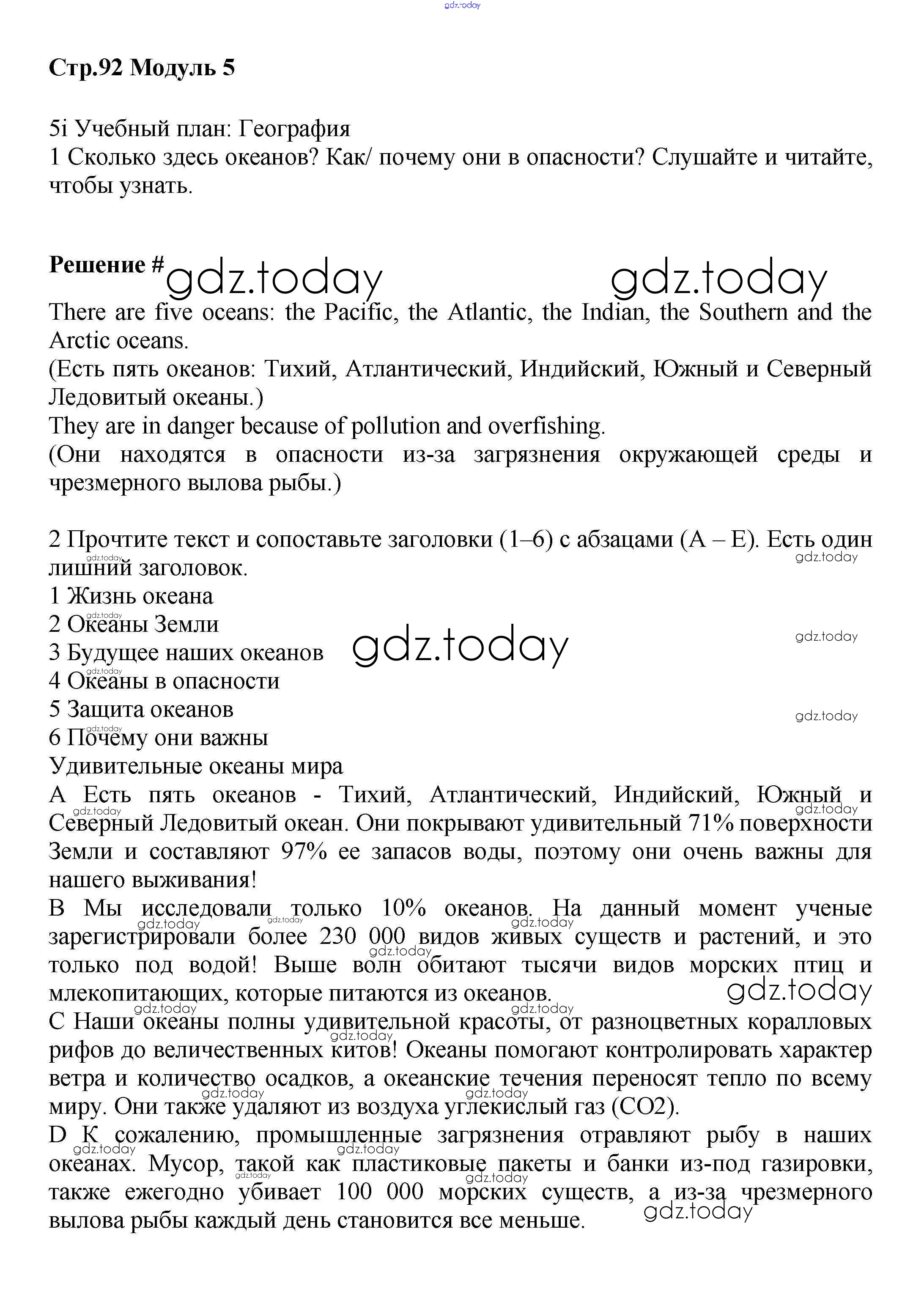 На страницах сайта gdz.today вы найдете учебный и вспомогательный материал, направленный на улучшения знаний школьной программы. ГДЗ - онлайн мир знаний Решение к Module 5. Helping hands стр.92 Учебнику по Английскому языку для 6 класса Баранова, Дули Углубленный уровень Просвещение Starlight 2017