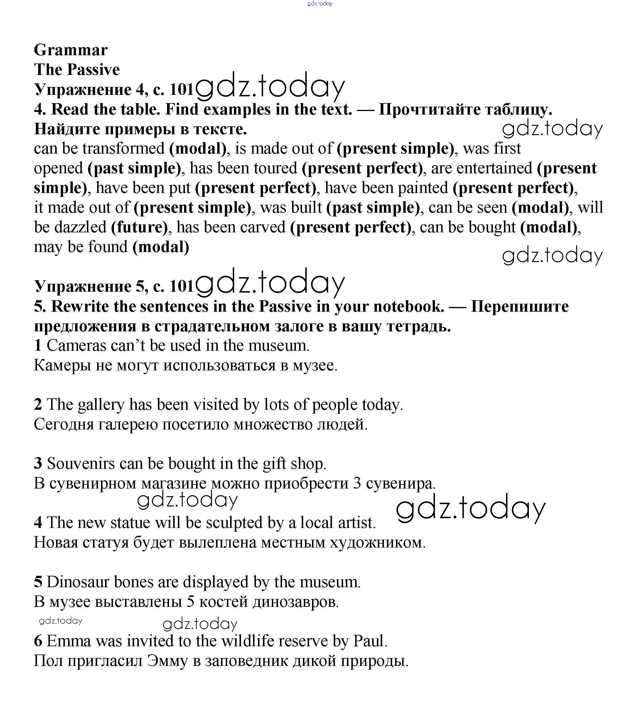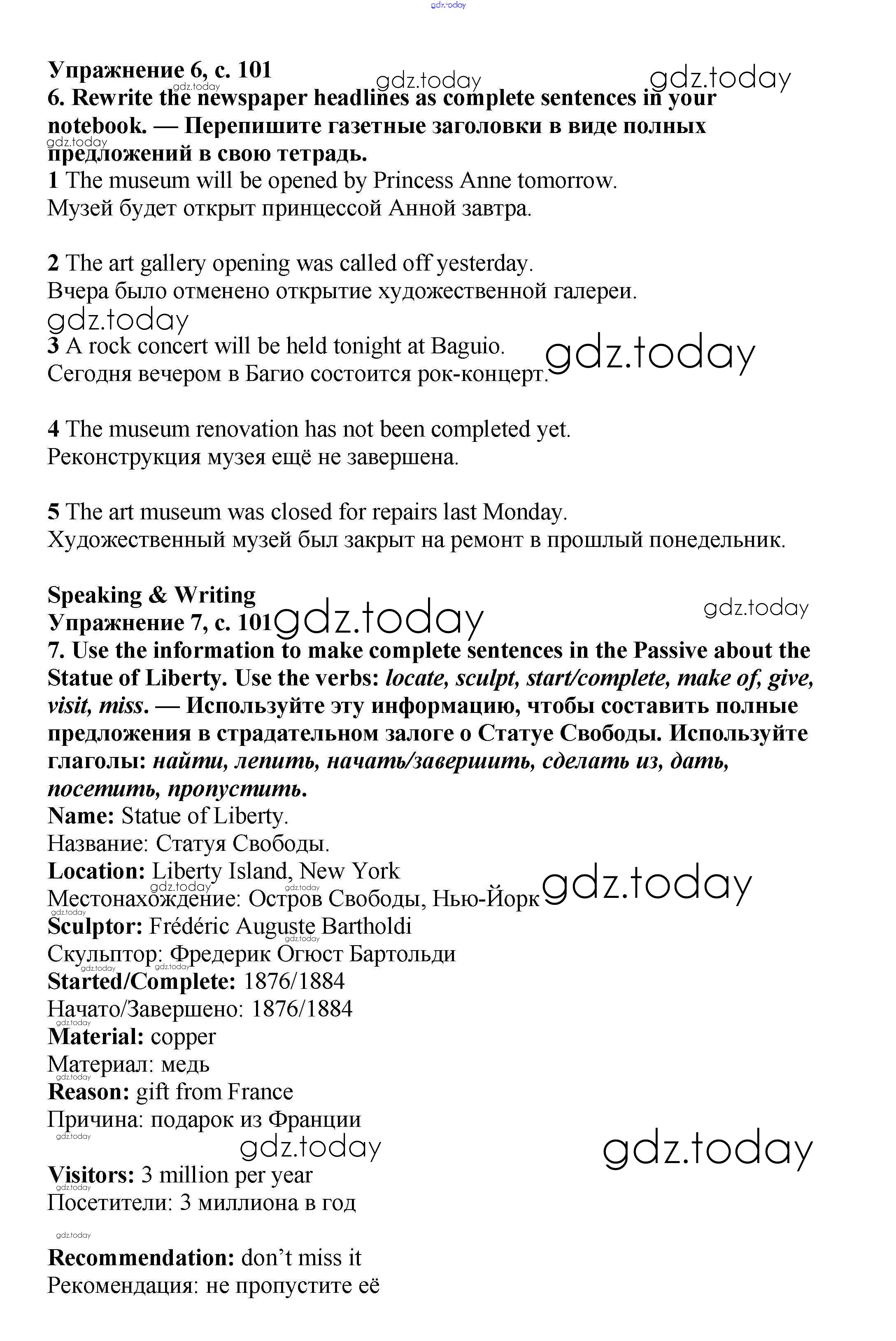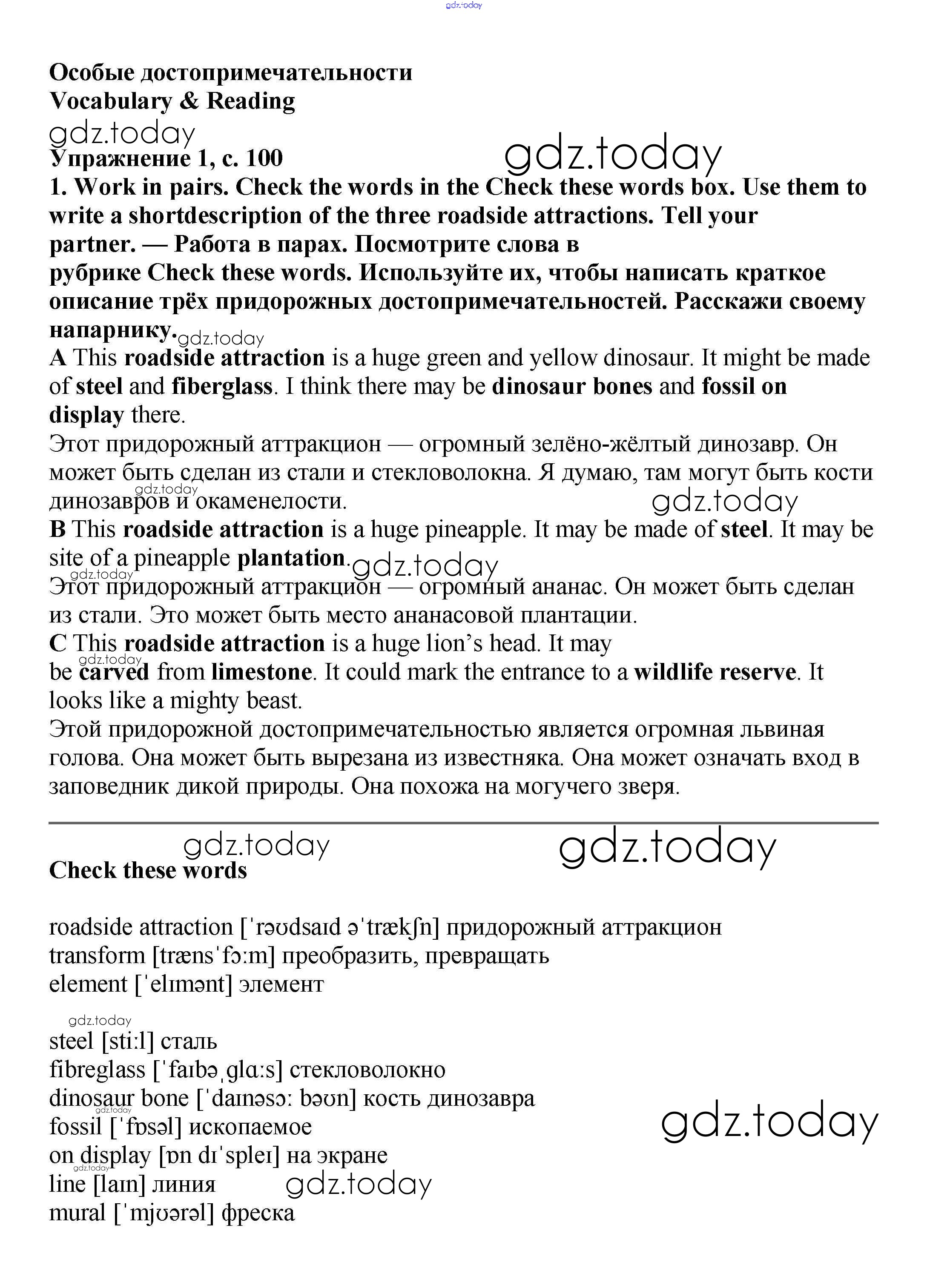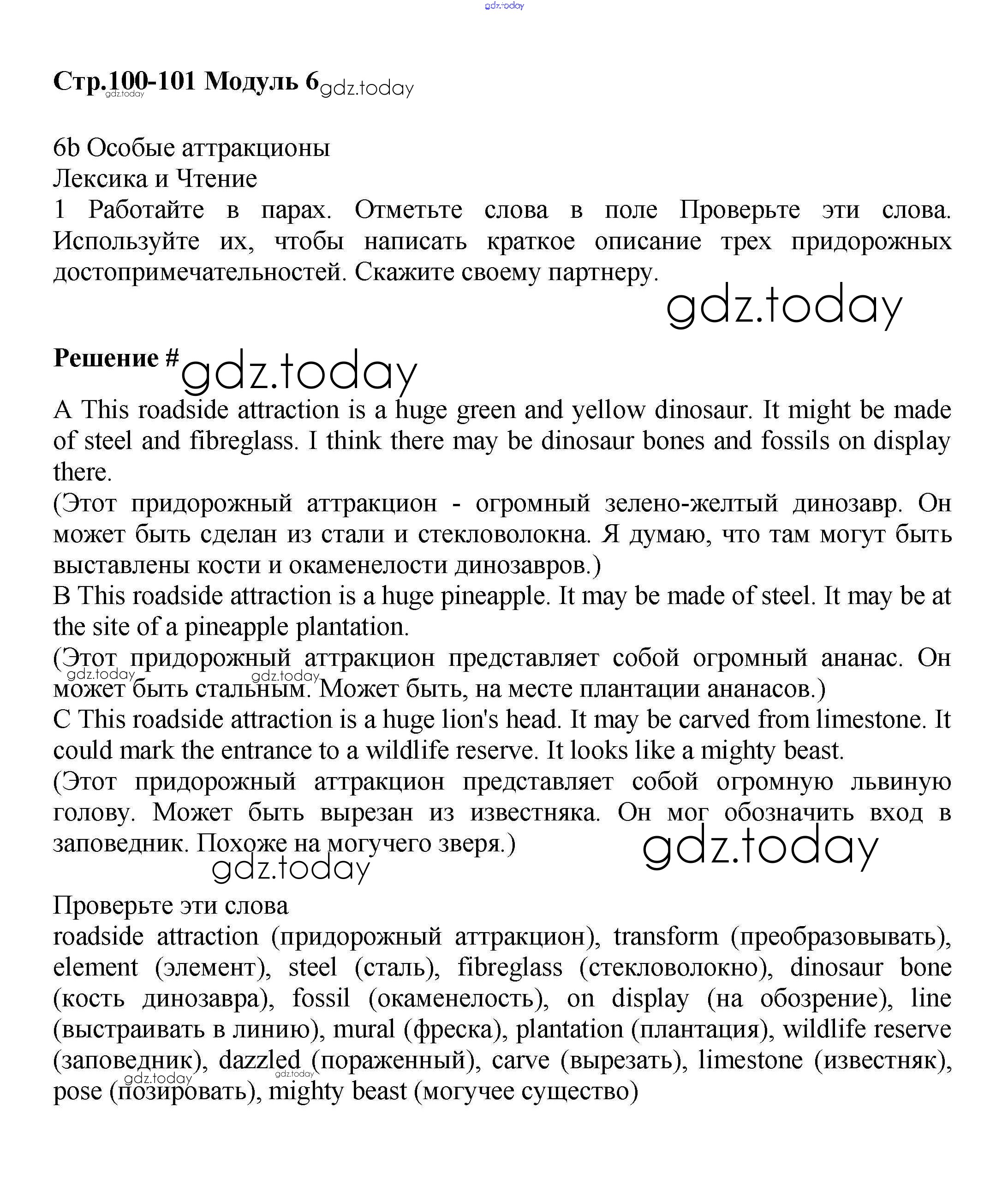 На страницах сайта gdz.today вы найдете учебный и вспомогательный материал, направленный на улучшения знаний школьной программы. ГДЗ - онлайн мир знаний Решение к Module 6. Art & Culture стр.100-101 Учебнику по Английскому языку для 6 класса Баранова, Дули Углубленный уровень Просвещение Starlight 2017