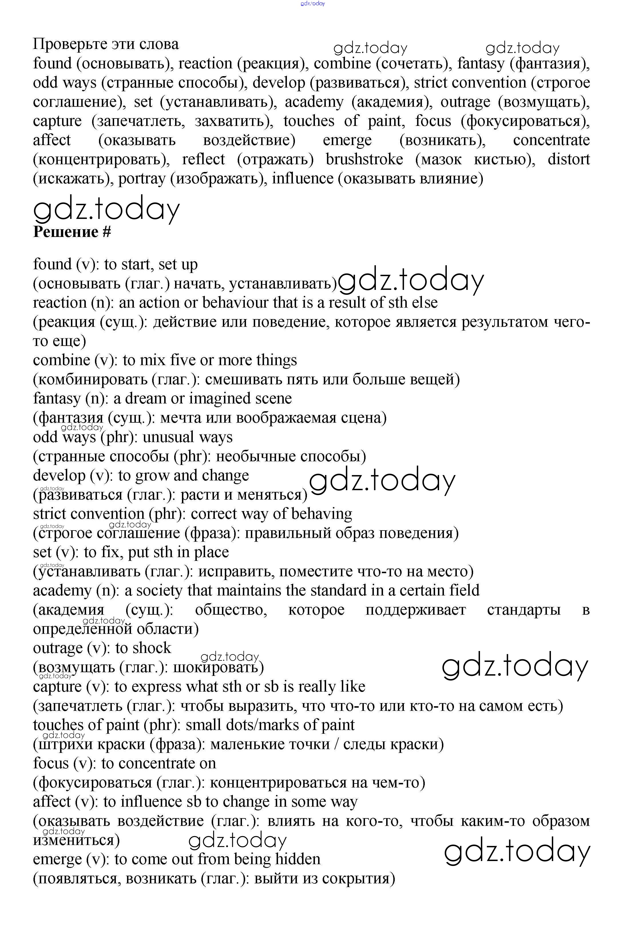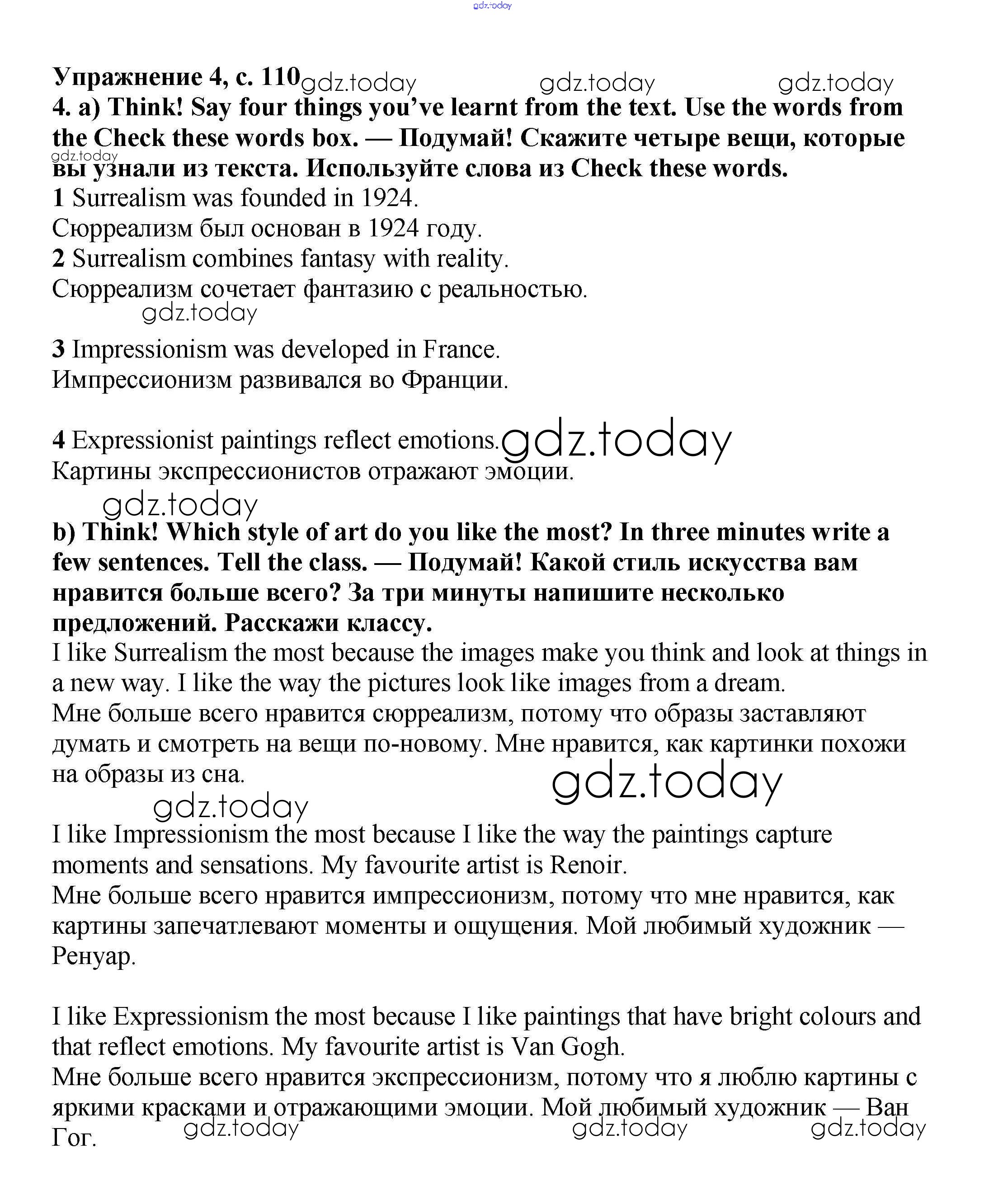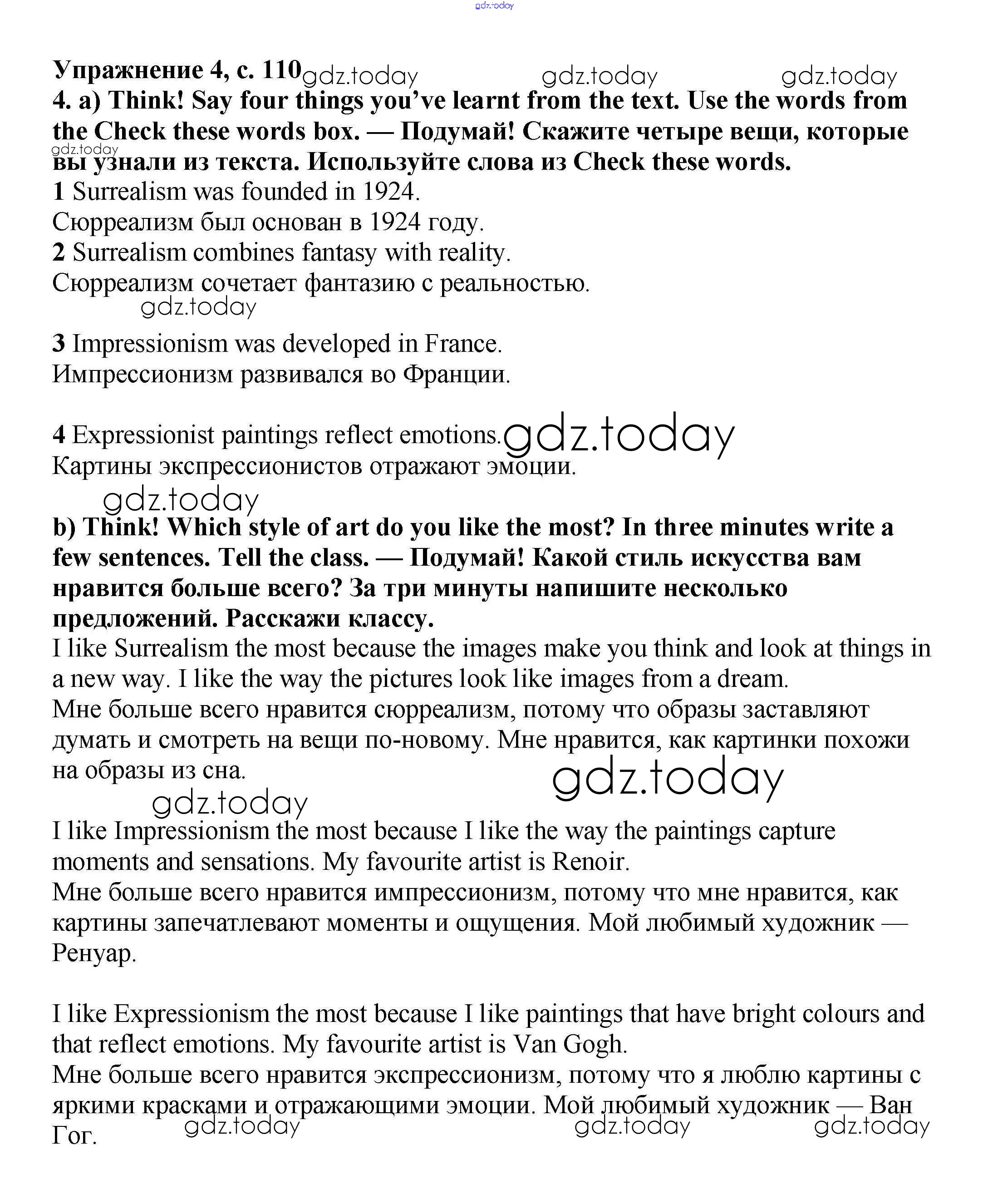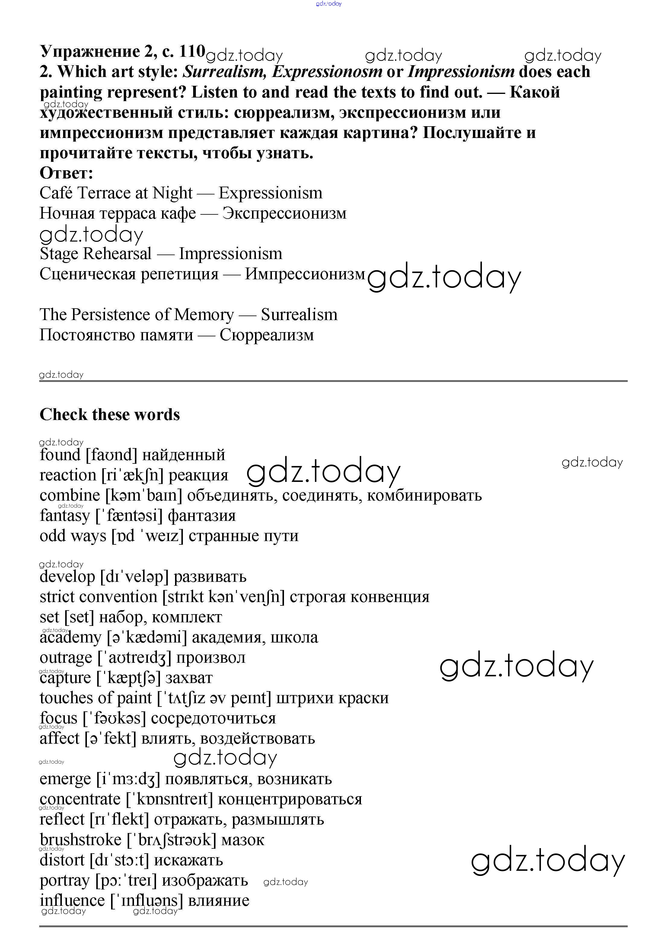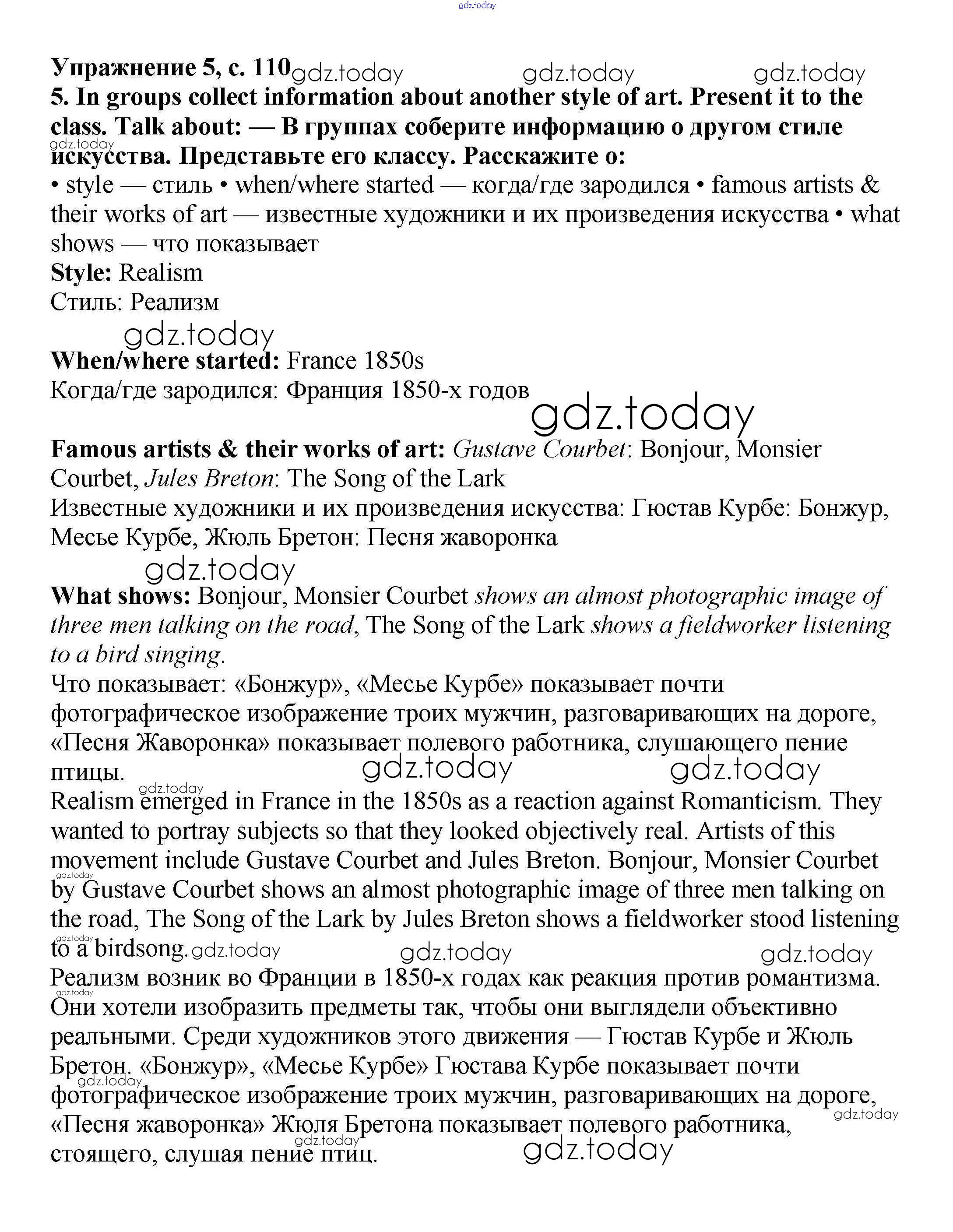 На страницах сайта gdz.today вы найдете учебный и вспомогательный материал, направленный на улучшения знаний школьной программы. ГДЗ - онлайн мир знаний Решение к Module 6. Art & Culture стр.110 Учебнику по Английскому языку для 6 класса Баранова, Дули Углубленный уровень Просвещение Starlight 2017