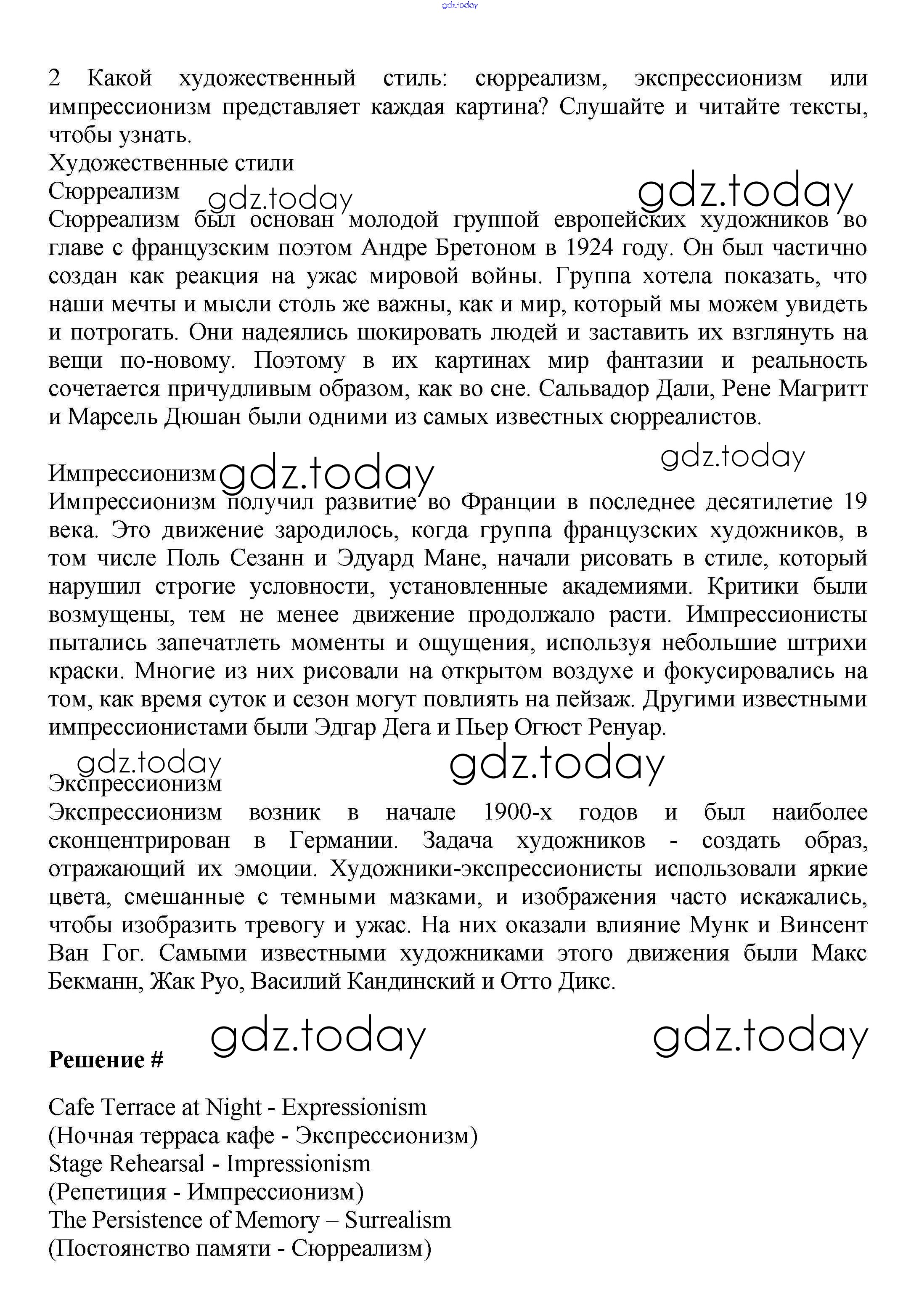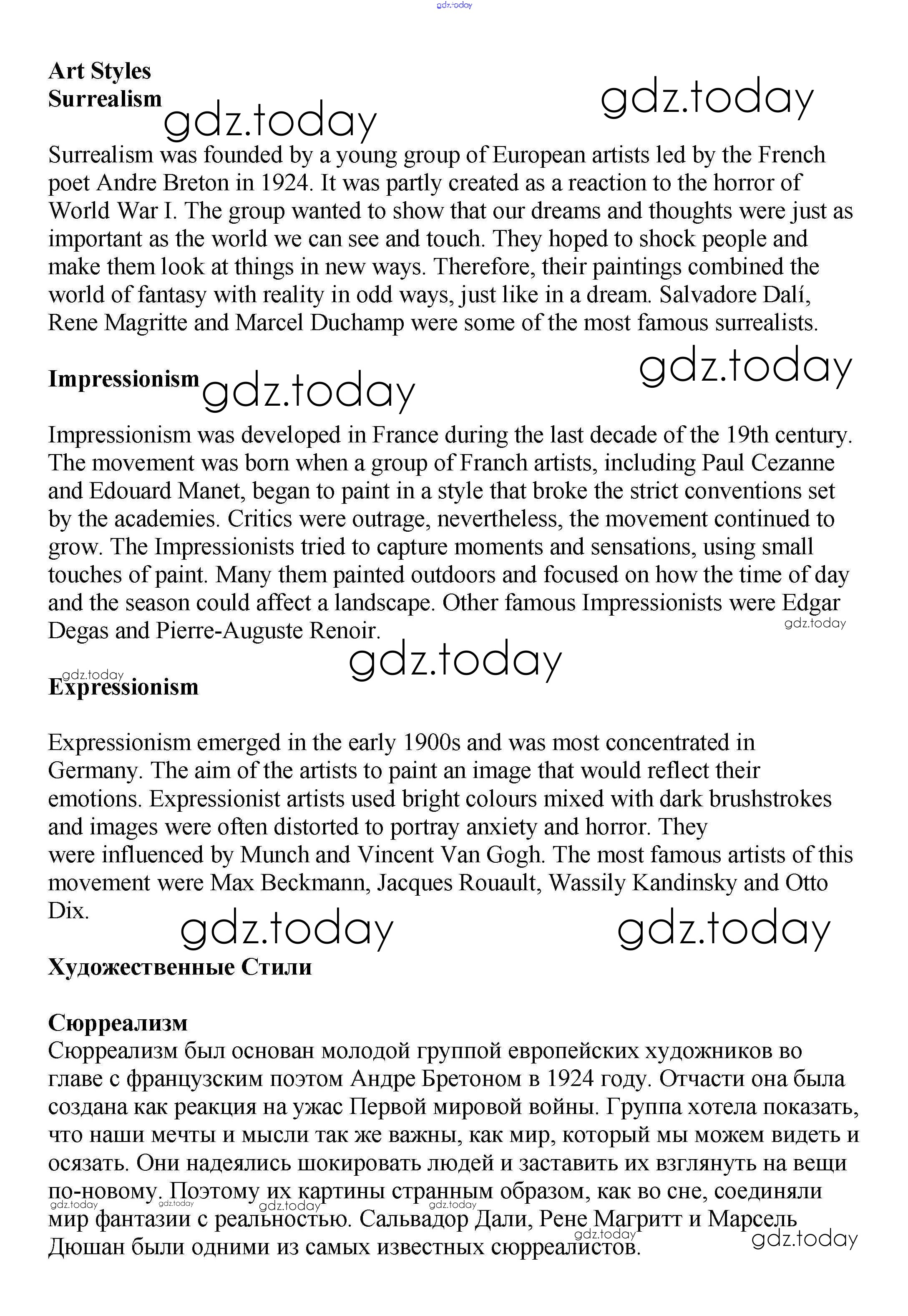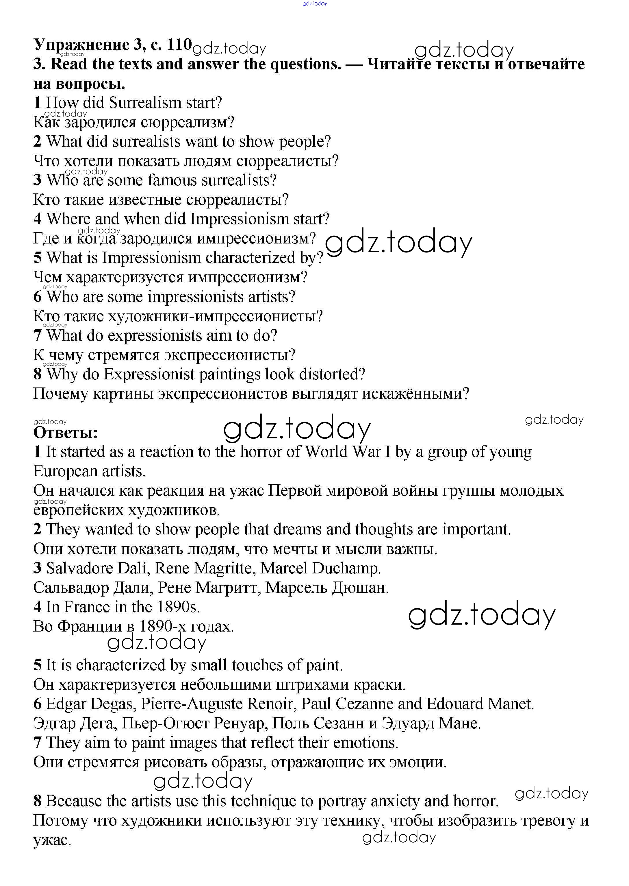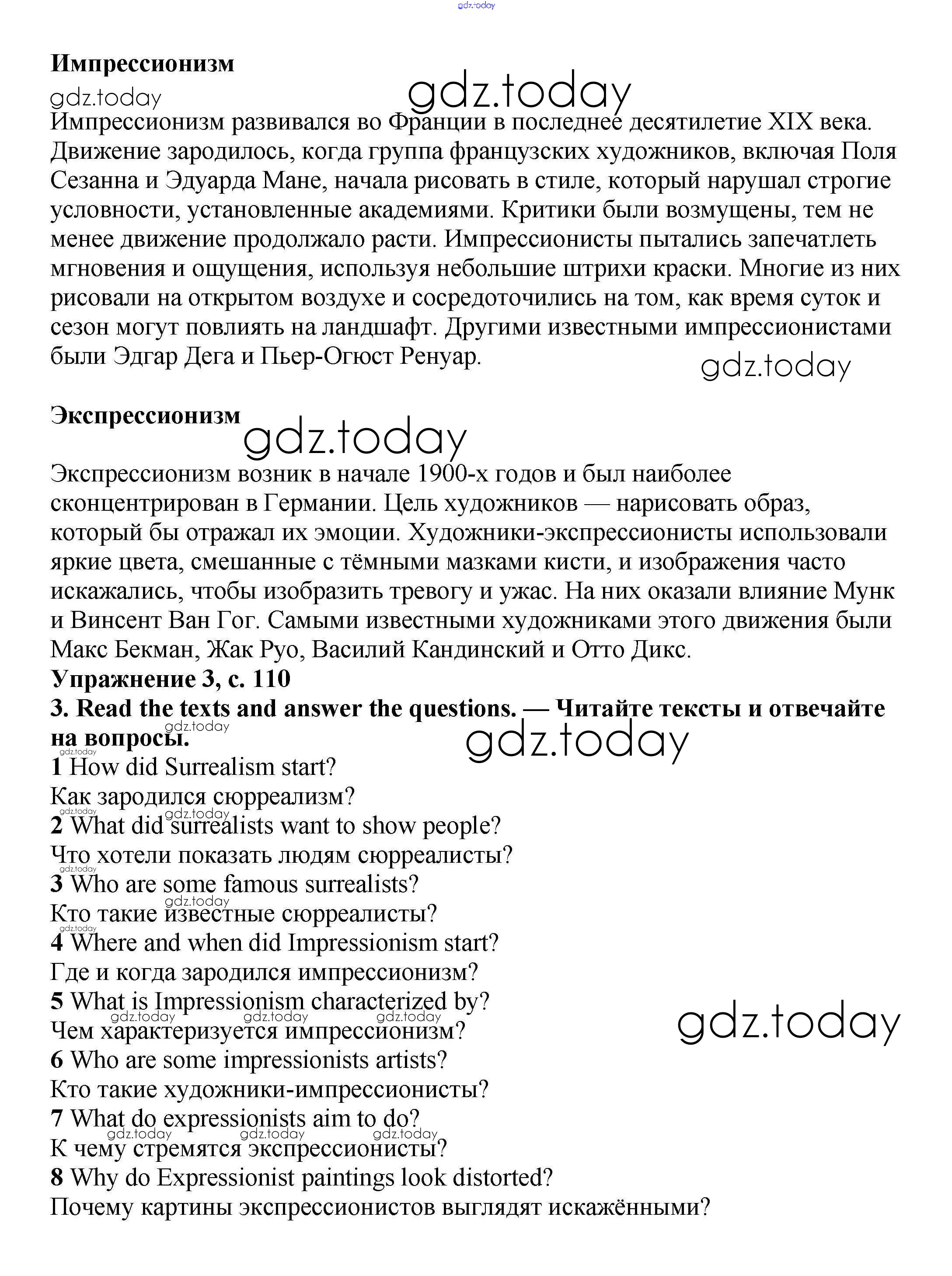 На страницах сайта gdz.today вы найдете учебный и вспомогательный материал, направленный на улучшения знаний школьной программы. ГДЗ - онлайн мир знаний Решение к Module 6. Art & Culture стр.110 Учебнику по Английскому языку для 6 класса Баранова, Дули Углубленный уровень Просвещение Starlight 2017