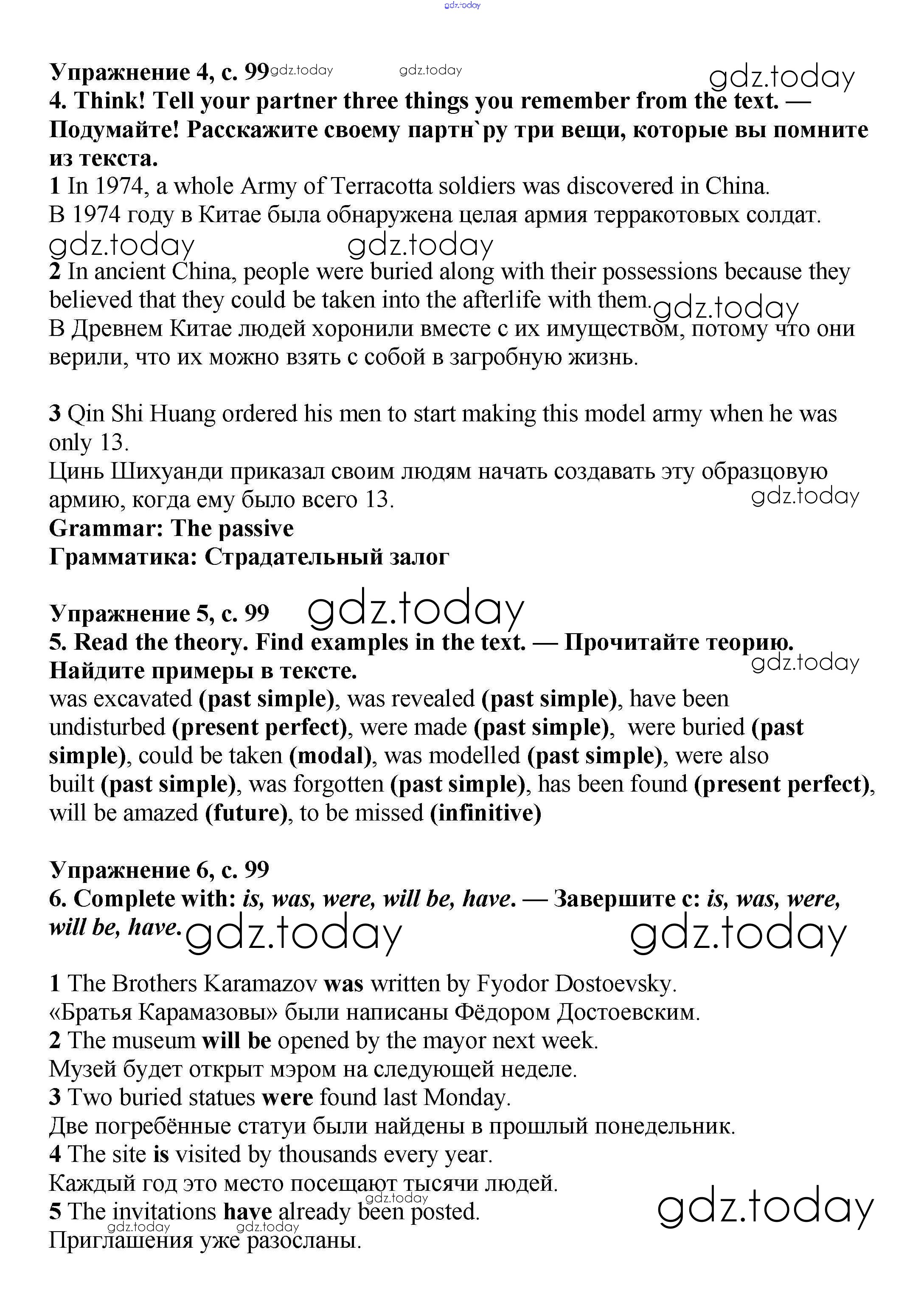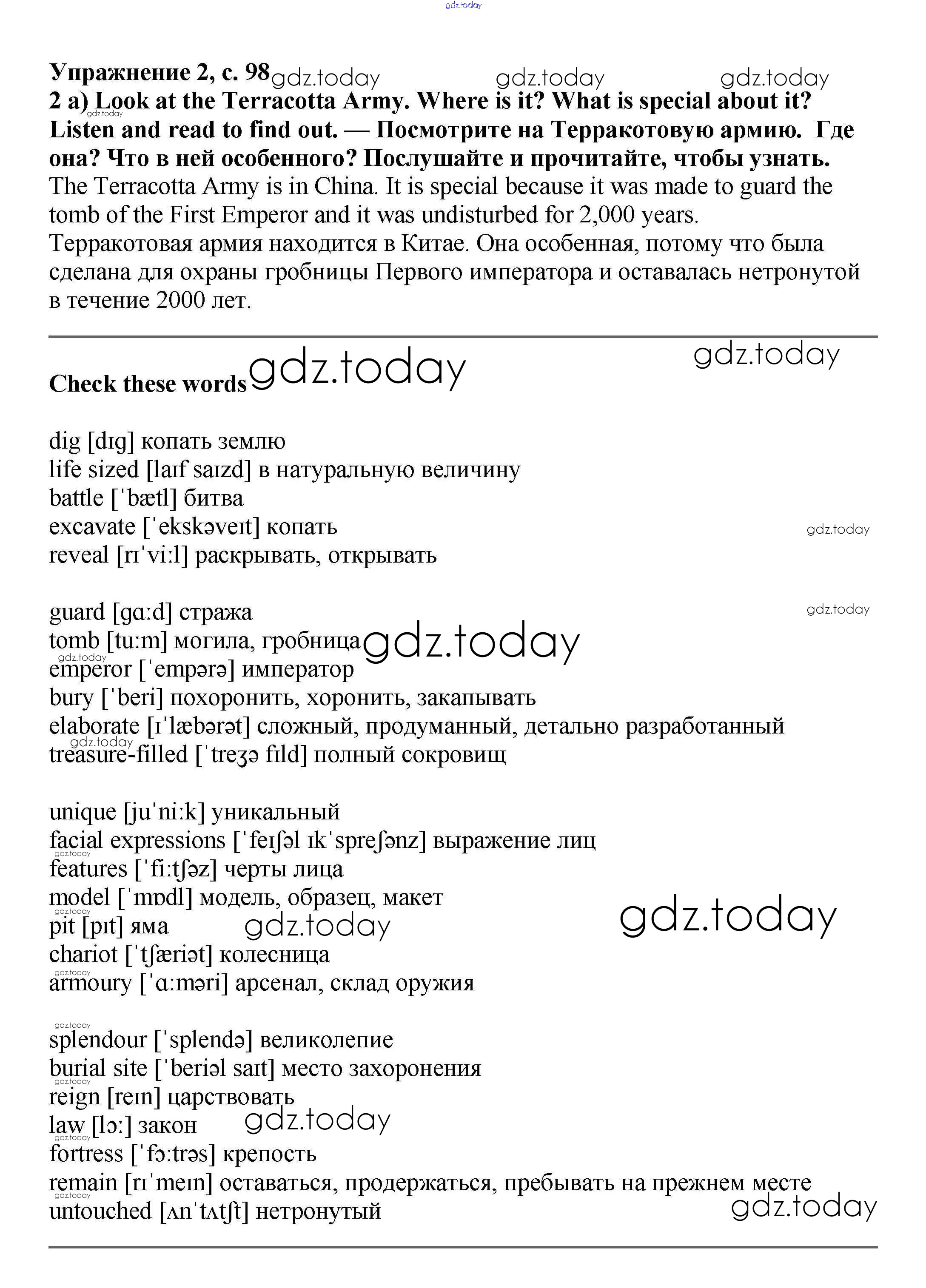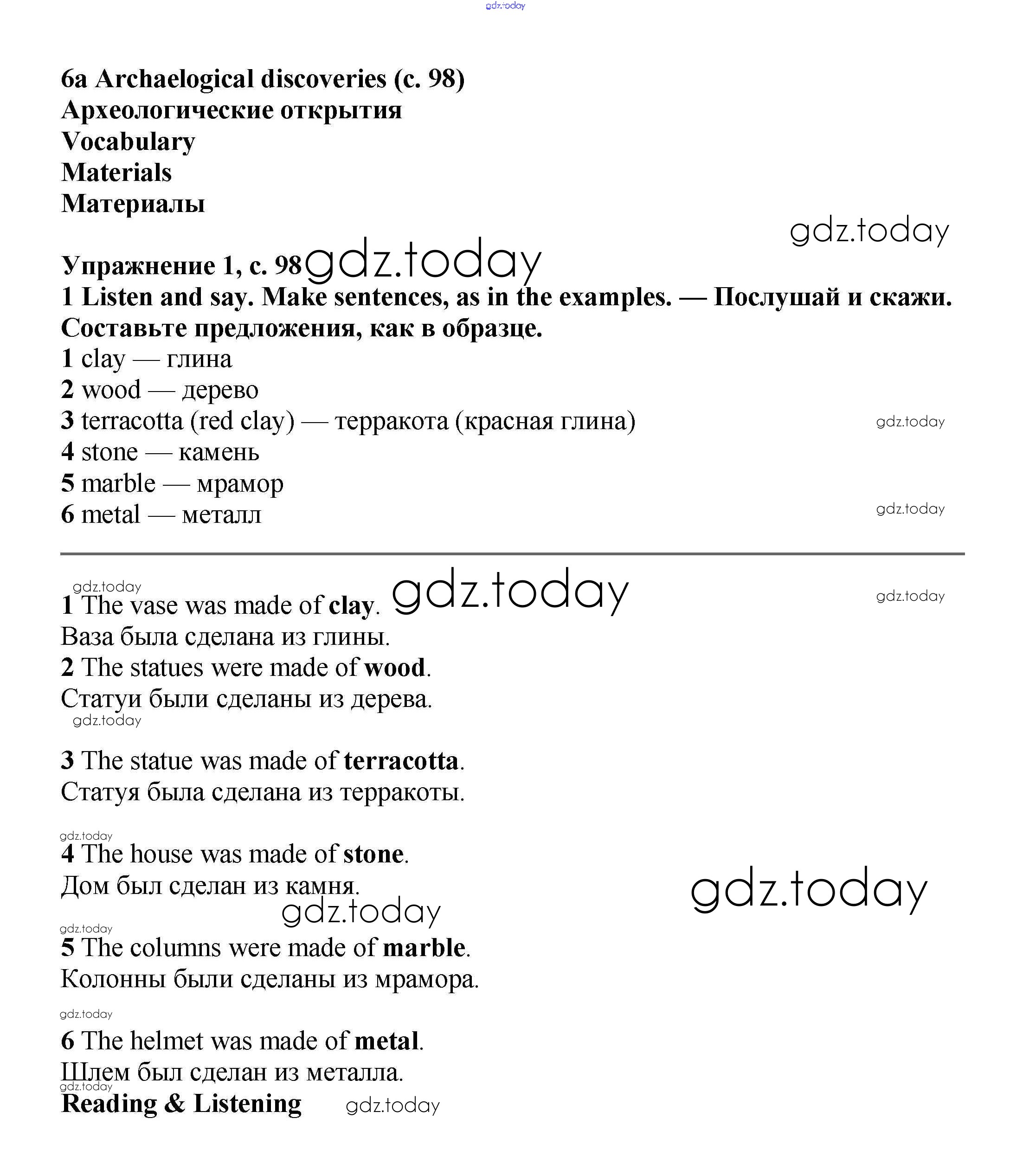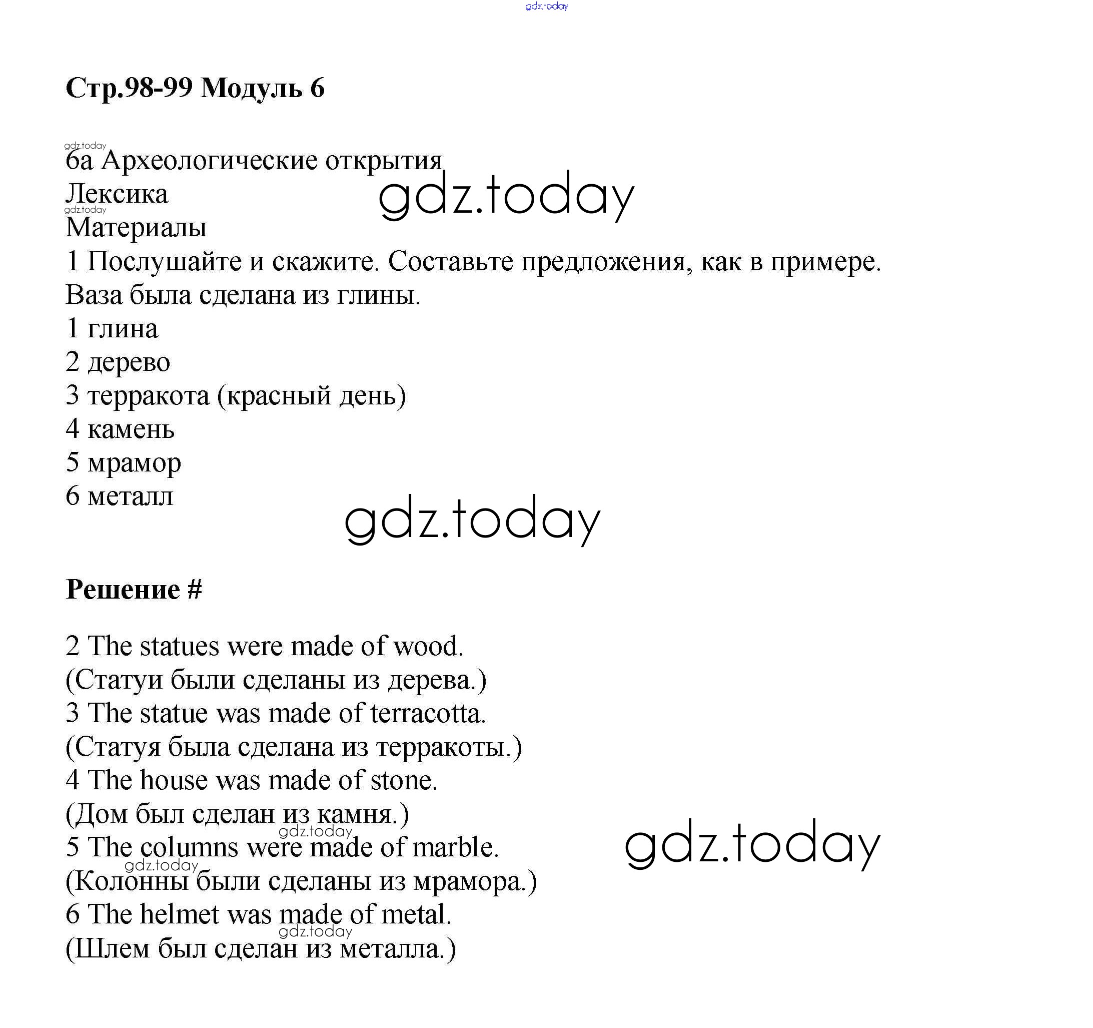 На страницах сайта gdz.today вы найдете учебный и вспомогательный материал, направленный на улучшения знаний школьной программы. ГДЗ - онлайн мир знаний Решение к Module 6. Art & Culture стр.98-99 Учебнику по Английскому языку для 6 класса Баранова, Дули Углубленный уровень Просвещение Starlight 2017