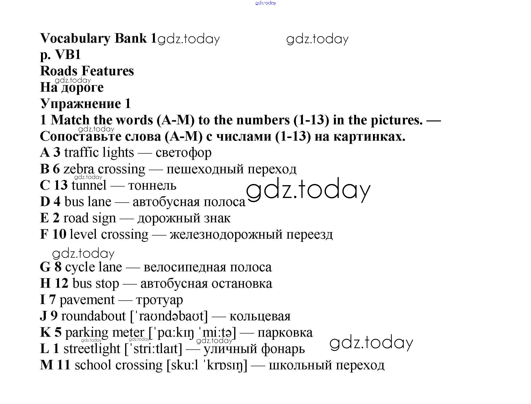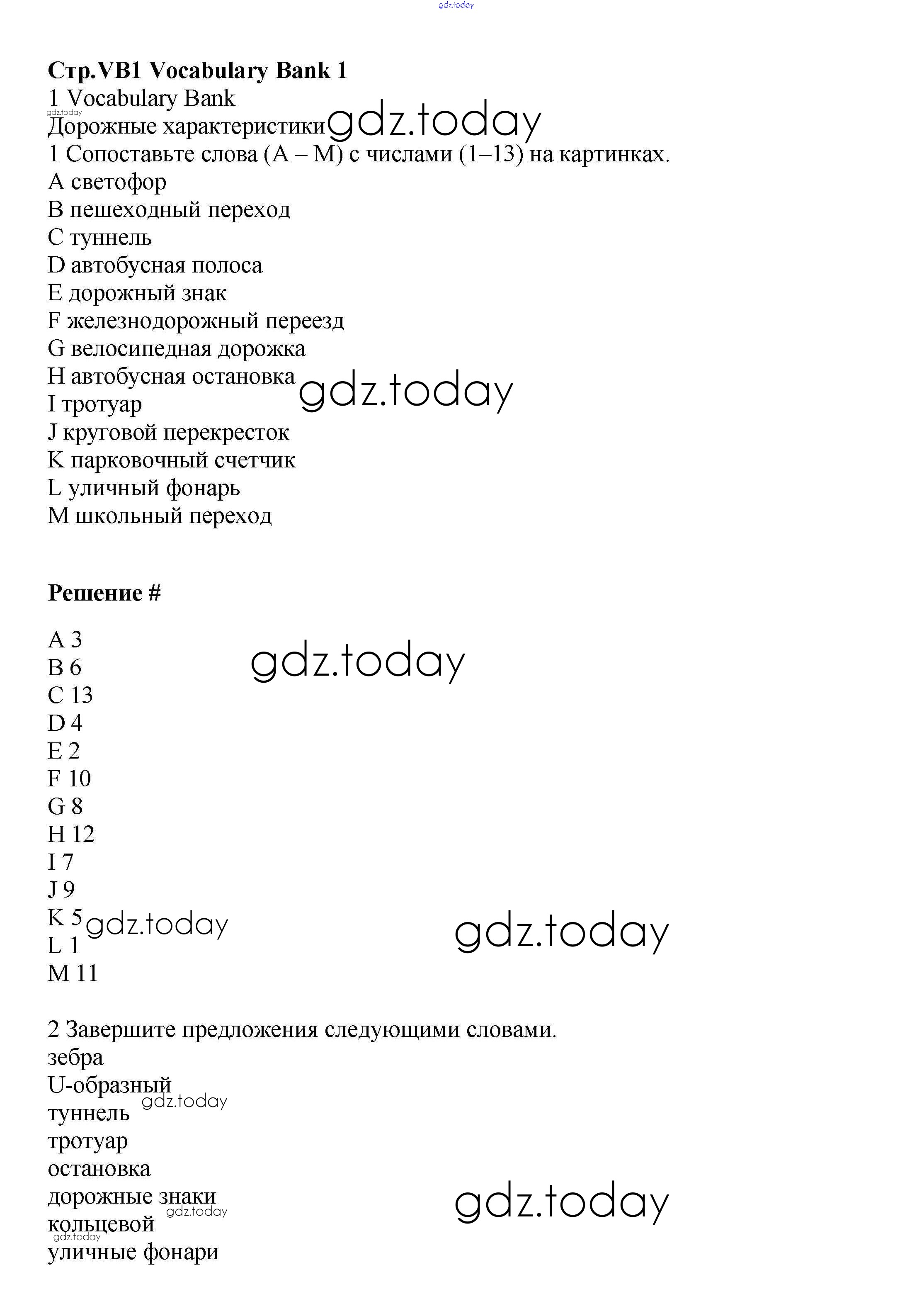 Ответы к Решение к Vocabulary Bank VB1 Учебнику по Английскому языку для 6 класса Баранова, Дули Углубленный уровень Просвещение Starlight 2017