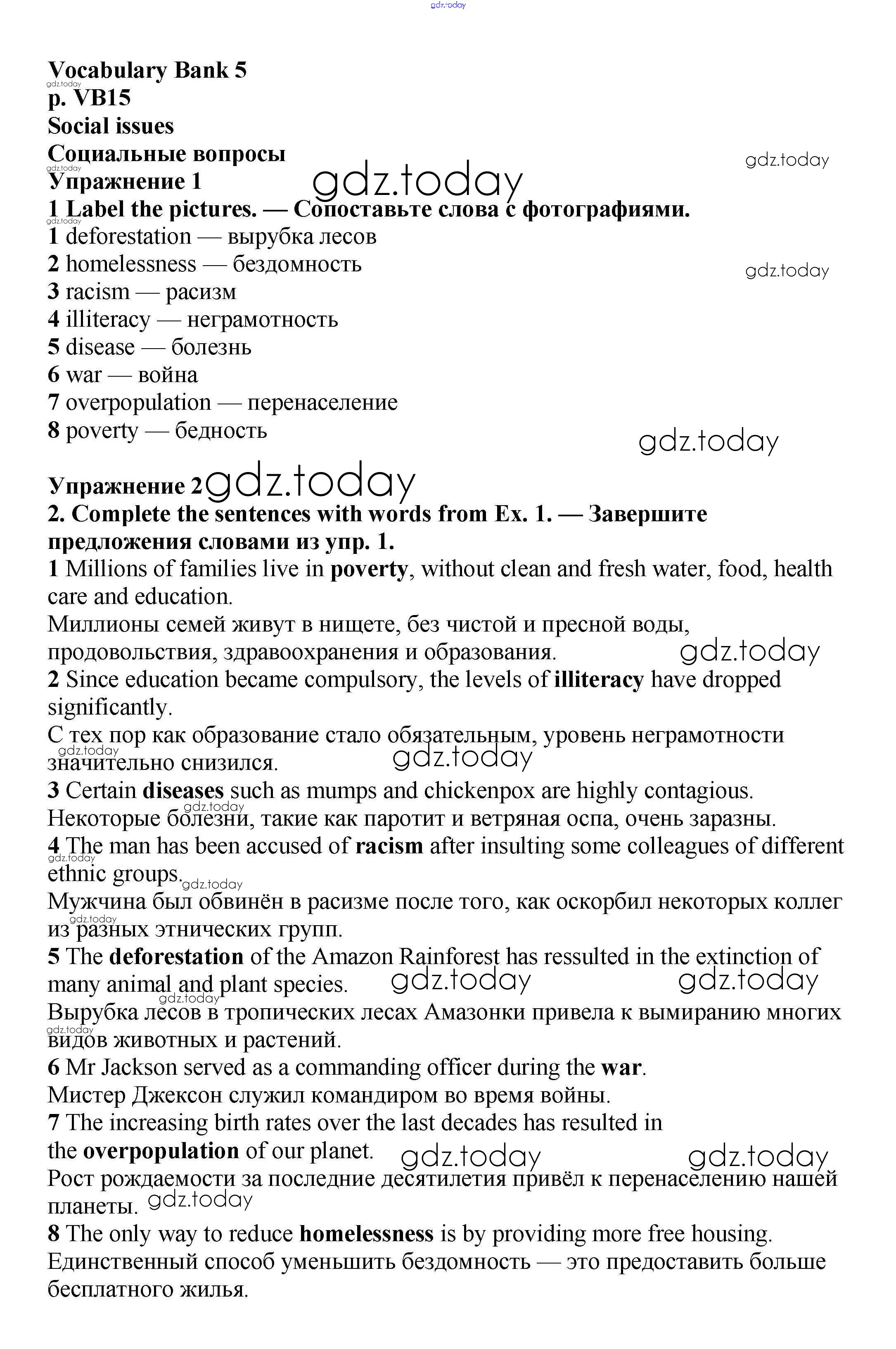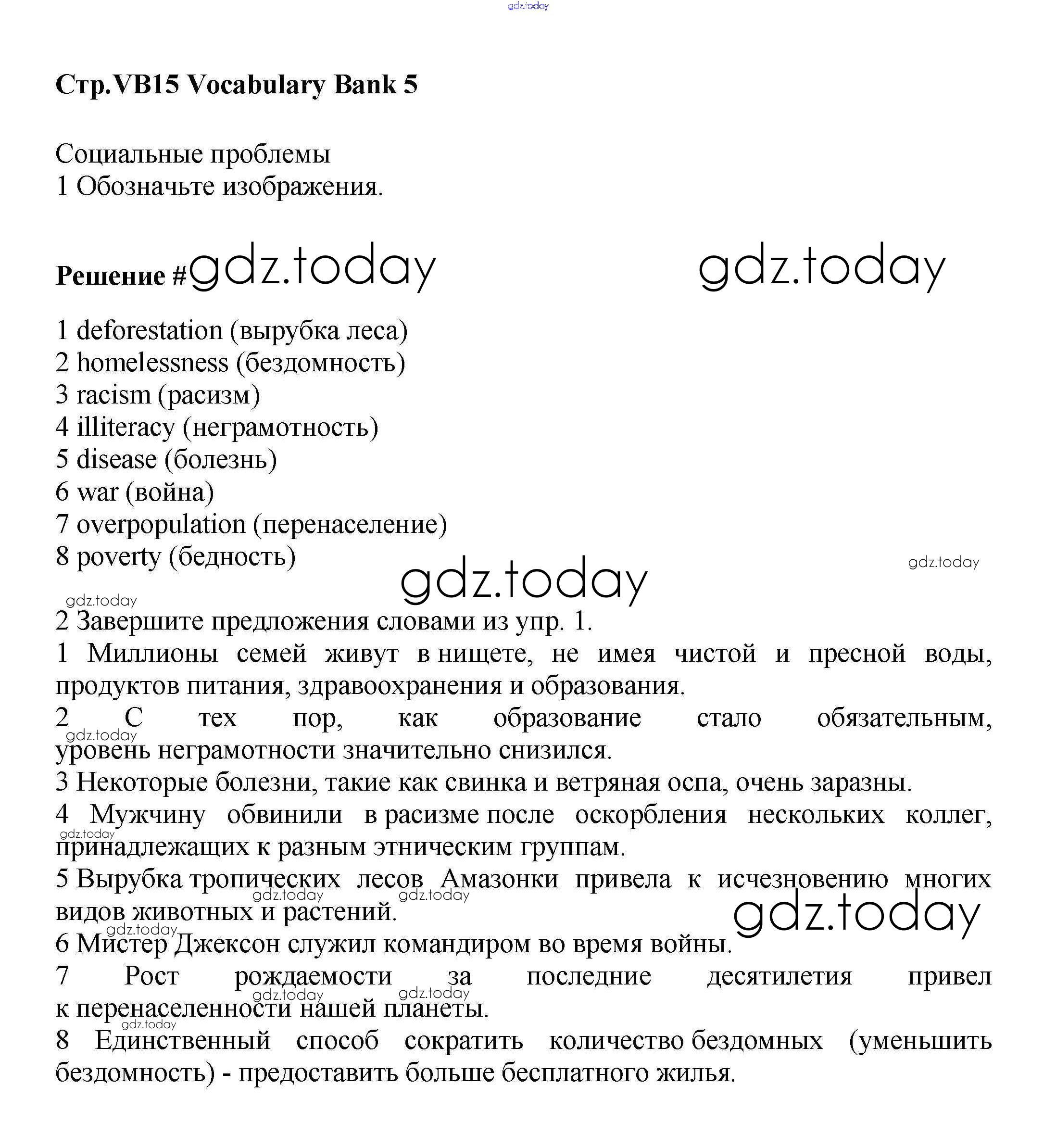 Ответы к Решение к Vocabulary Bank VB15 Учебнику по Английскому языку для 6 класса Баранова, Дули Углубленный уровень Просвещение Starlight 2017