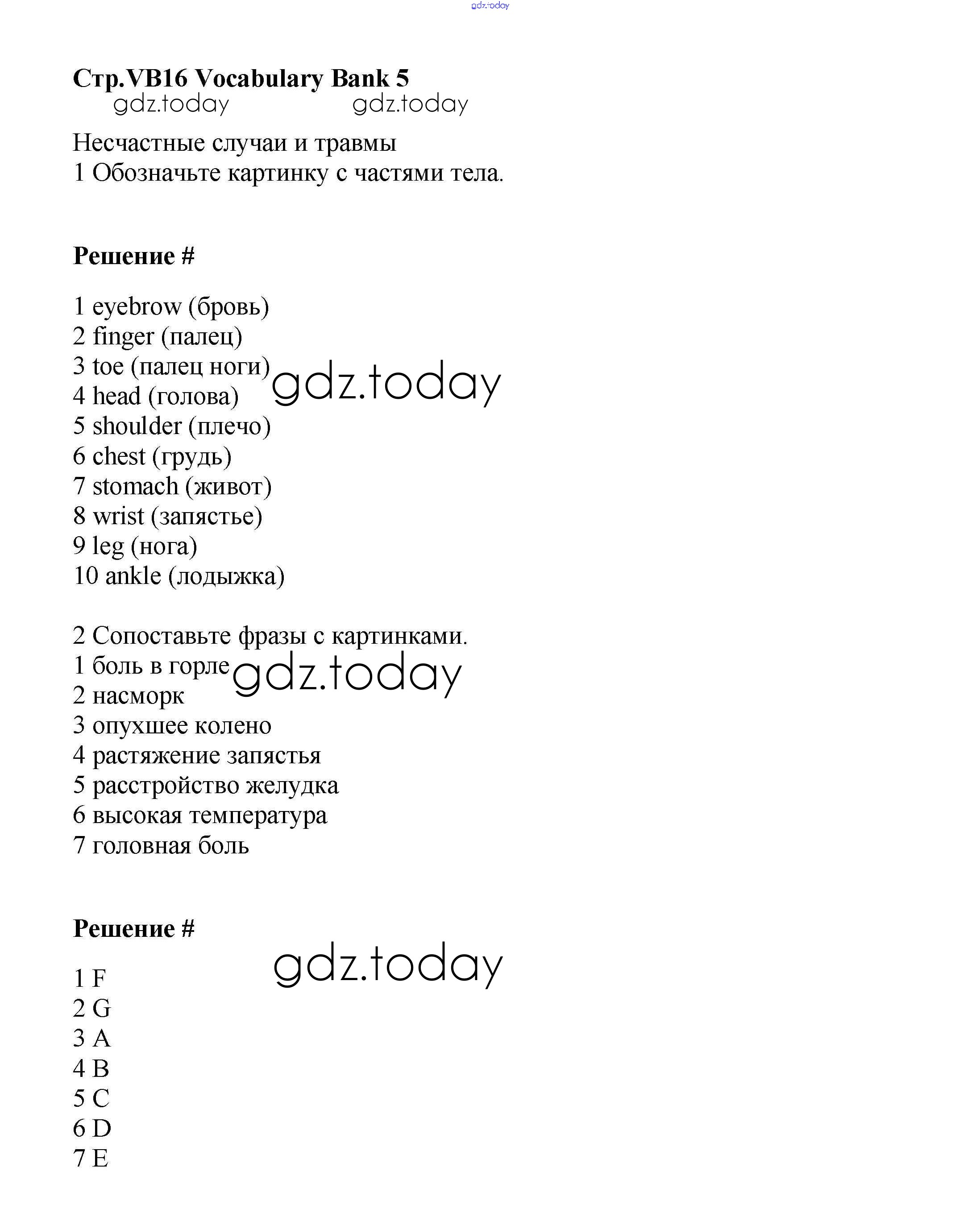 Ответы к Решение к Vocabulary Bank VB16 Учебнику по Английскому языку для 6 класса Баранова, Дули Углубленный уровень Просвещение Starlight 2017
