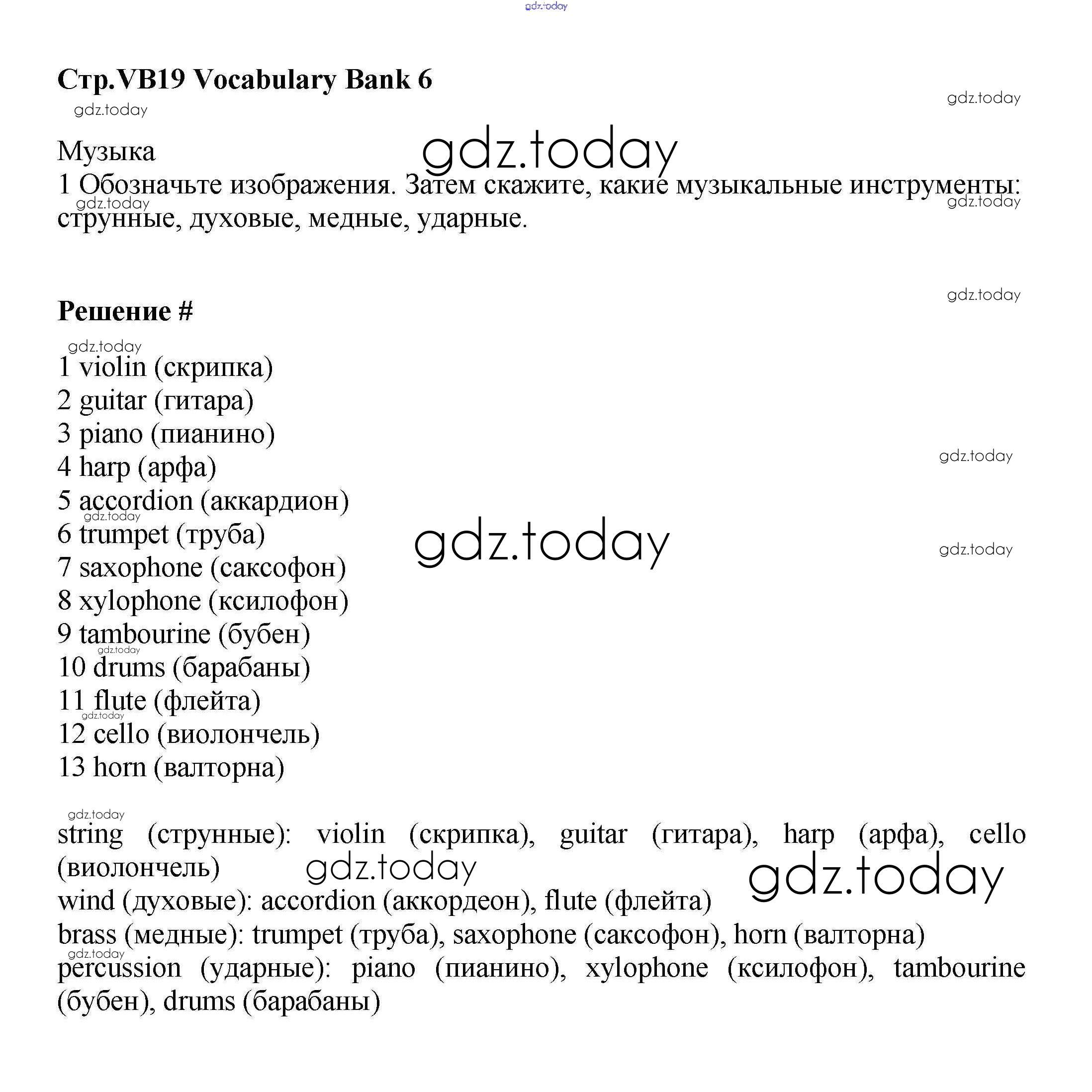 Ответы к Решение к Vocabulary Bank VB19 Учебнику по Английскому языку для 6 класса Баранова, Дули Углубленный уровень Просвещение Starlight 2017