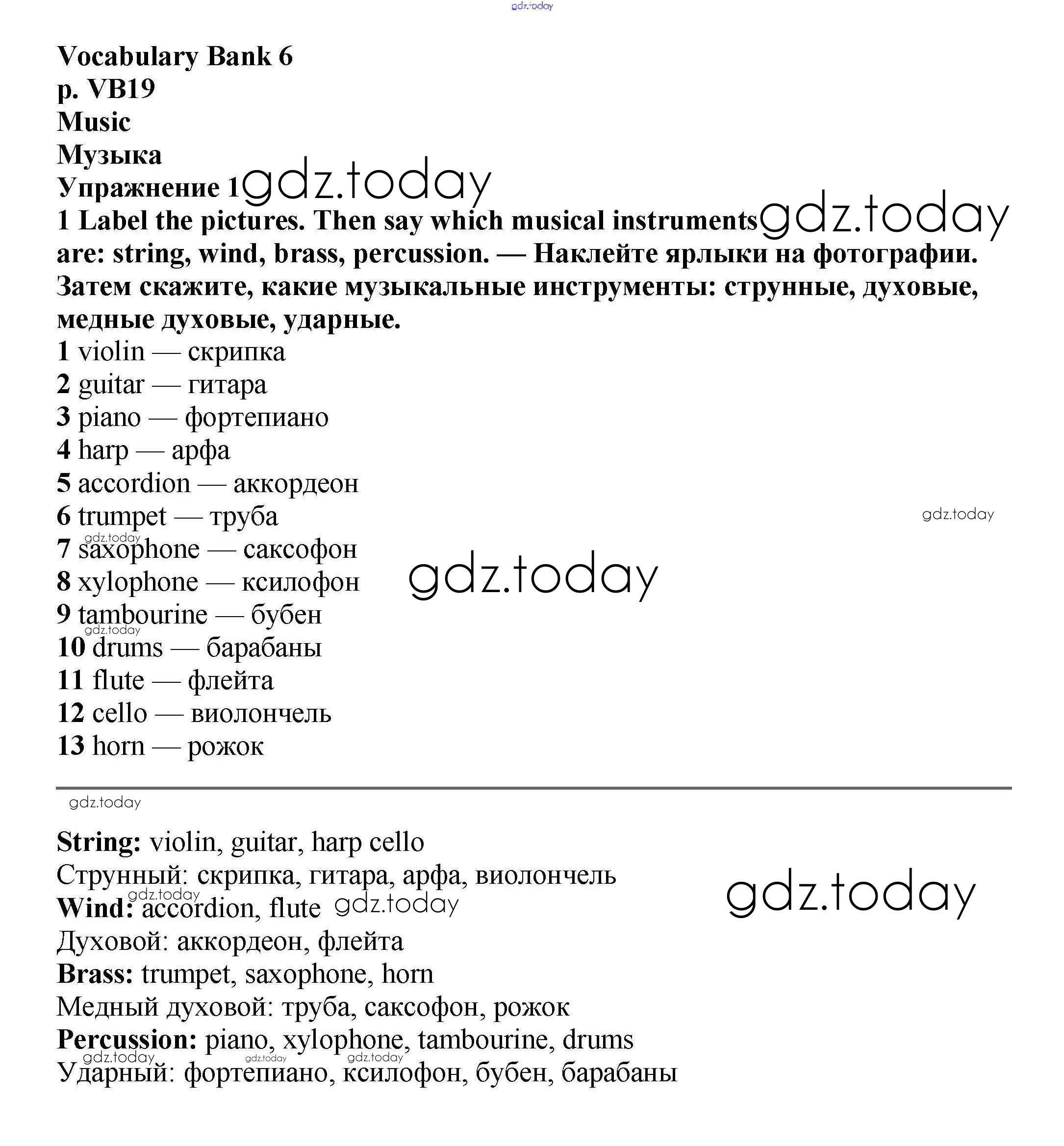 На страницах сайта gdz.today вы найдете учебный и вспомогательный материал, направленный на улучшения знаний школьной программы. ГДЗ - онлайн мир знаний Решение к Vocabulary Bank VB19 Учебнику по Английскому языку для 6 класса Баранова, Дули Углубленный уровень Просвещение Starlight 2017