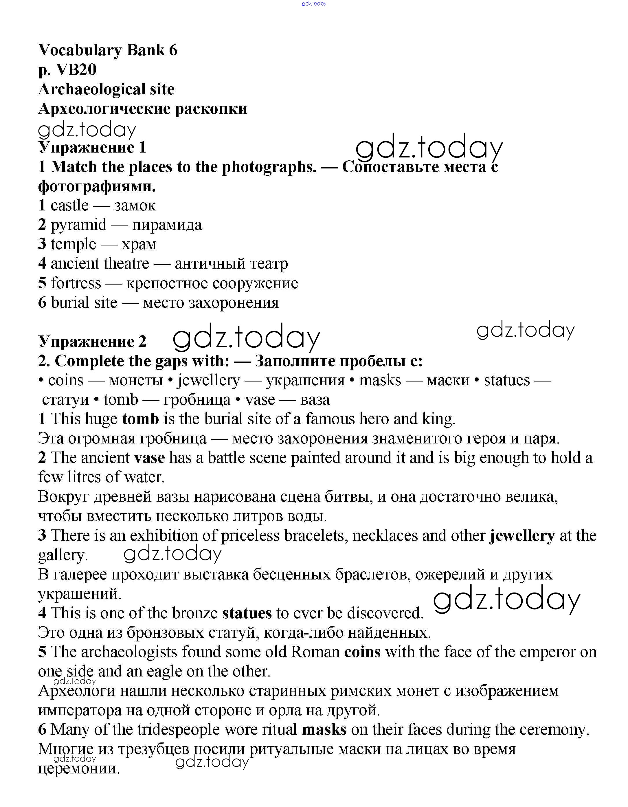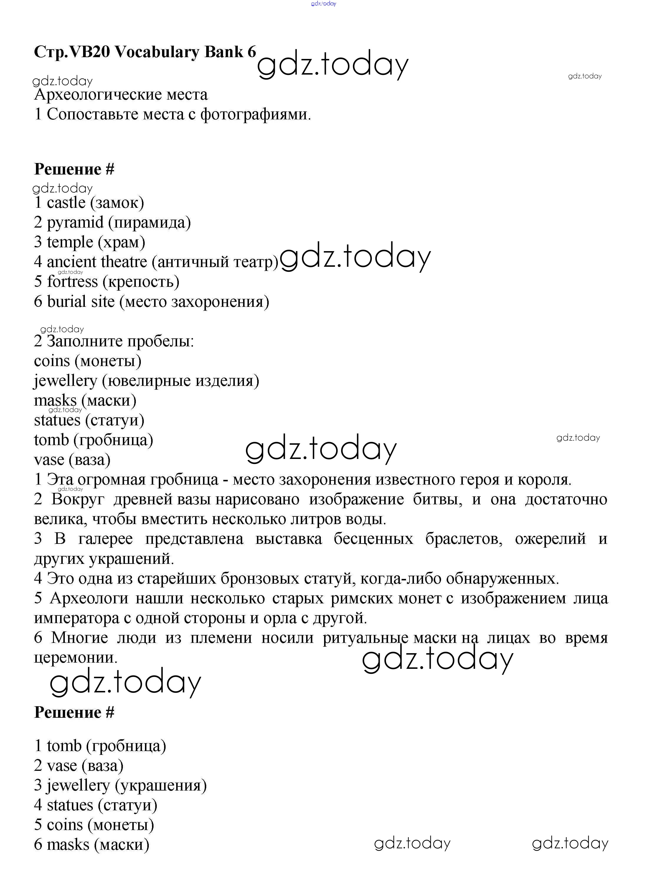 Ответы к Решение к Vocabulary Bank VB20 Учебнику по Английскому языку для 6 класса Баранова, Дули Углубленный уровень Просвещение Starlight 2017