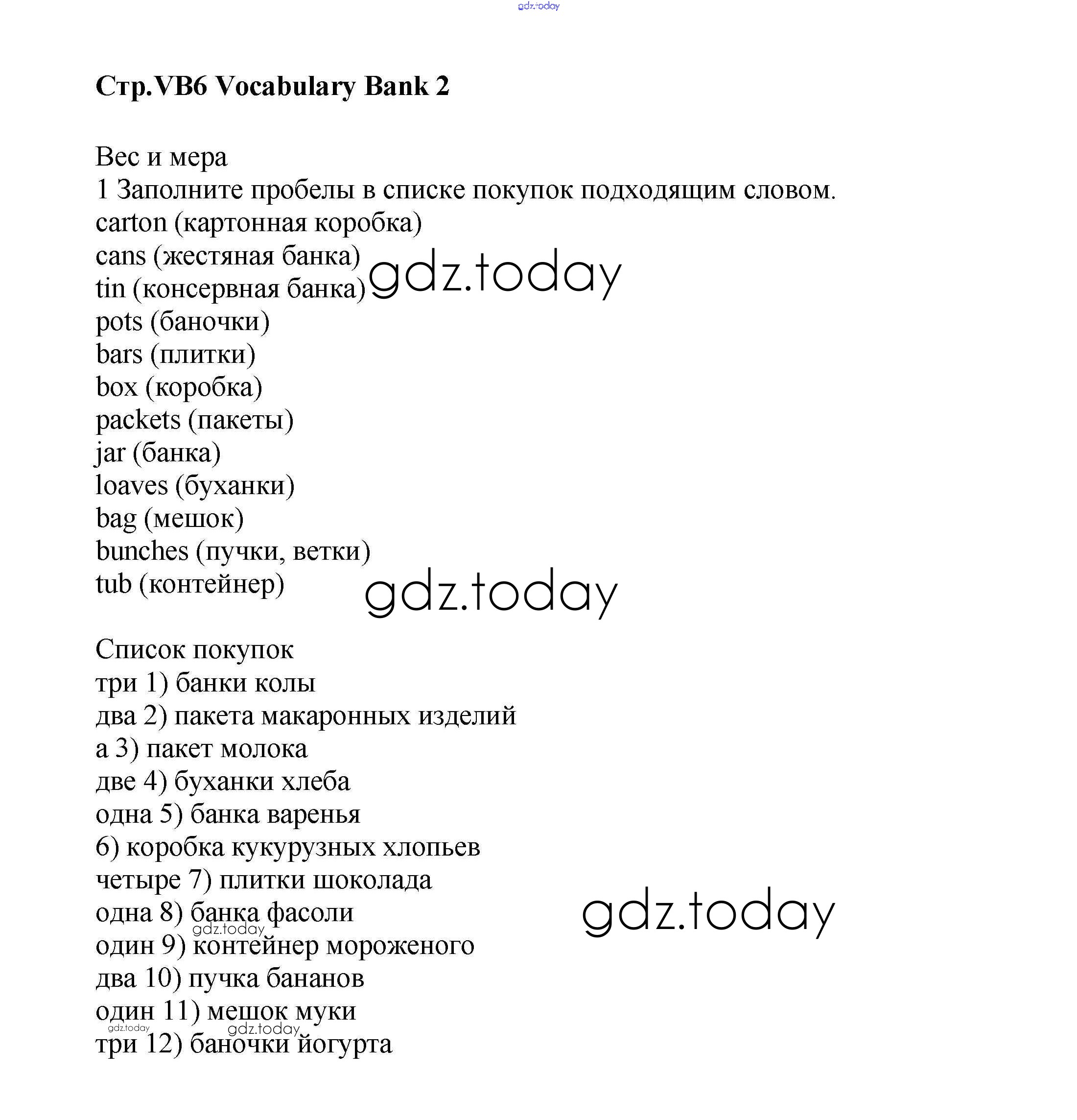 На страницах сайта gdz.today вы найдете учебный и вспомогательный материал, направленный на улучшения знаний школьной программы. ГДЗ - онлайн мир знаний Решение к Vocabulary Bank VB6 Учебнику по Английскому языку для 6 класса Баранова, Дули Углубленный уровень Просвещение Starlight 2017