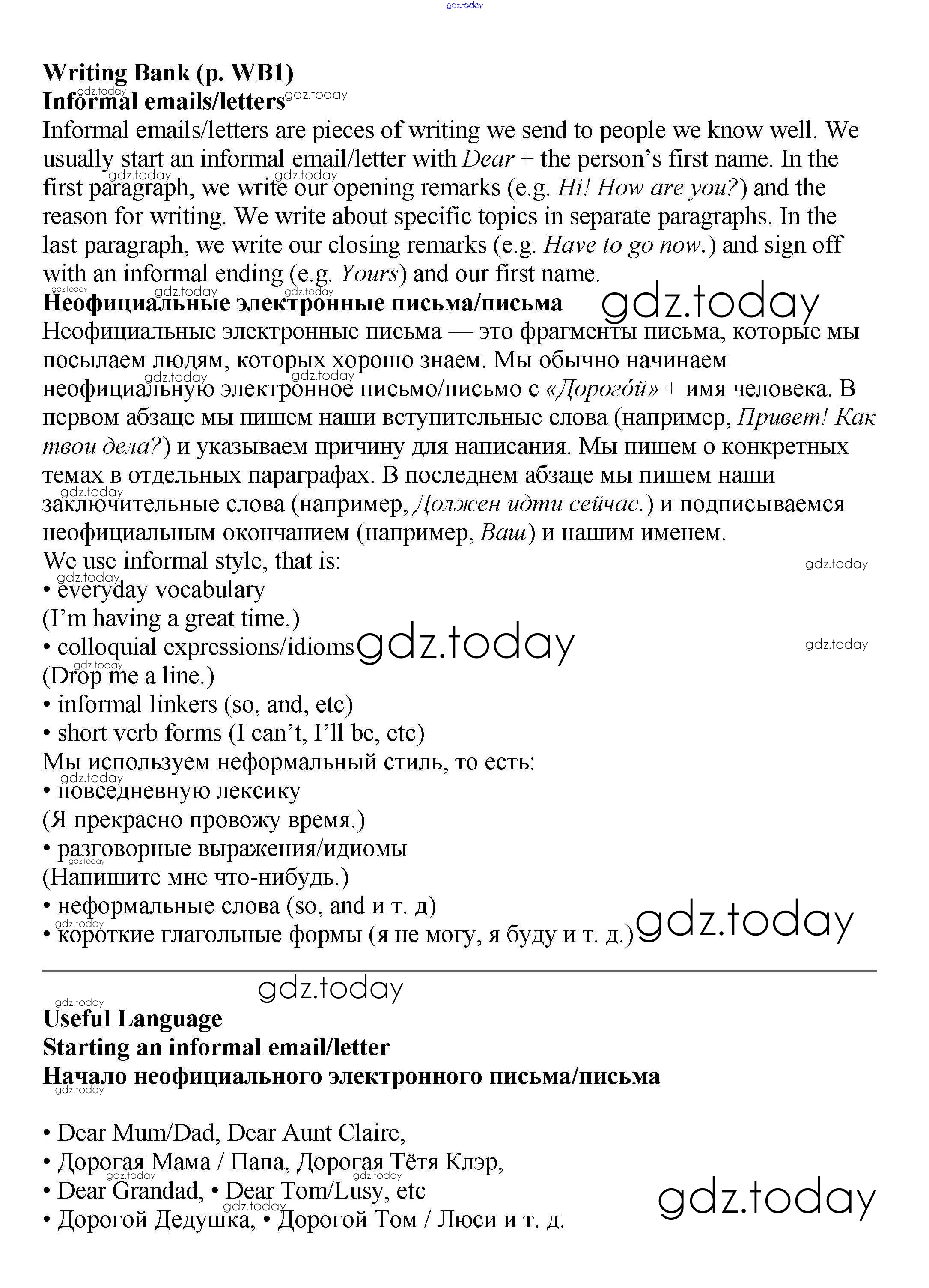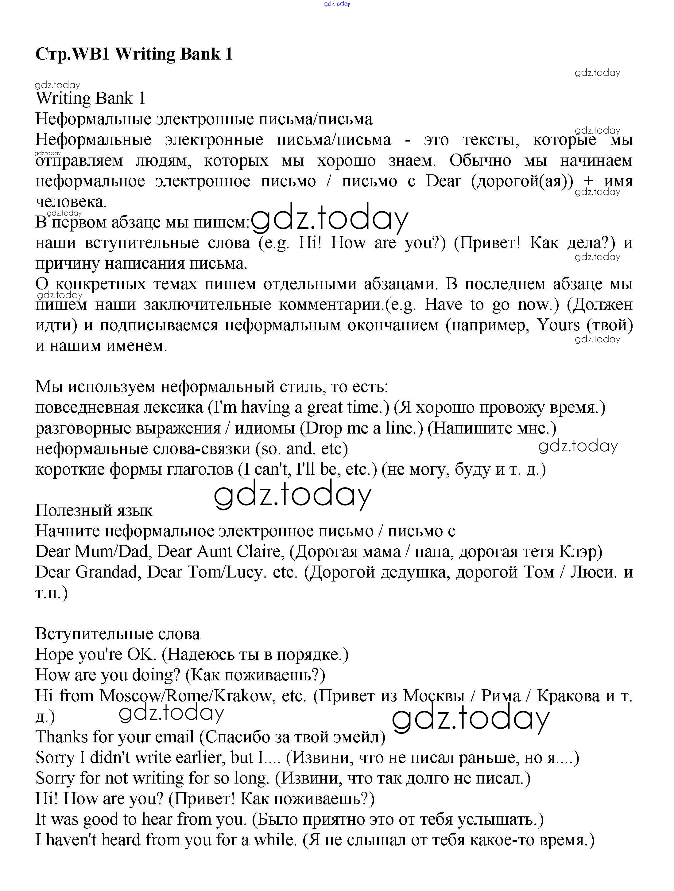 Ответы к Решение к Writing Bank WB1 Учебнику по Английскому языку для 6 класса Баранова, Дули Углубленный уровень Просвещение Starlight 2017