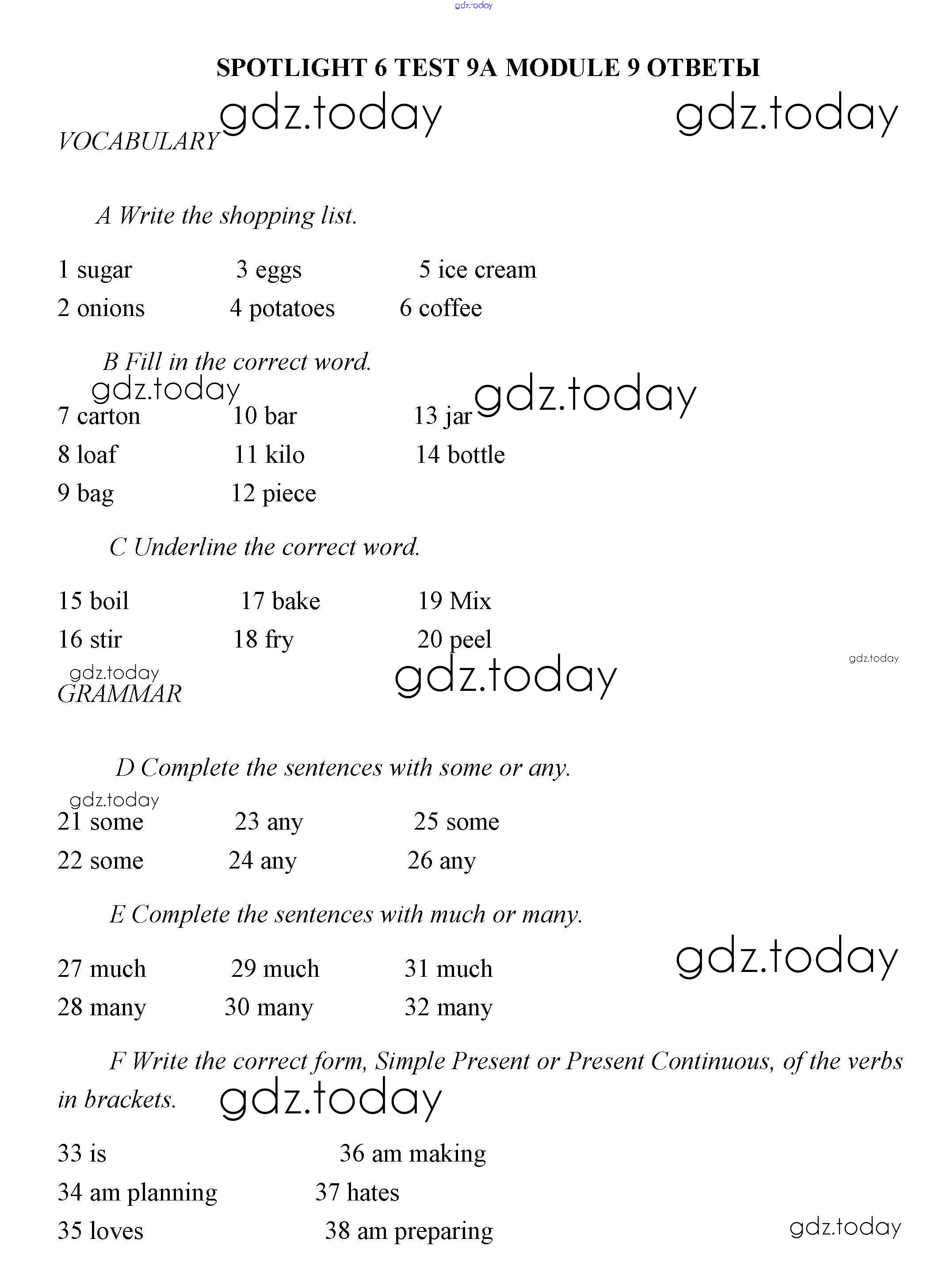 На страницах сайта gdz.today вы найдете учебный и вспомогательный материал, направленный на улучшения знаний школьной программы. ГДЗ - онлайн мир знаний Решение. Тесты 8В Контрольным заданиям по Английскому языку для 6 класса Дули, Ваулина Просвещение Spotlight 2017
