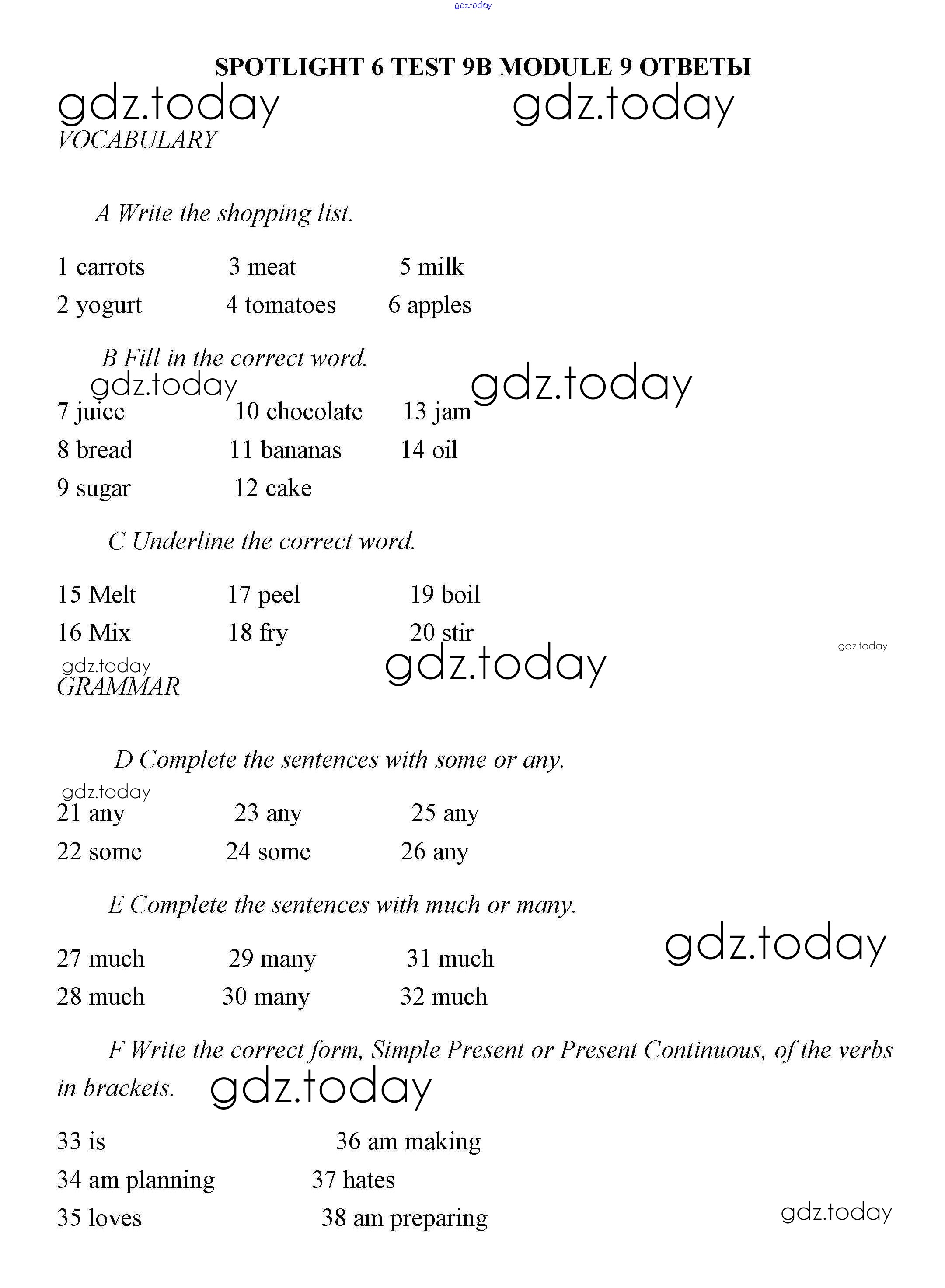 Ответы к Решение. Тесты 9В Контрольным заданиям по Английскому языку для 6 класса Дули, Ваулина Просвещение Spotlight 2017