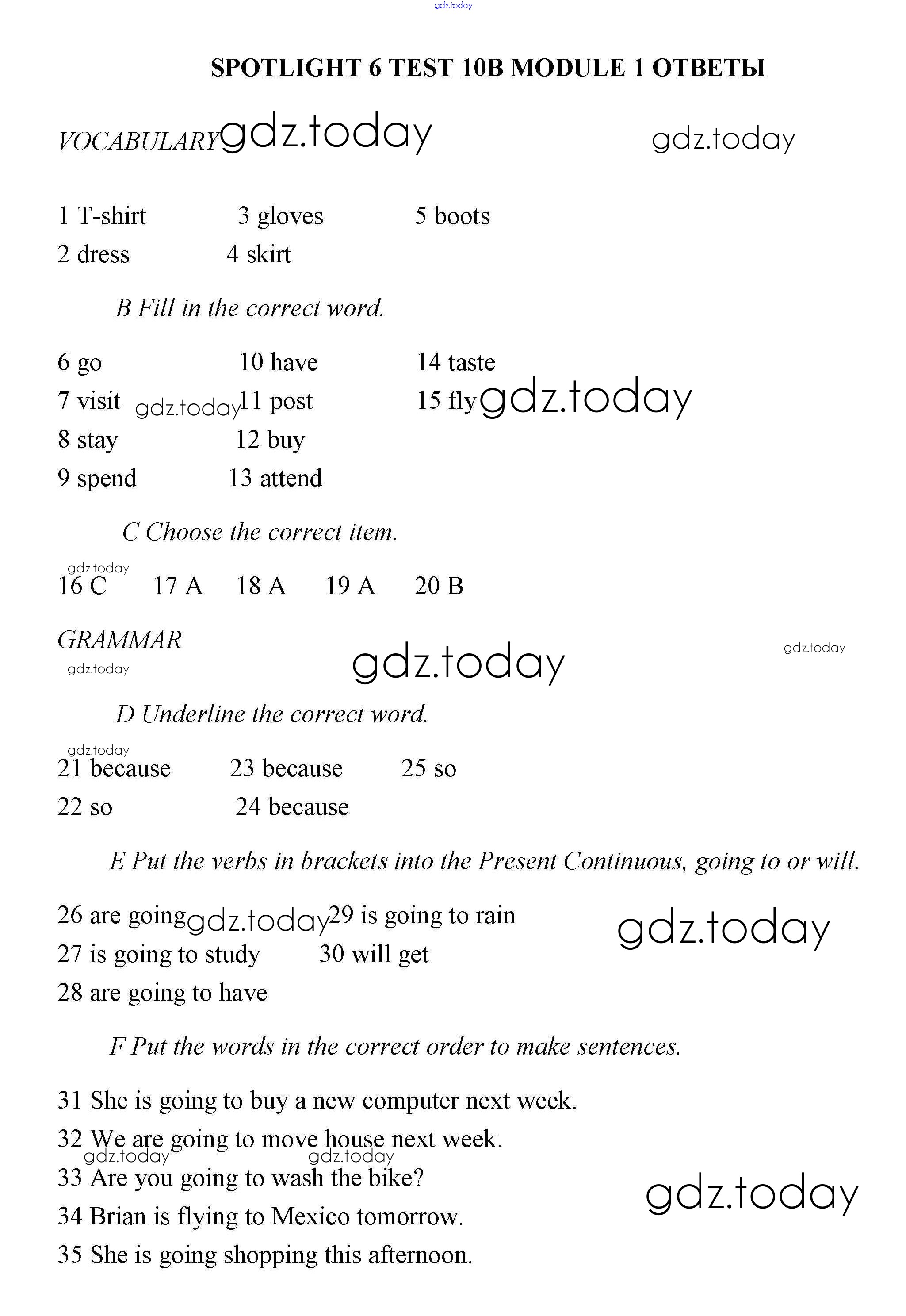 Ответы к Решение. Тесты 10В Контрольным заданиям по Английскому языку для 6 класса Дули, Ваулина Просвещение Spotlight 2017