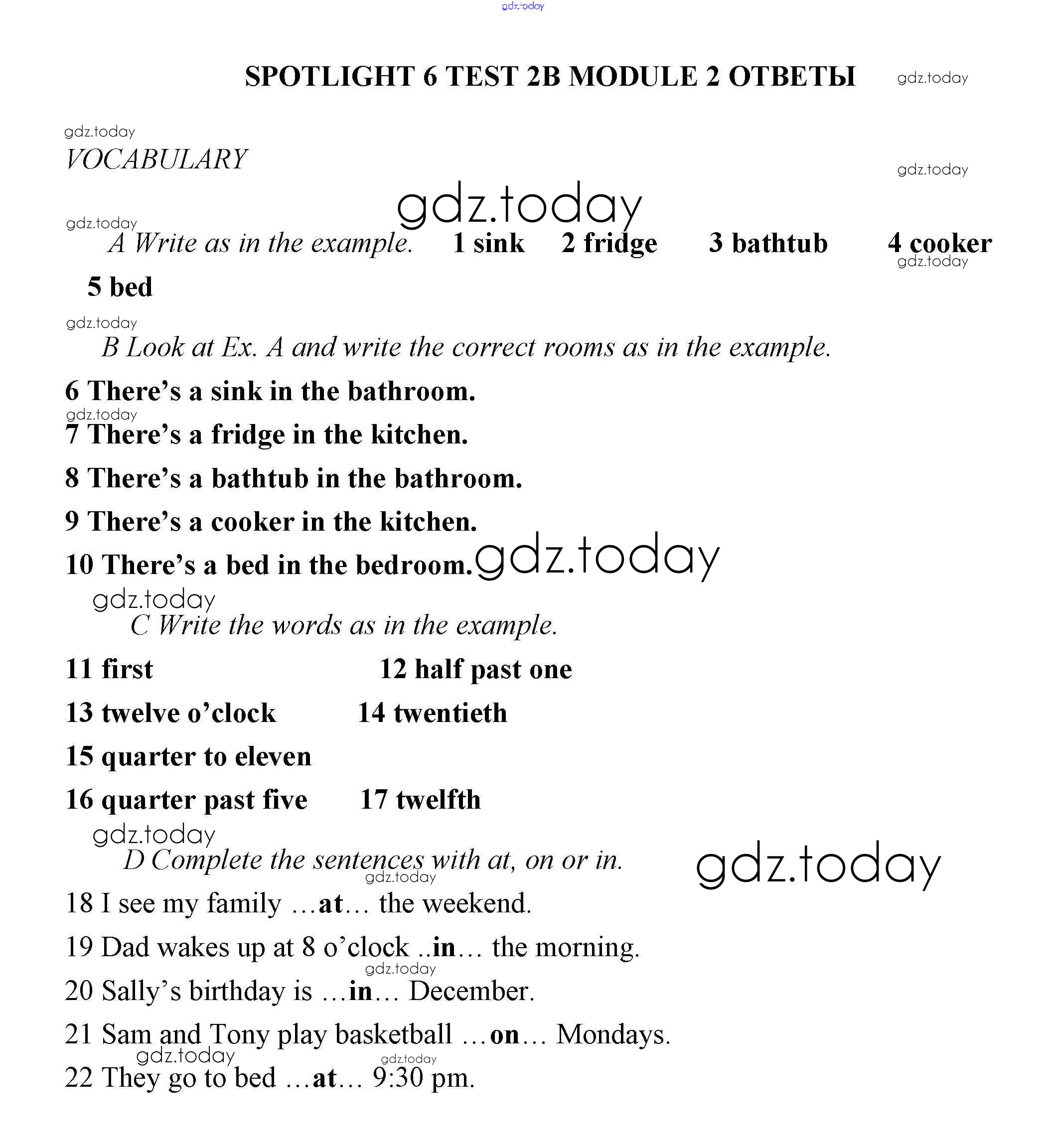 Ответы к Решение. Тесты 2В Контрольным заданиям по Английскому языку для 6 класса Дули, Ваулина Просвещение Spotlight 2017