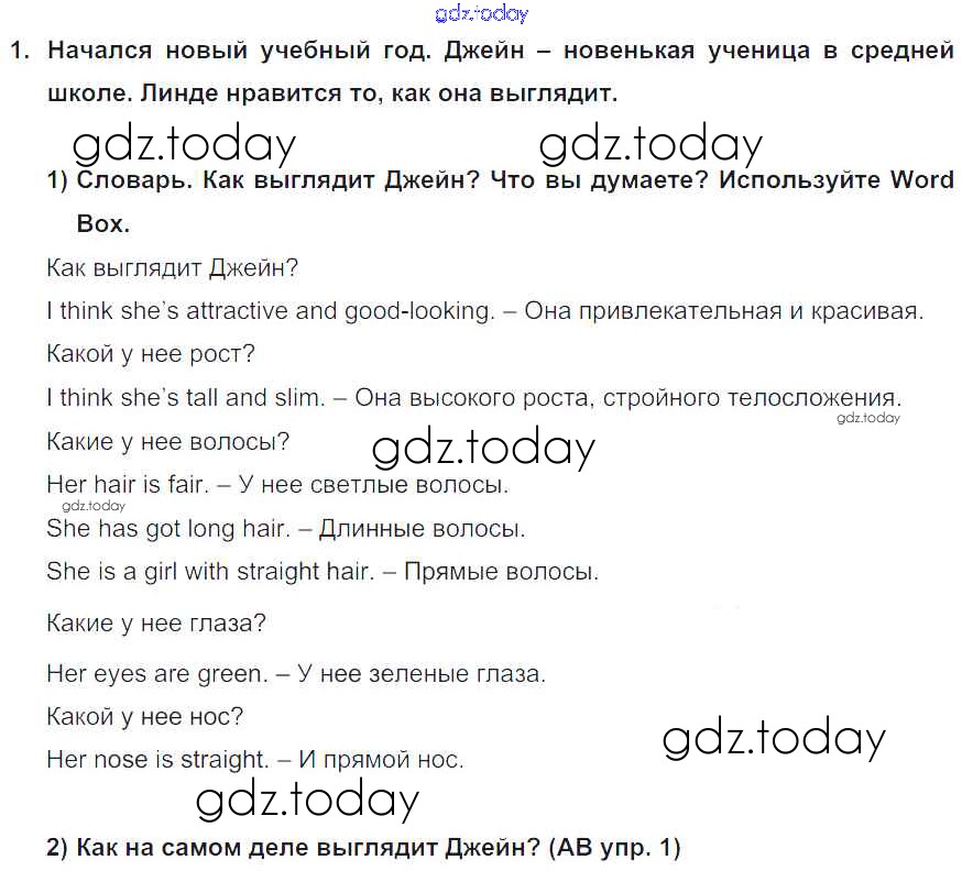 На страницах сайта gdz.today вы найдете учебный и вспомогательный материал, направленный на улучшения знаний школьной программы. ГДЗ - онлайн мир знаний Lesson 1 Решение к Unit 1. What do you look like? 1 Учебнику по Английскому языку для 6 класса Кузовлев, Лапа Просвещение Академический школьный учебник 2014