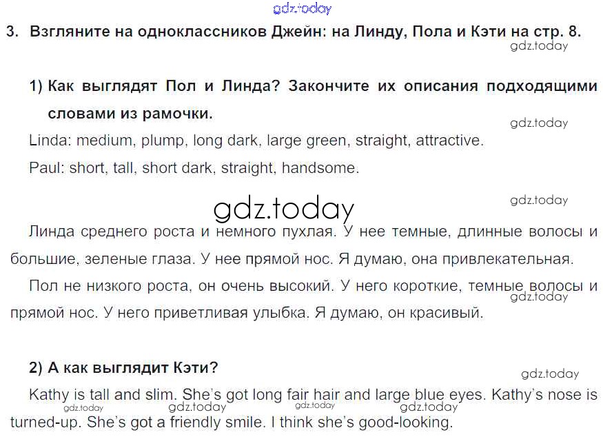 Ответы к Lesson 1 Решение к Unit 1. What do you look like? 3 Учебнику по Английскому языку для 6 класса Кузовлев, Лапа Просвещение Академический школьный учебник 2014